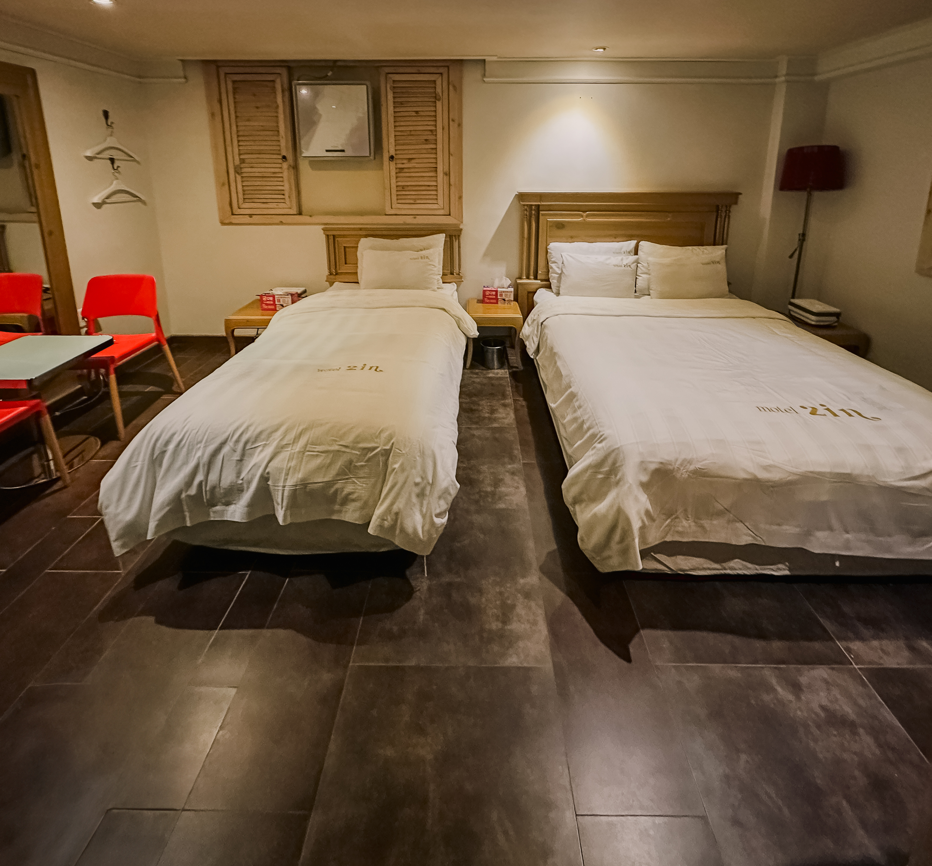 원주 가성비 숙소 투인모텔의 침실 모습은 위와 같았습니다. 각각의 침대에는 온수매트가 깔려 있었고, 침구류도 푹신하고 좋았습니다. 객실에는 치약, 칫솔 등 개인위생용품을 별도로 제공하고 있었습니다.