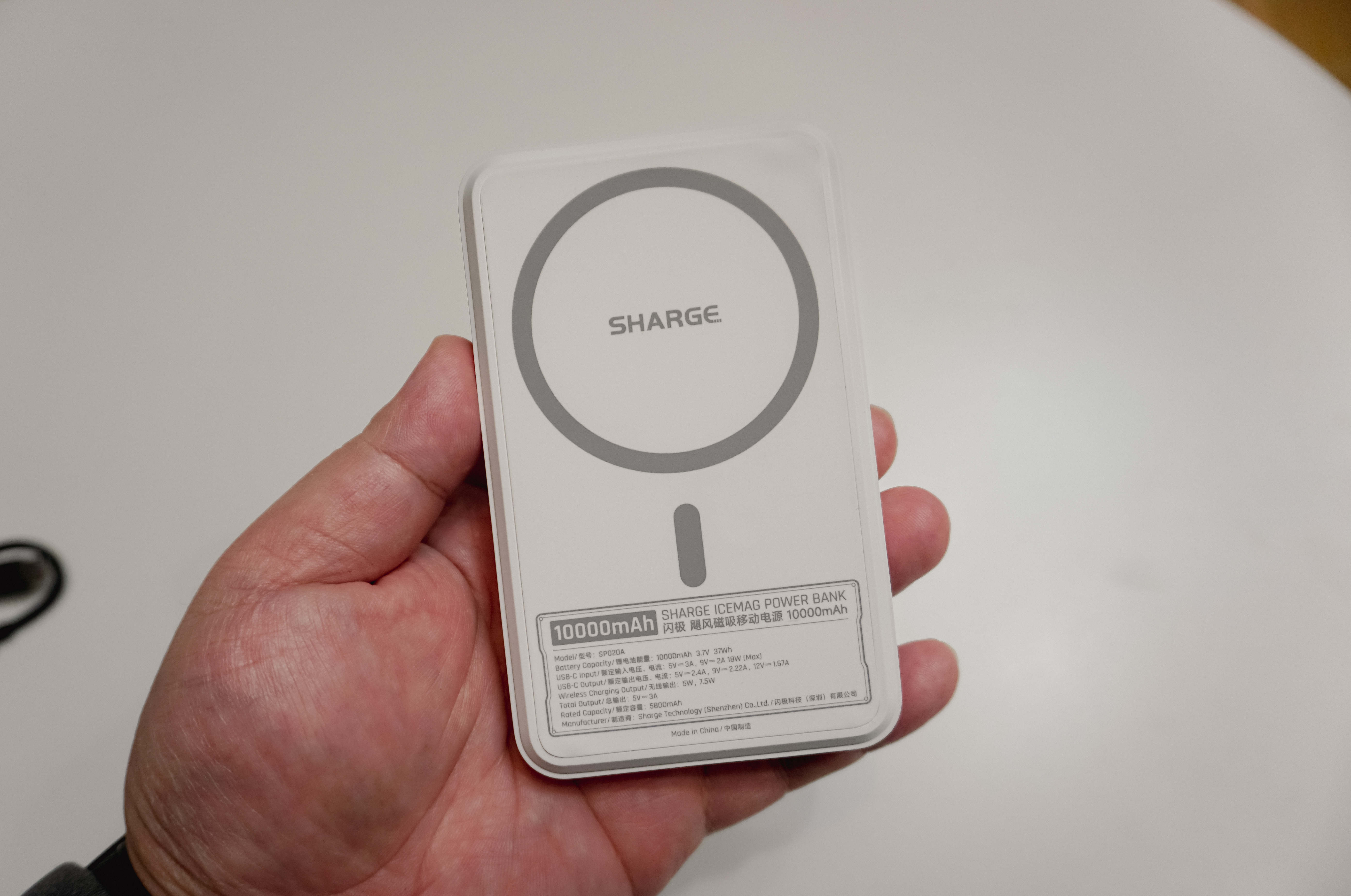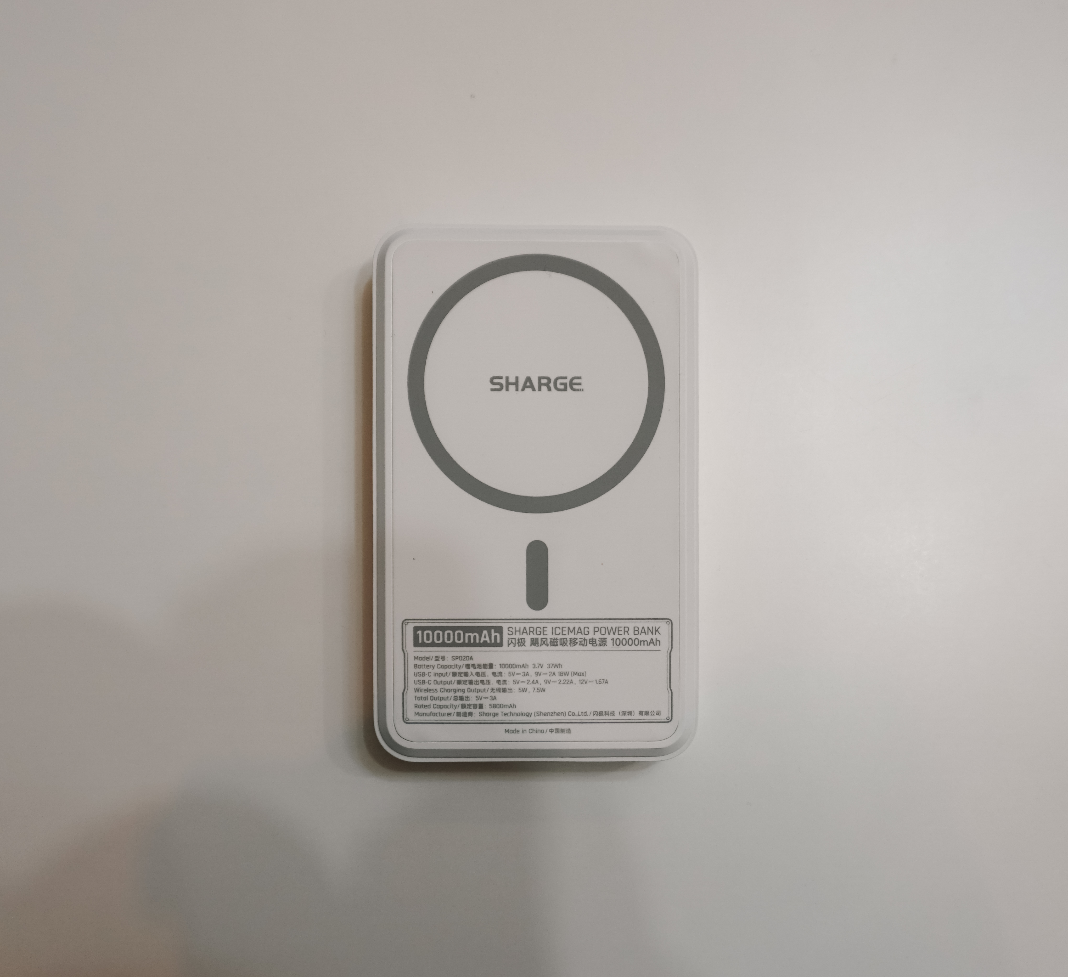 SHARGE 아이스맥(ICEMAG)은 10,000mAh 용량의 무선충전 기능이 있는 보조배터리 입니다. 유선 포트는 최대 20W를 지원하는 USB-C 타입으로 하나만 존재하는데, 이곳을 통해 보조배터리의 충전을 하거나 휴대폰 케이블을 연결하여 충전시킬 수 있었죠. 그밖에 충전방식으로는 무선충전을 하면 되는데, MFi나 MFs 인증이 없어 15W 초고속 충전은 불가능하다고 합니다.