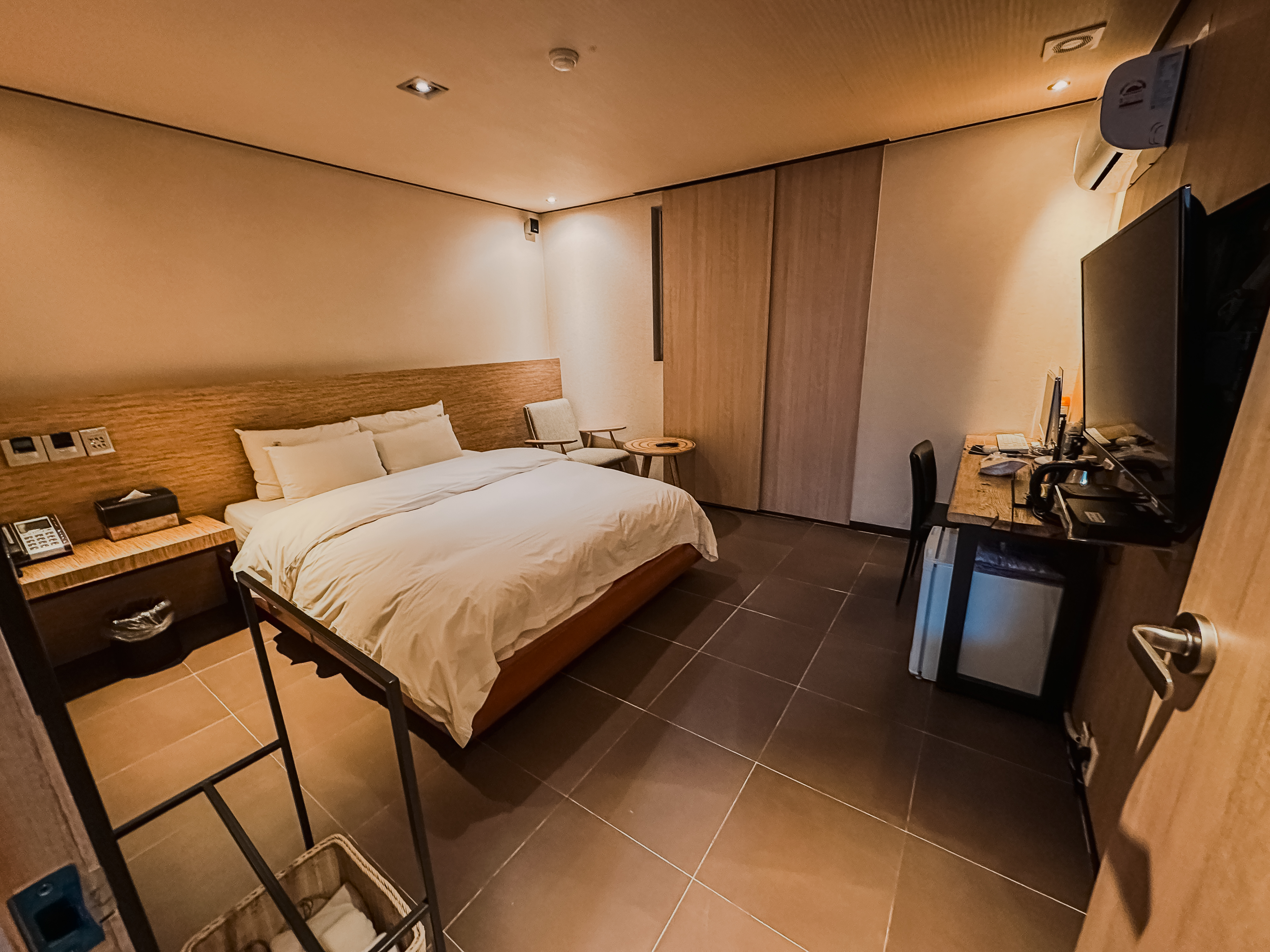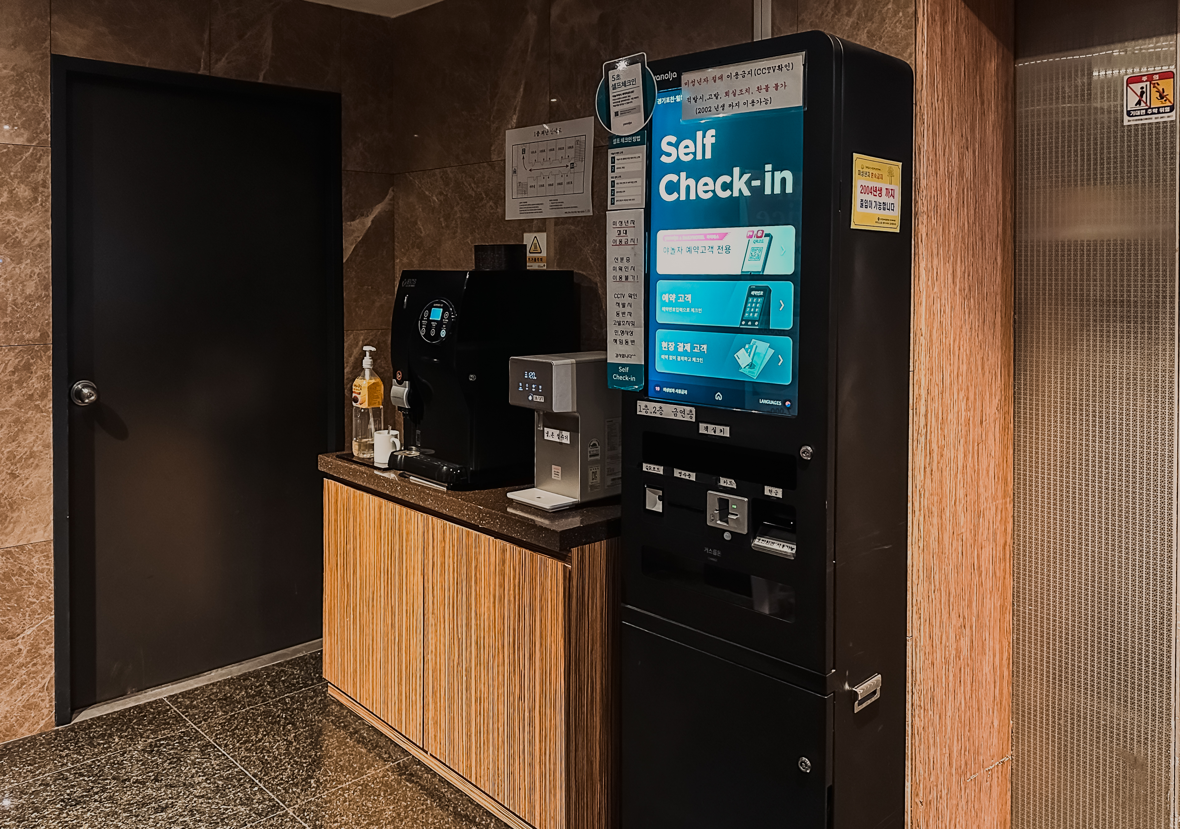 이 날 제가 늦은 시간에 방문해야 해서 거의 자정 근처에 방문했는데, 프런트에서는 직접 연락을 주셨습니다. 연락을 한 이유는 '흡연 여부에 따라 객실의 위치를 배정하기 위한 것 같았습니다.' 저는 비흡연자이기 때문에 비흡연실로 요청드렸습니다. 객실키를 받고 안내받은 객실로 들어갈 수 있었습니다.