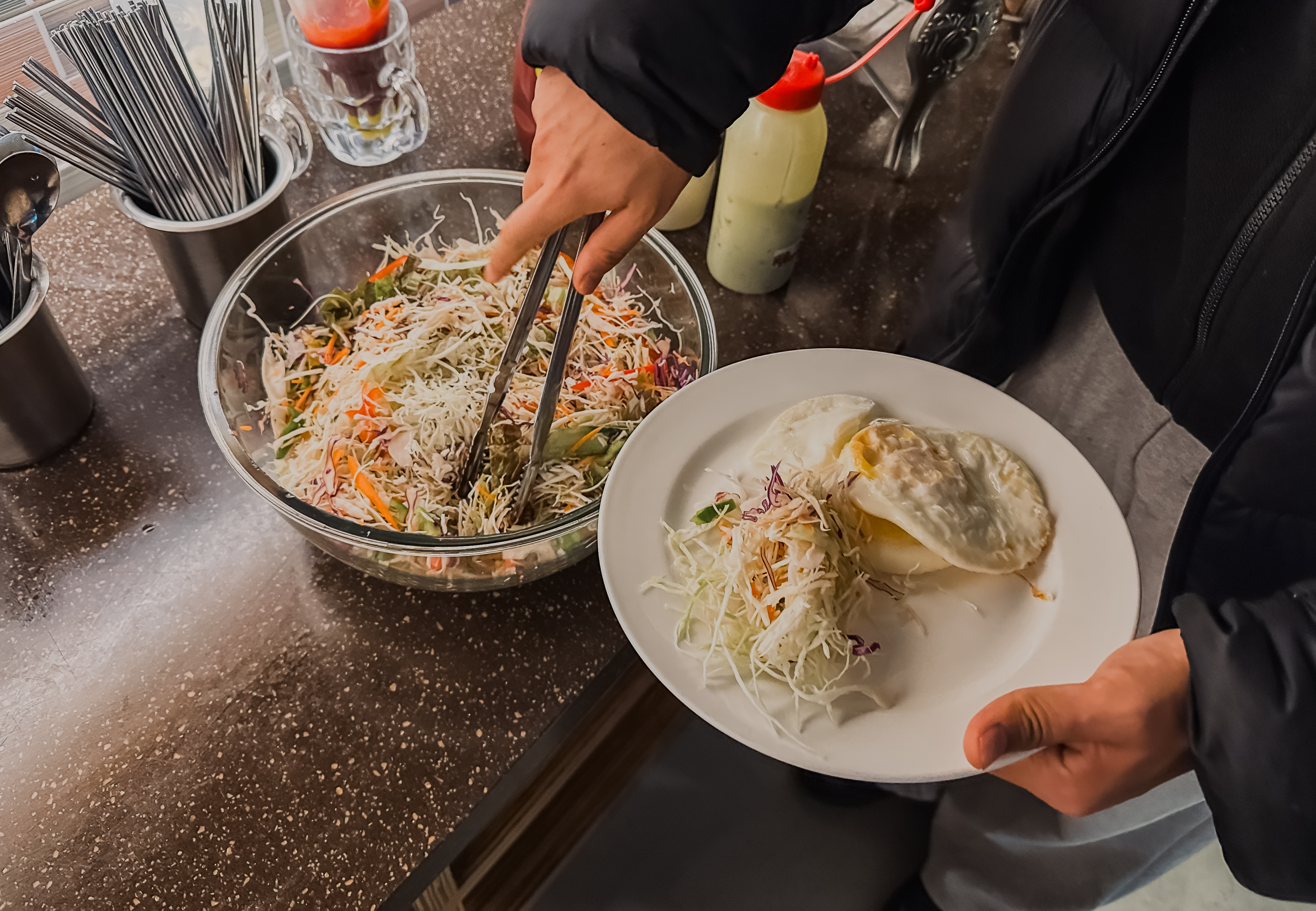 채소수프부터 시리얼, 토스트까지 다양하게 먹었는데 제가 왜 채소 수프는 사진을 안 찍었는지 모르겠습니다. 시리얼은 그냥 평범한 맛이라 소개하는 것은 생략하고 토스트는 양배추와 당근, 상추 등이 들어간 채소샐러드와 같이 곁들여 딸기잼과 달걀프라이를 곁들여 먹으니 맛있더라고요. 그밖에 음료로 주스나 우유, 커피 등을 선택해서 먹을 수 있었습니다.