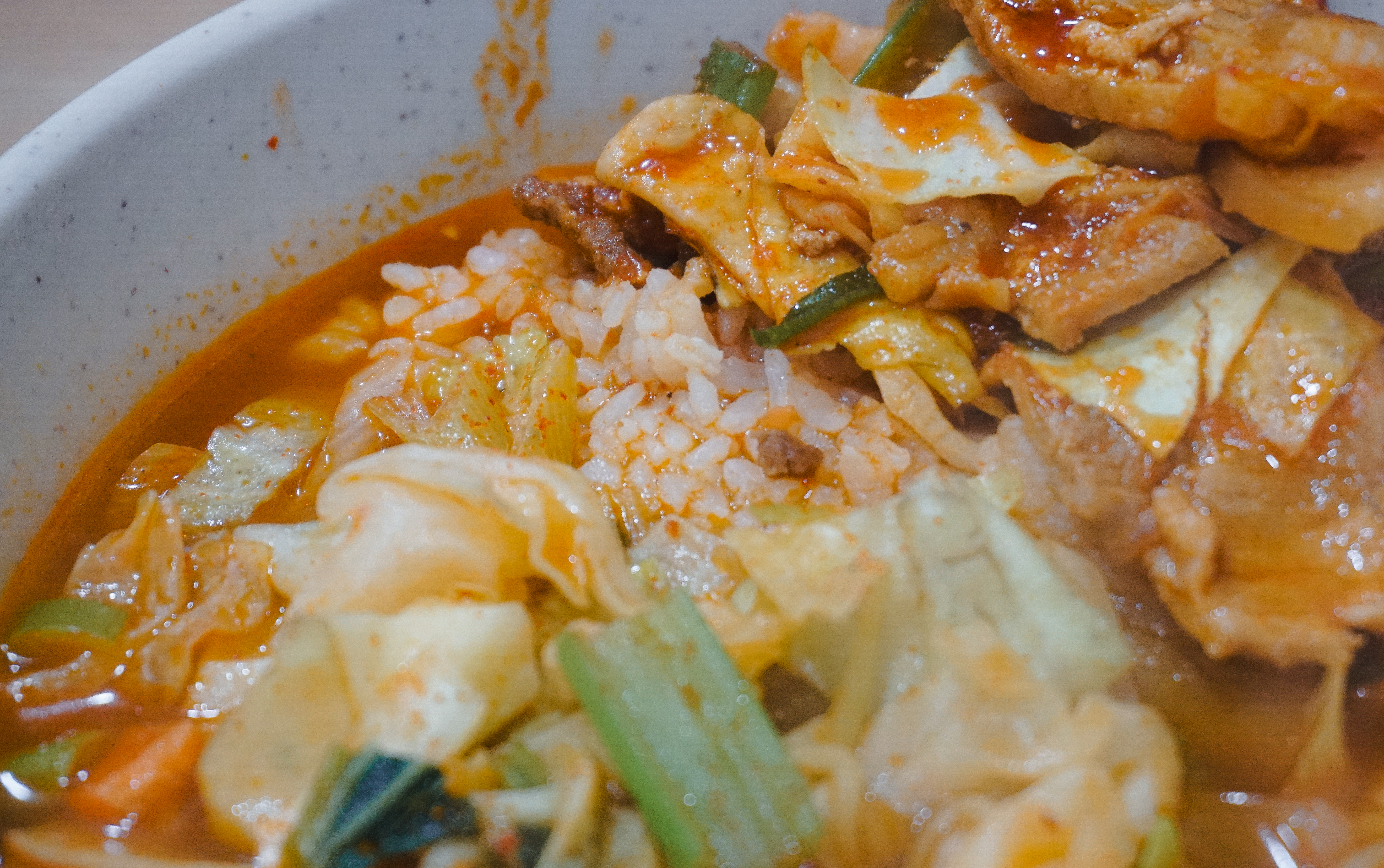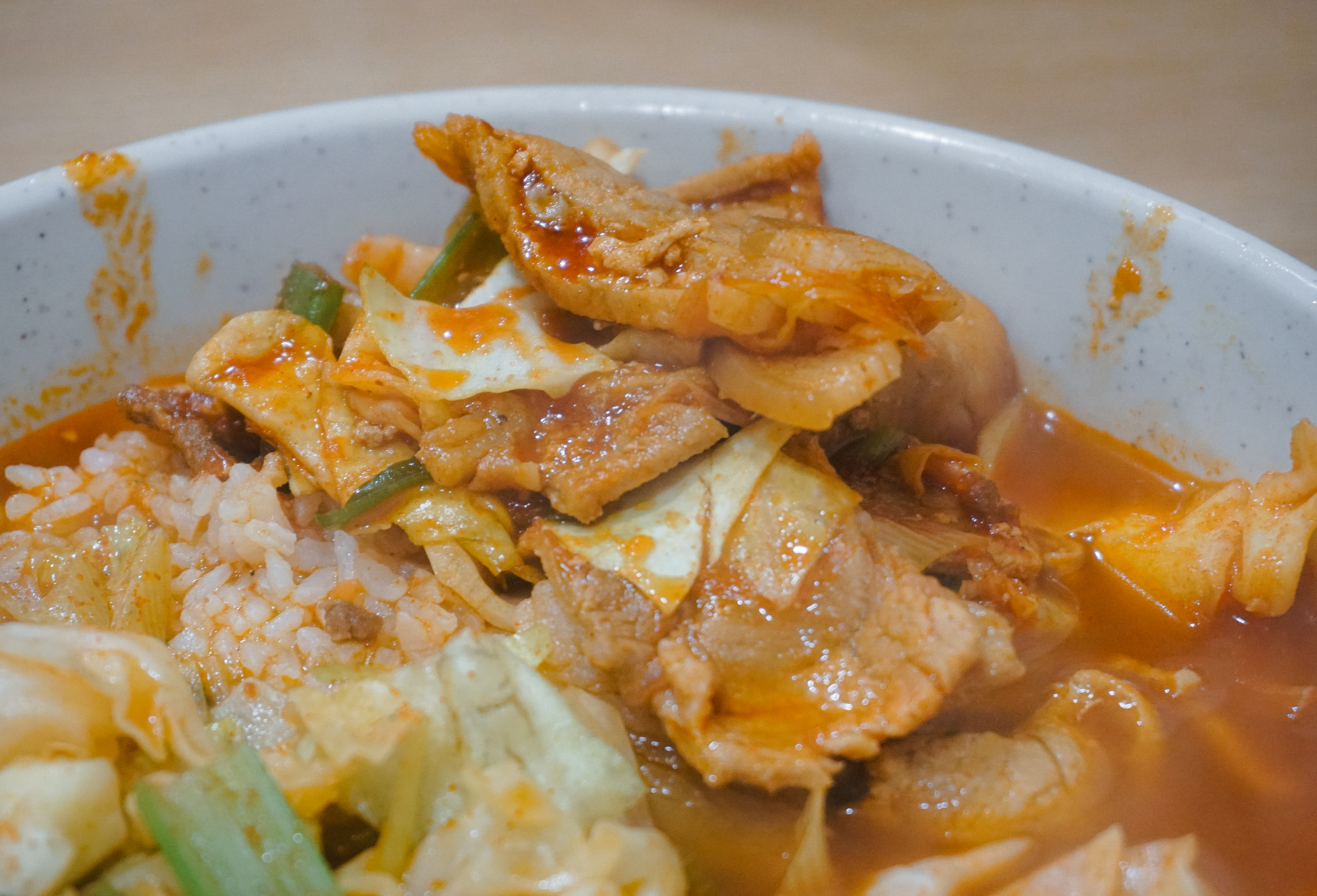 맛나분식 제육라면의 제육볶음은 살짝 식감이 퍽퍽했는데, 개인적으로 맛이 칼칼해서 입맛에 더 잘 맞았고, 라면의 꼬들한 식감을 선호하시는 분은 라면부터 건져서 드시는 것을 추천드립니다. 밥은 조금 퍼지게 해서 먹는 것도 나쁘지 않았습니다.