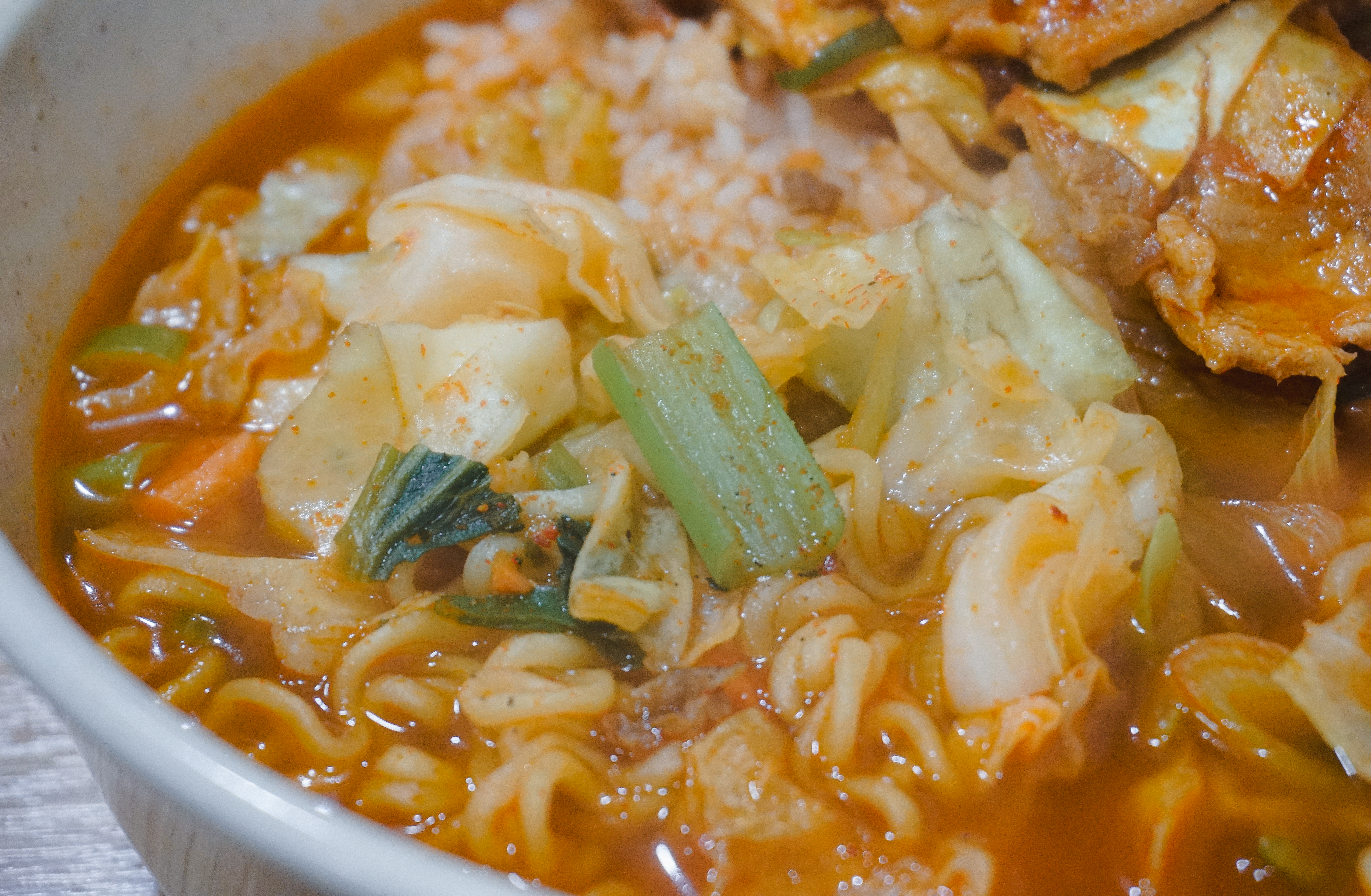 제육라면은 양배추와 함께 볶아낸 제육볶음과 라면 그리고 밥이 들어간 메뉴였습니다. 라면이나 밥은 아주머니께서 재량껏 양조절을 해주셨고, 생각보다 양을 많이 챙겨주셔서 배부르게 먹을 수 있었습니다.