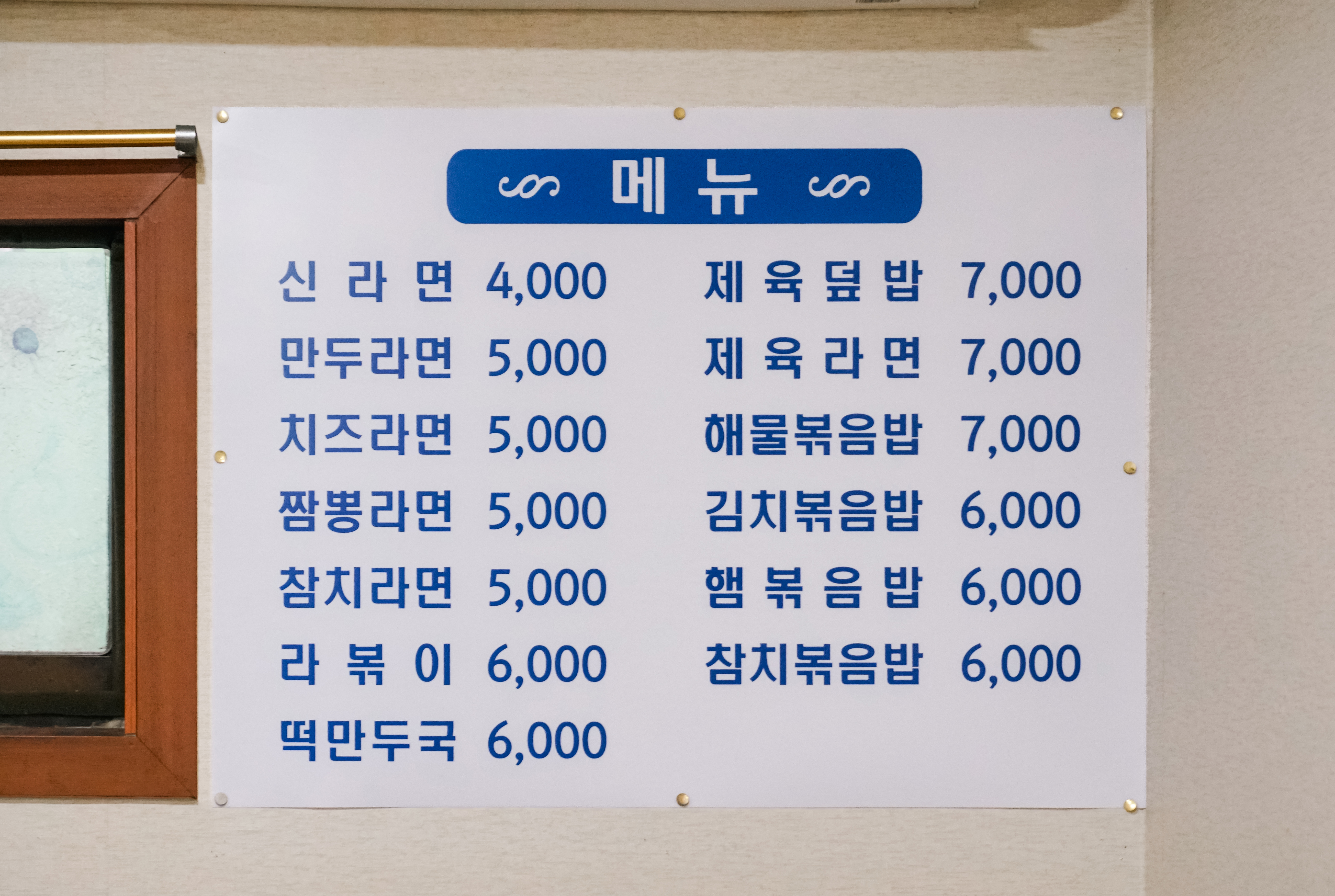 남영역 맛나분식의 메뉴는 신라면, 만두라면, 치즈라면, 짬뽕라면, 참치라면, 라볶이, 떡만두국, 제육덮밥, 제육라면, 해물볶음밥, 김치볶음밥, 햄볶음밥, 참치볶음밥 이 있었습니다. 저는 제육라면을 주문했습니다.