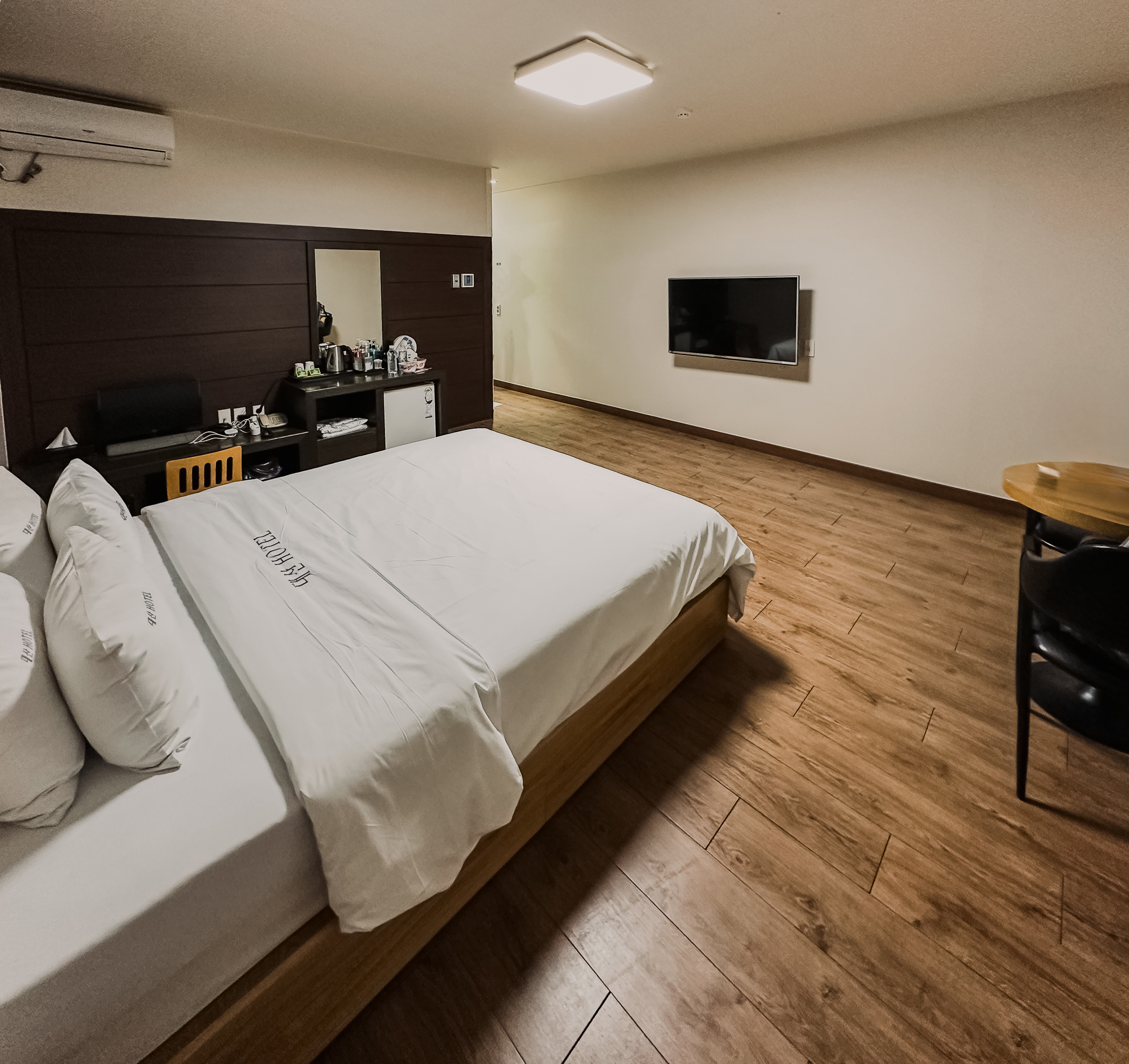 저는 서산 대산호텔에서 제일 저렴한 가격의 객실을 대여했는데, 가장 저렴한 객실인데도 방의 크기가 굉장히 광활하다는 것을 알 수 있었습니다.