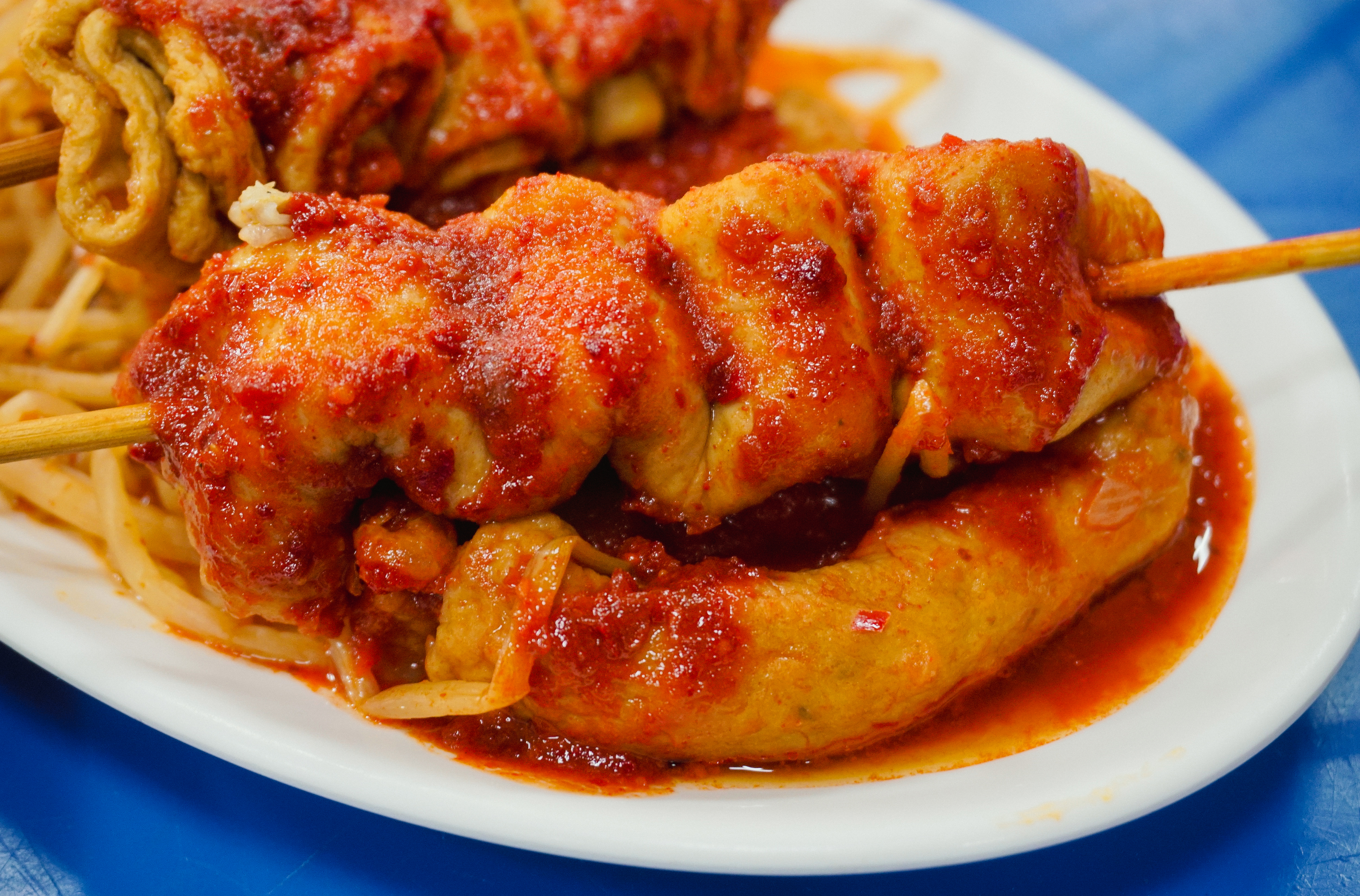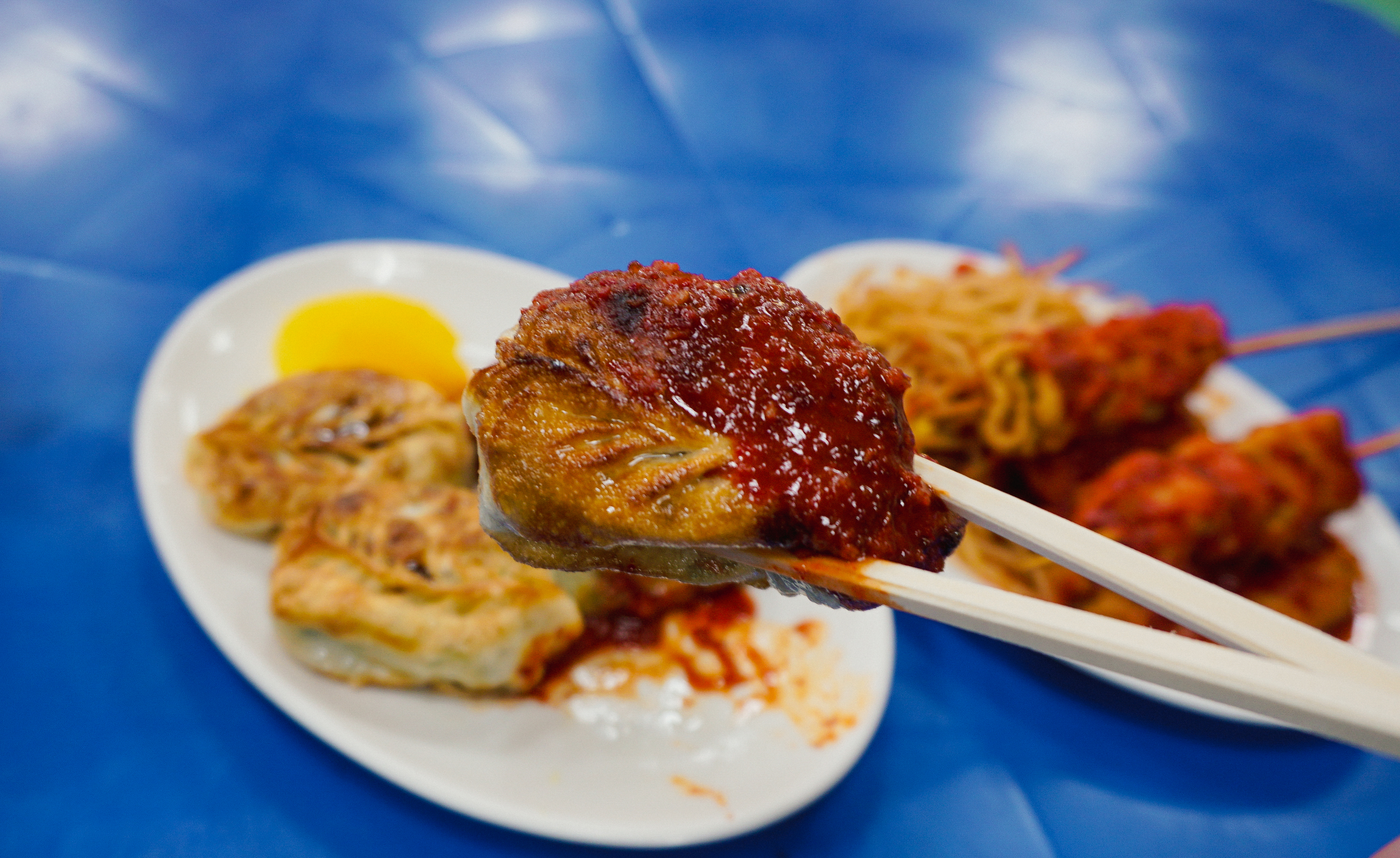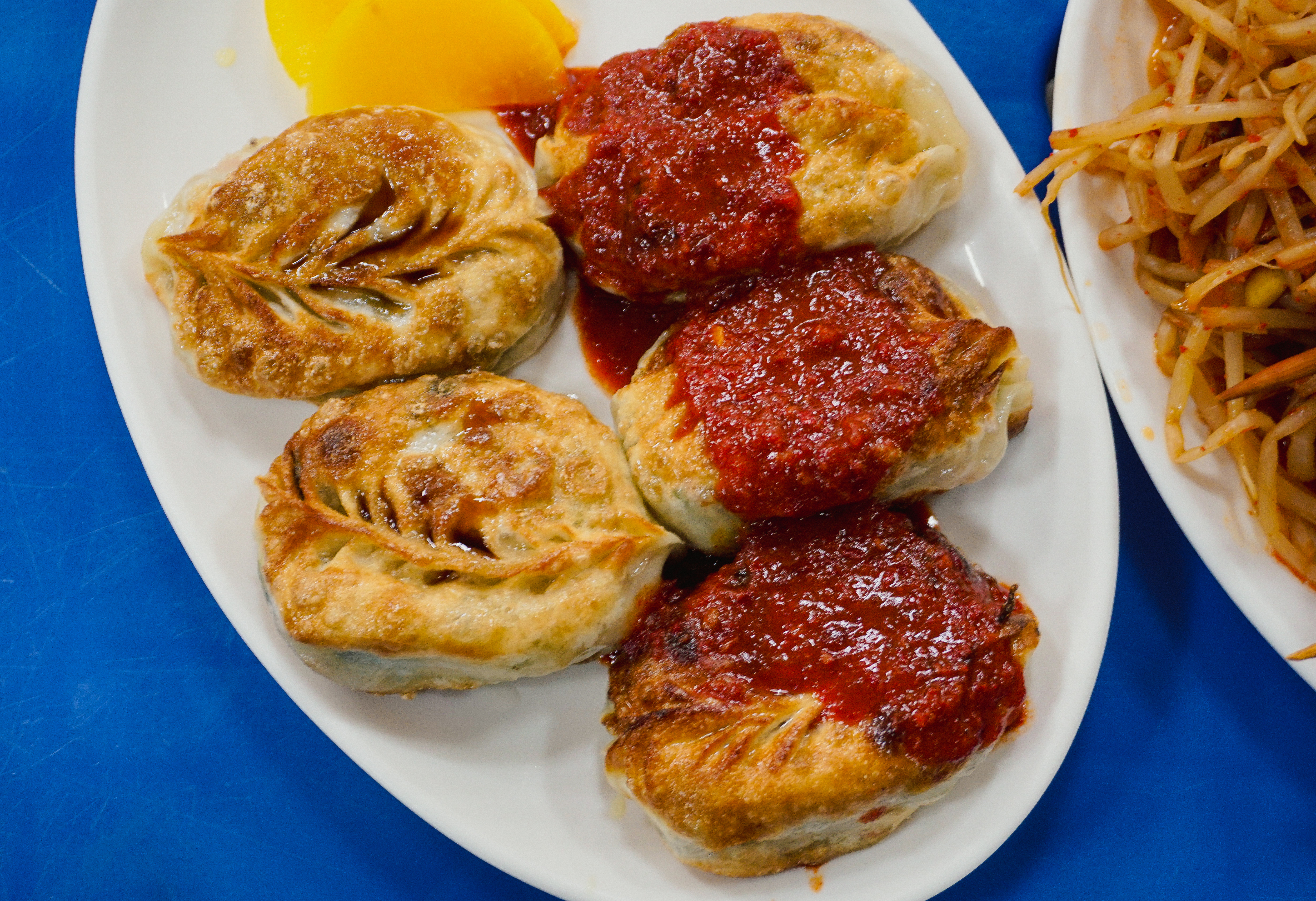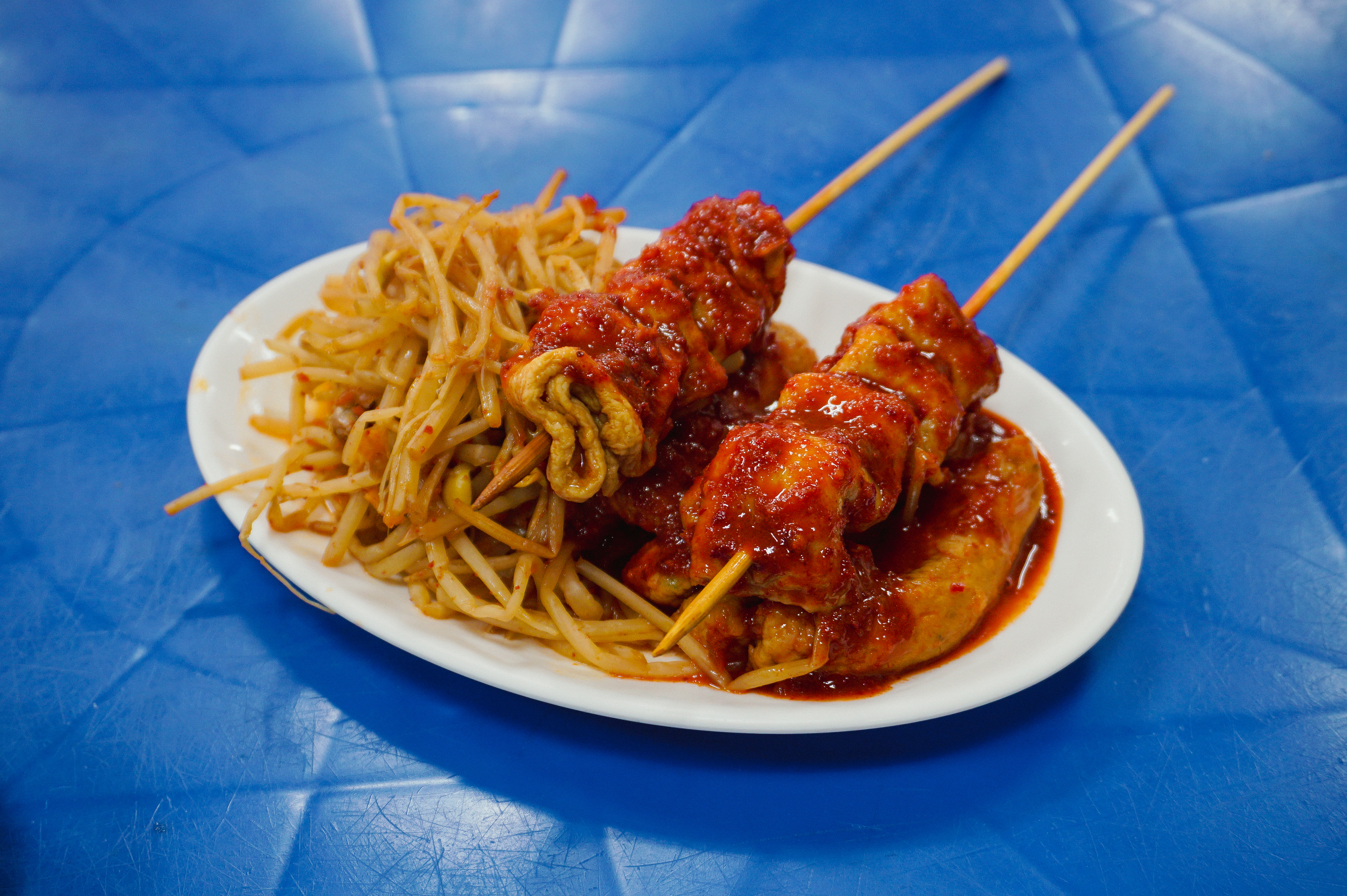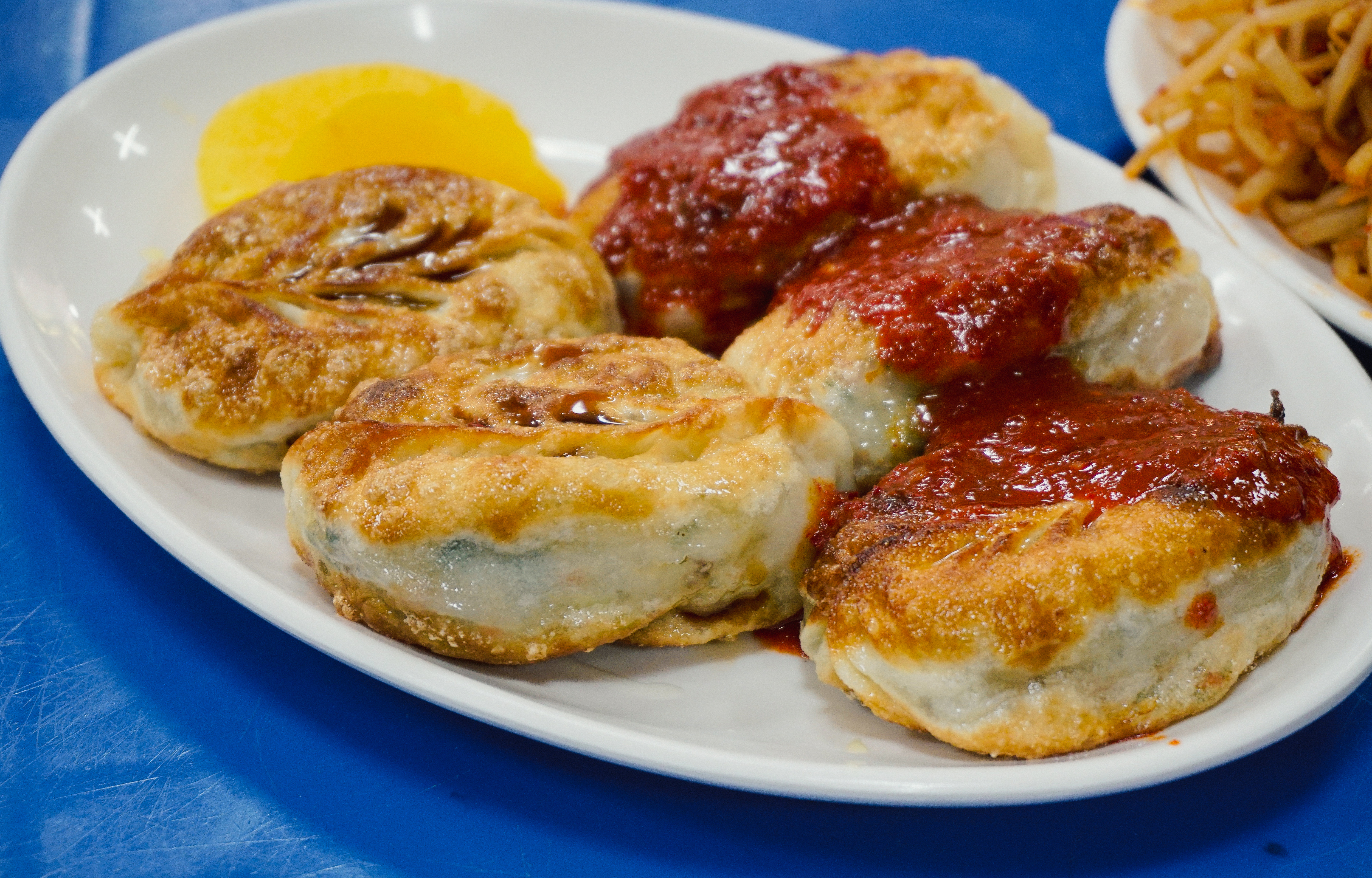 제가 주문한 메뉴는 군만두와 양념오뎅이었는데, 군만두는 양념을 절반정도 묻혀서 주시더라고요. 맛은 두부조림(?) 같은 양념이 느껴지더라고요. 그밖에 양념오뎅으로 불리는 어묵은 콩나물과 같이 곁들여 먹는다는 것이 신기했는데, 생각보다 먹을만하더라고요.