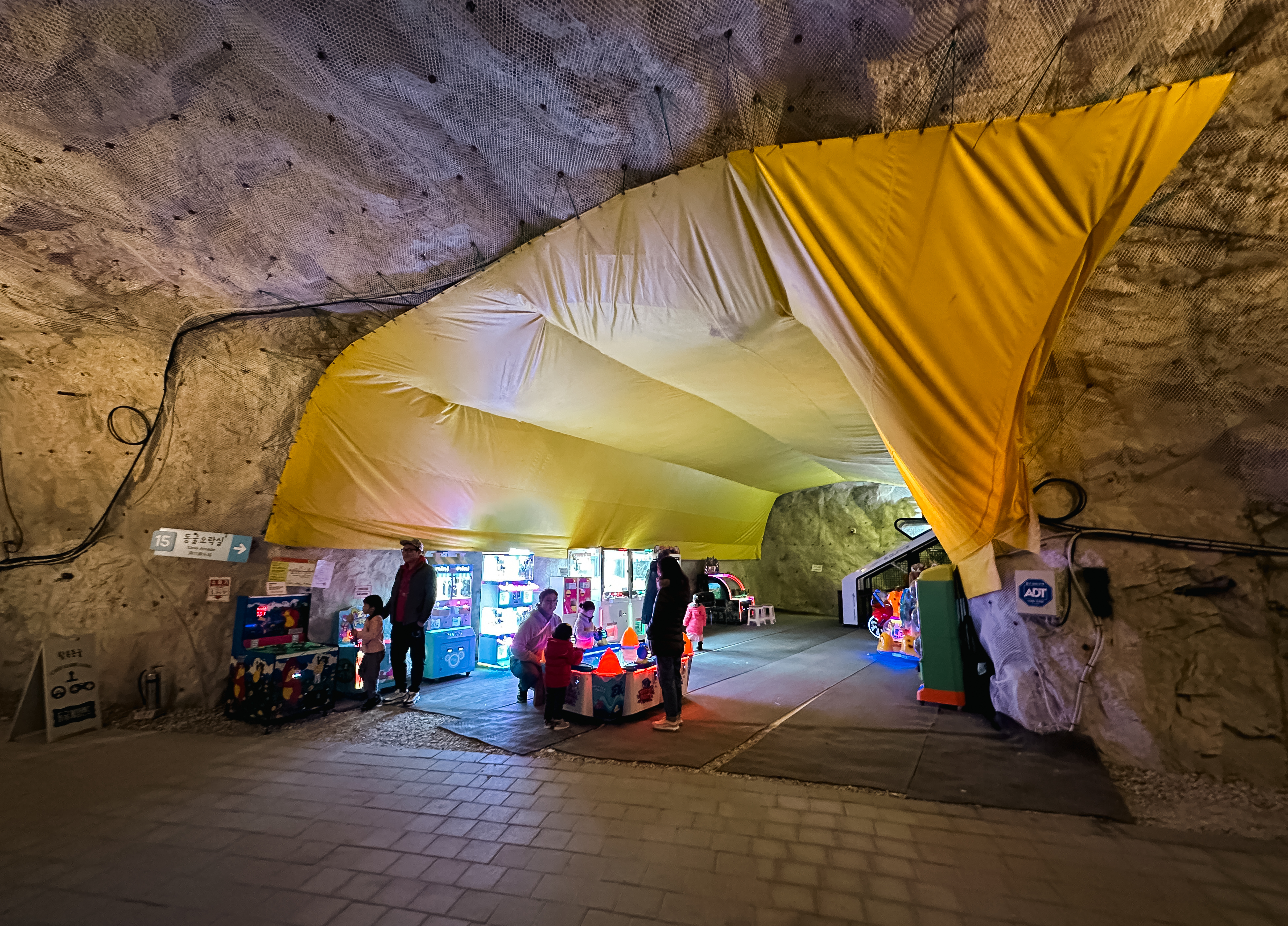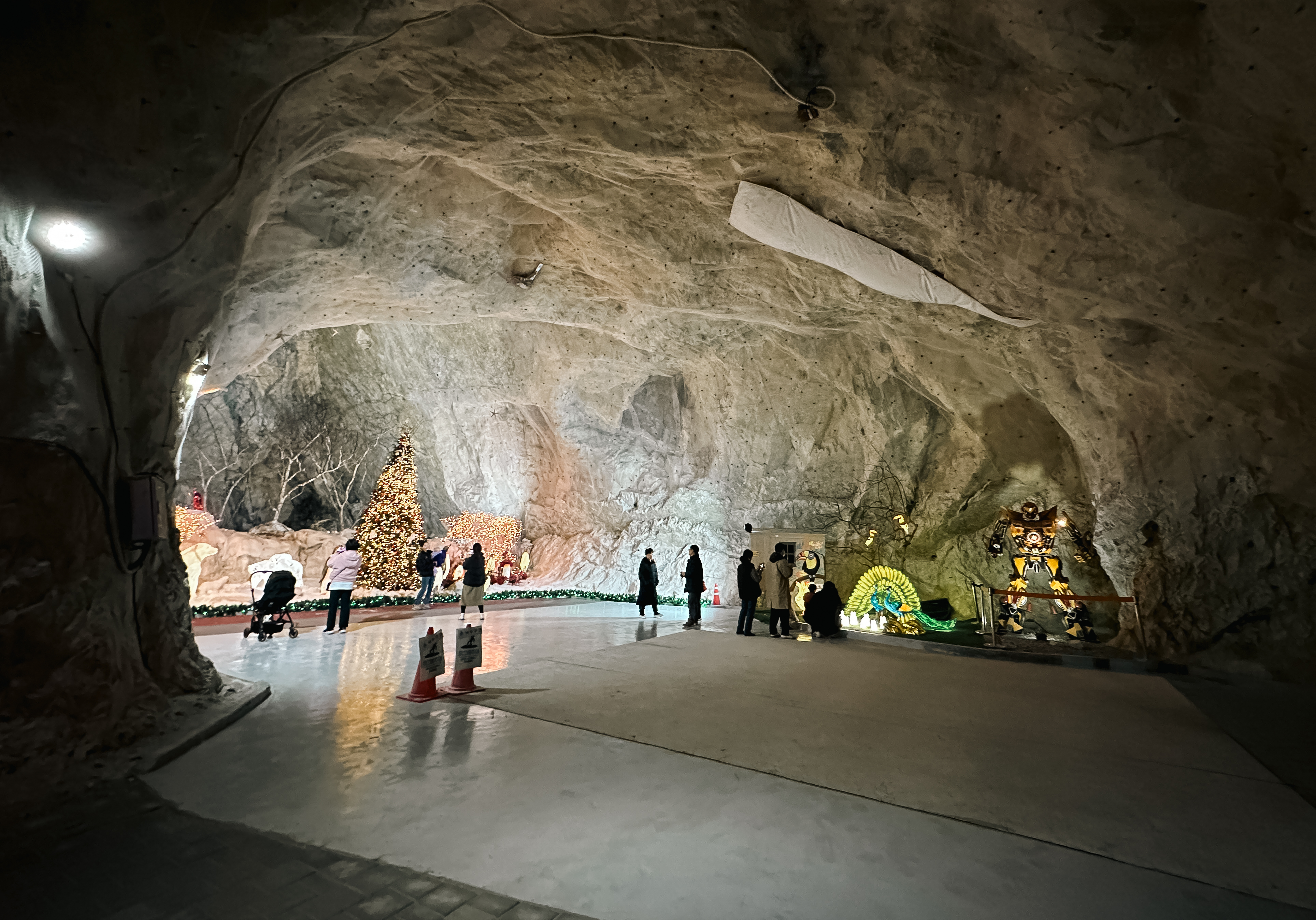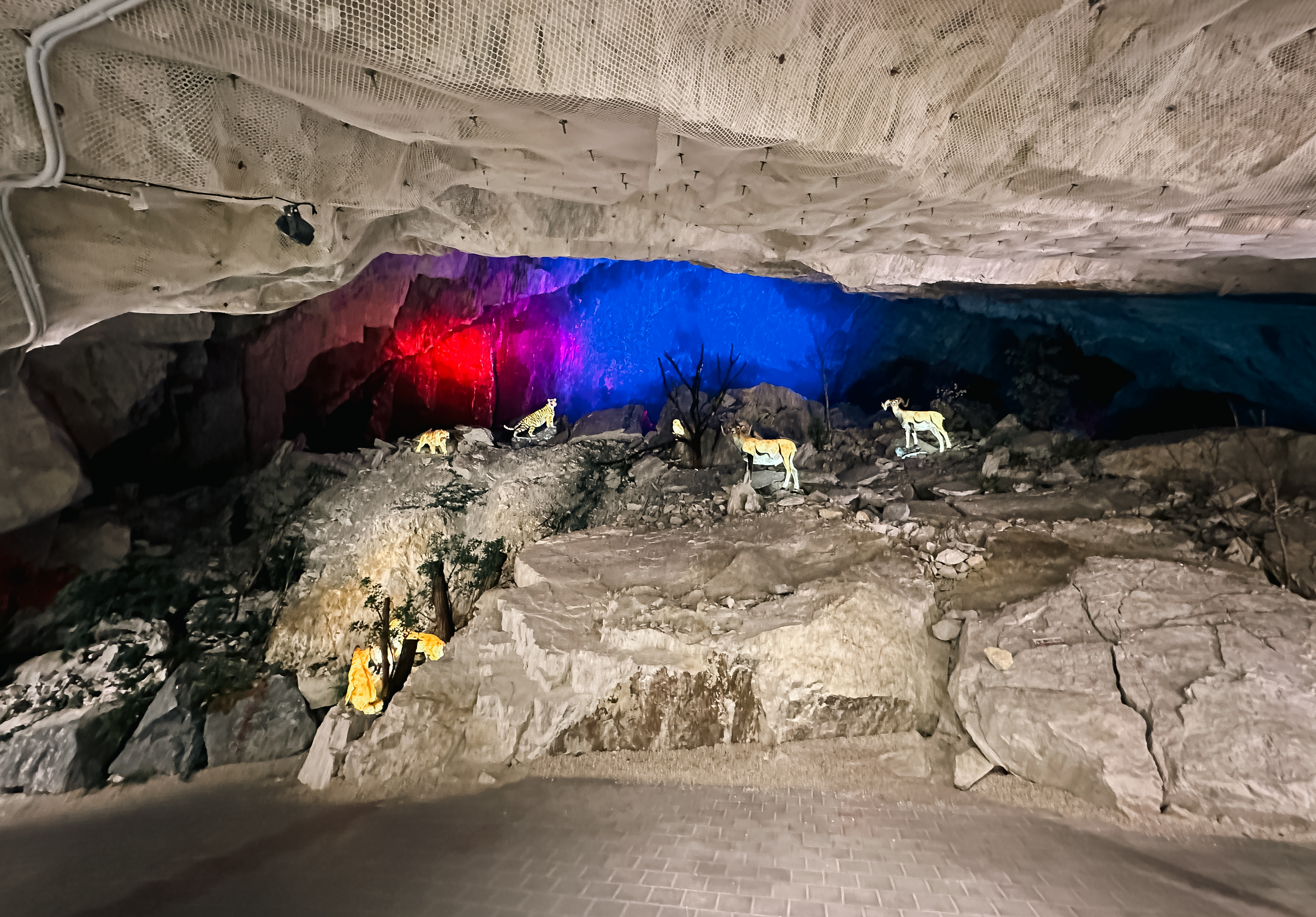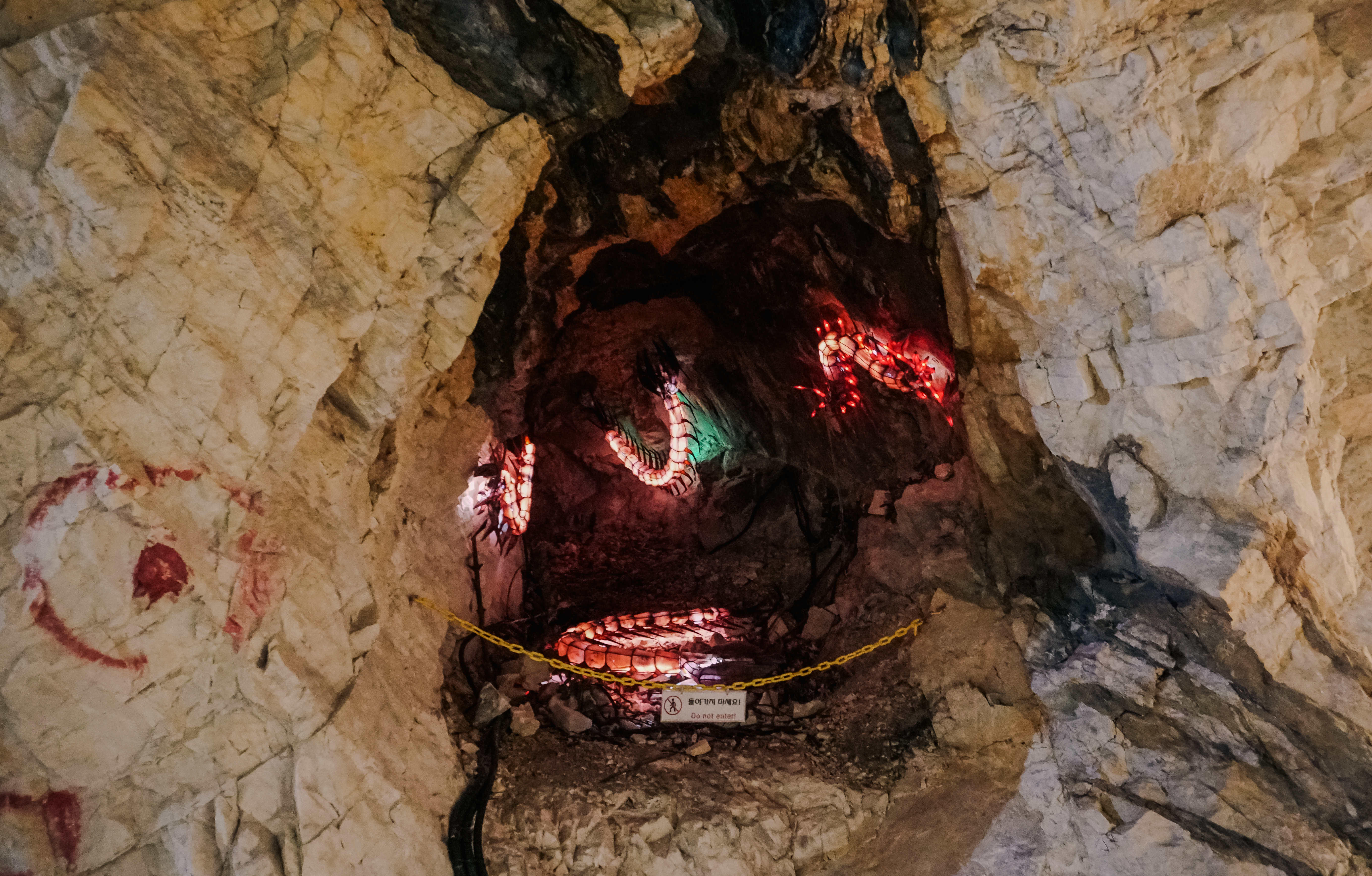 그밖에 동굴이라는 공간적 특징을 잘 살린 공간들이 많았습니다. 동굴이라는 환경이 자연광이 들지 않기 때문에 곳곳에 LED를 활용한 색색의 조명들로 분위기를 연출하고 있었고, 야광빛 도료를 활용한 페인팅도 볼 수 있었습니다. 사진이 더 많이 남았지만, 동굴 속 안내는 여기까지 하고, 동굴 밖 공간들도 소개해드리겠습니다.