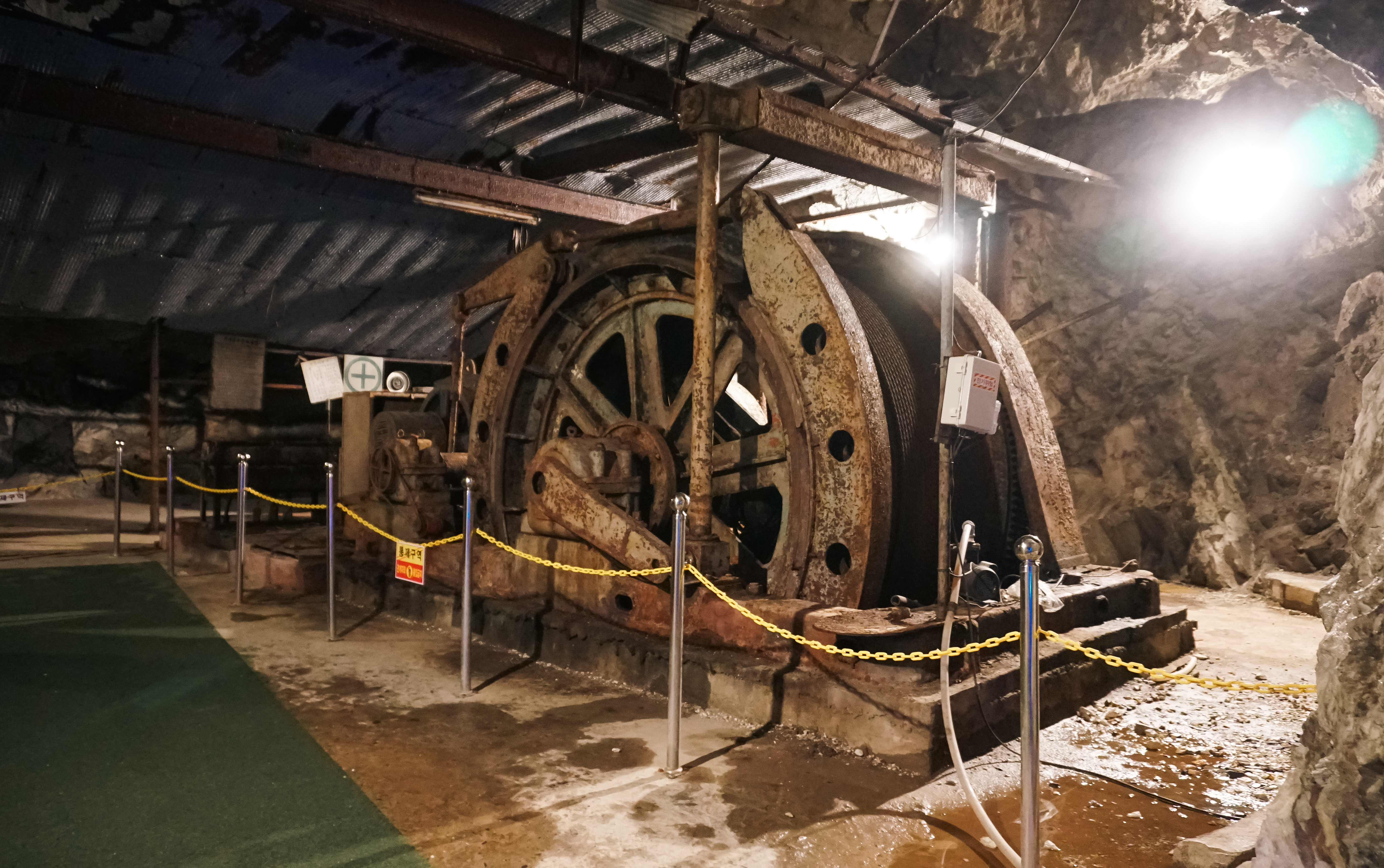 동굴에는 권양기라고 불리는 사람과 채굴한 광물을 지상으로 운반하기 위한 설비가 있었습니다. 위 사진과 같은 수레들을 동굴 안팎으로 이동시켜 주는 역할을 한다고 보면 됩니다. 500마력 기준 8~10t 정도를 운반할 수 있다고 합니다.