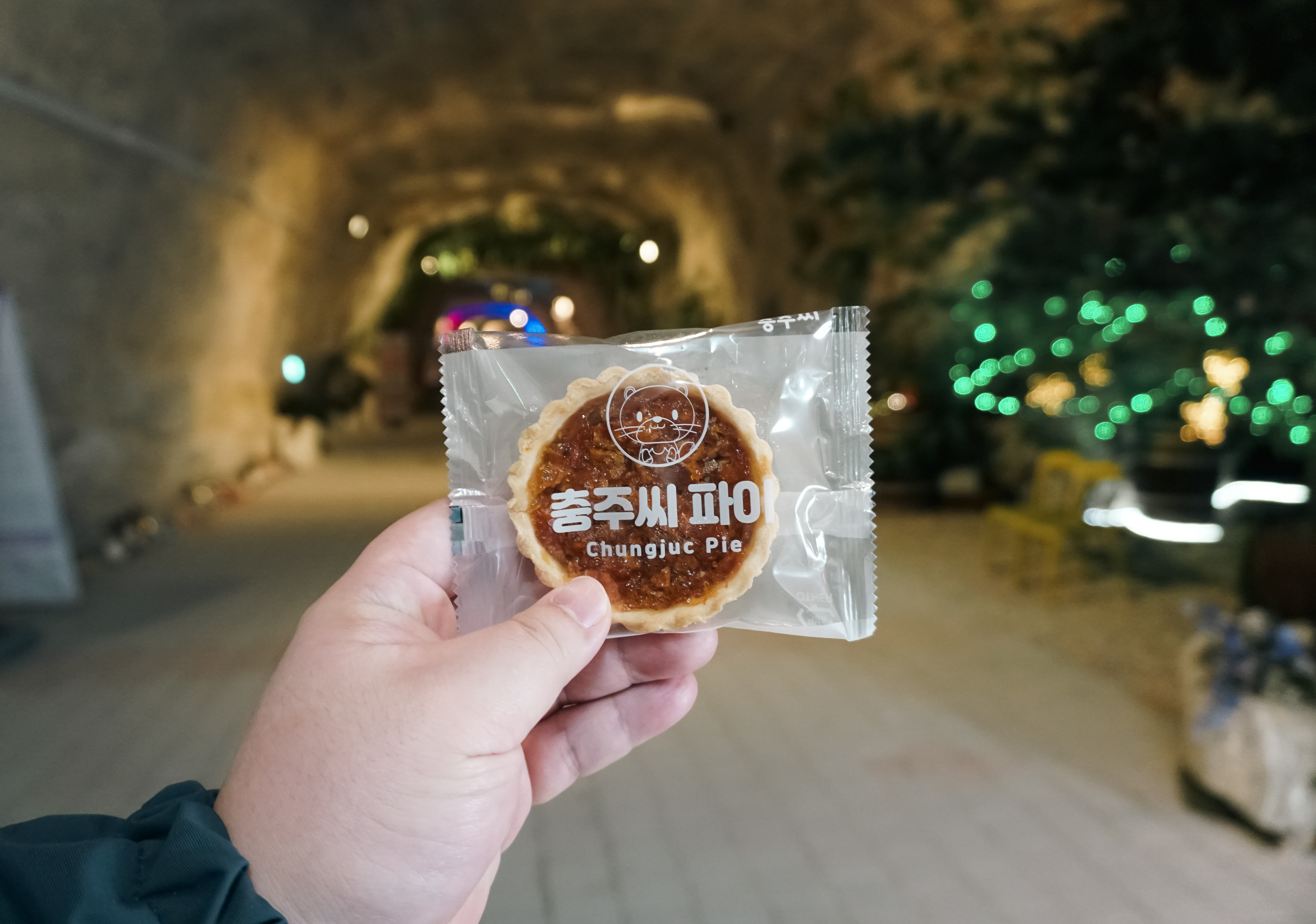동굴 내 매점에서는 충주의 특산품 및 다양한 간식을 판매하고 있었습니다. 저희는 사과떡과 사과파이를 먹었는데, 사과떡은 찹쌀떡과 비슷한 식감이었는데, 속의 앙금은 사과가 들어가 새콤한 맛이 있었고, 사과파이는 꾸덕한 식감이 괜찮았습니다.