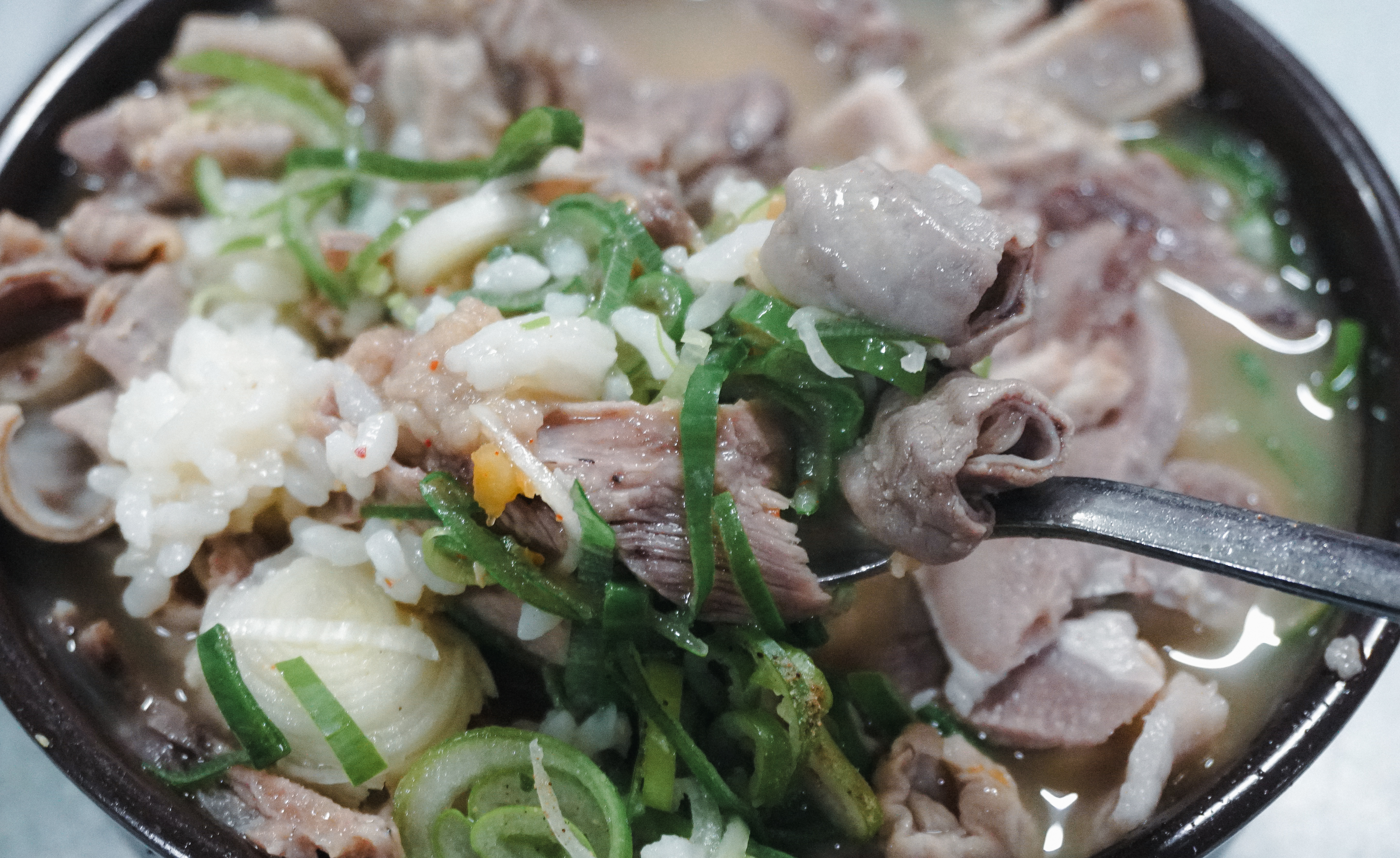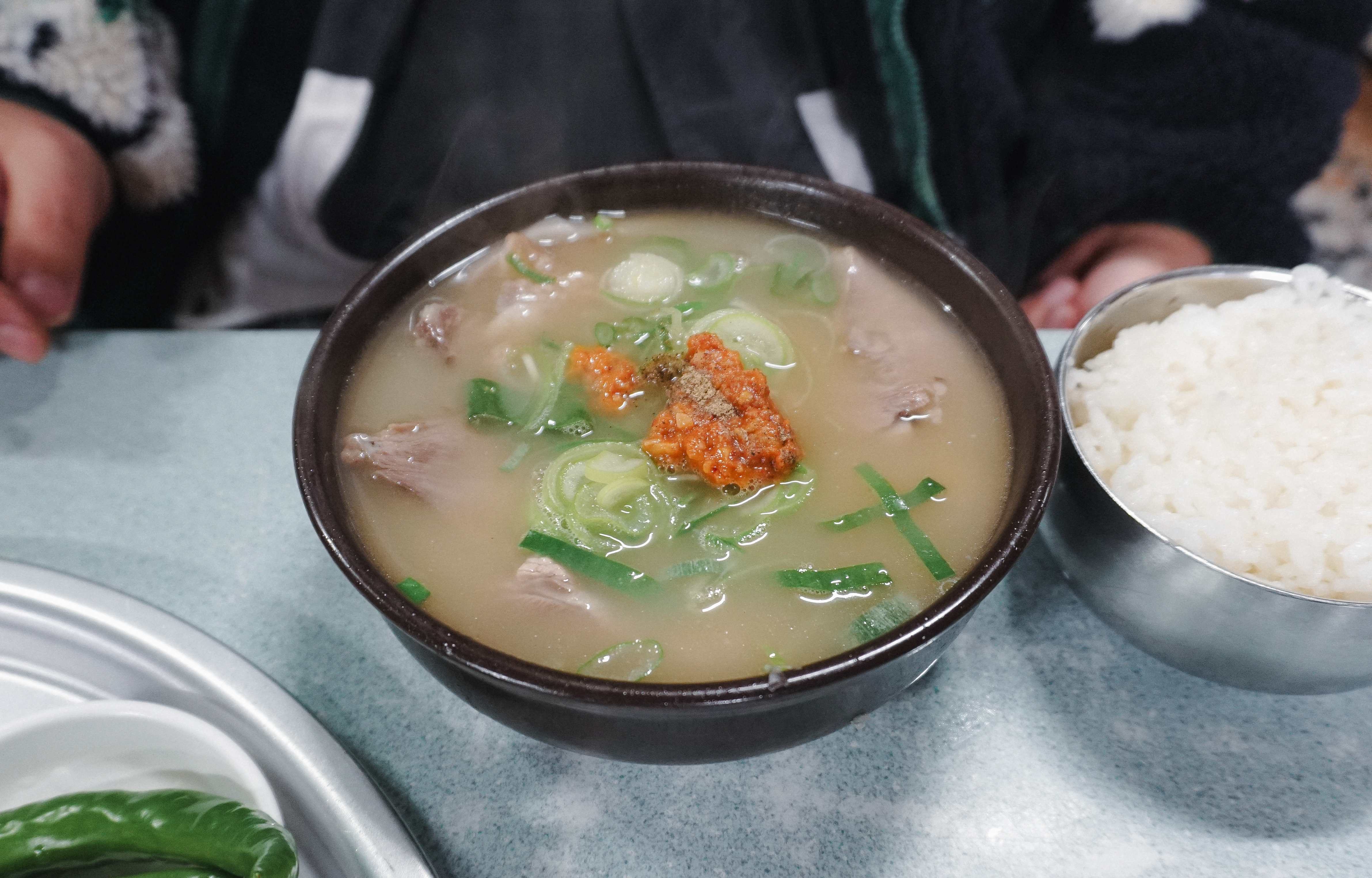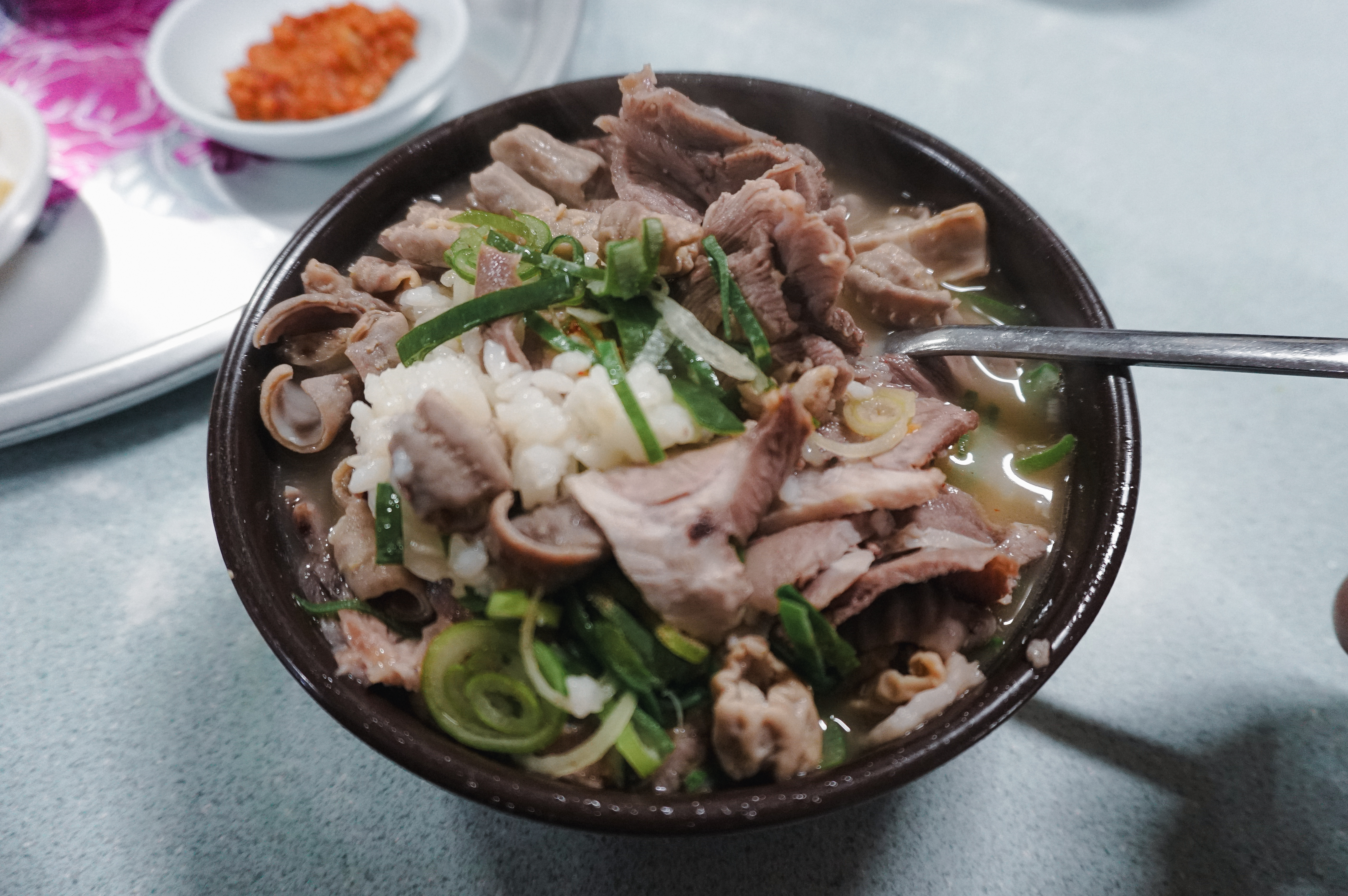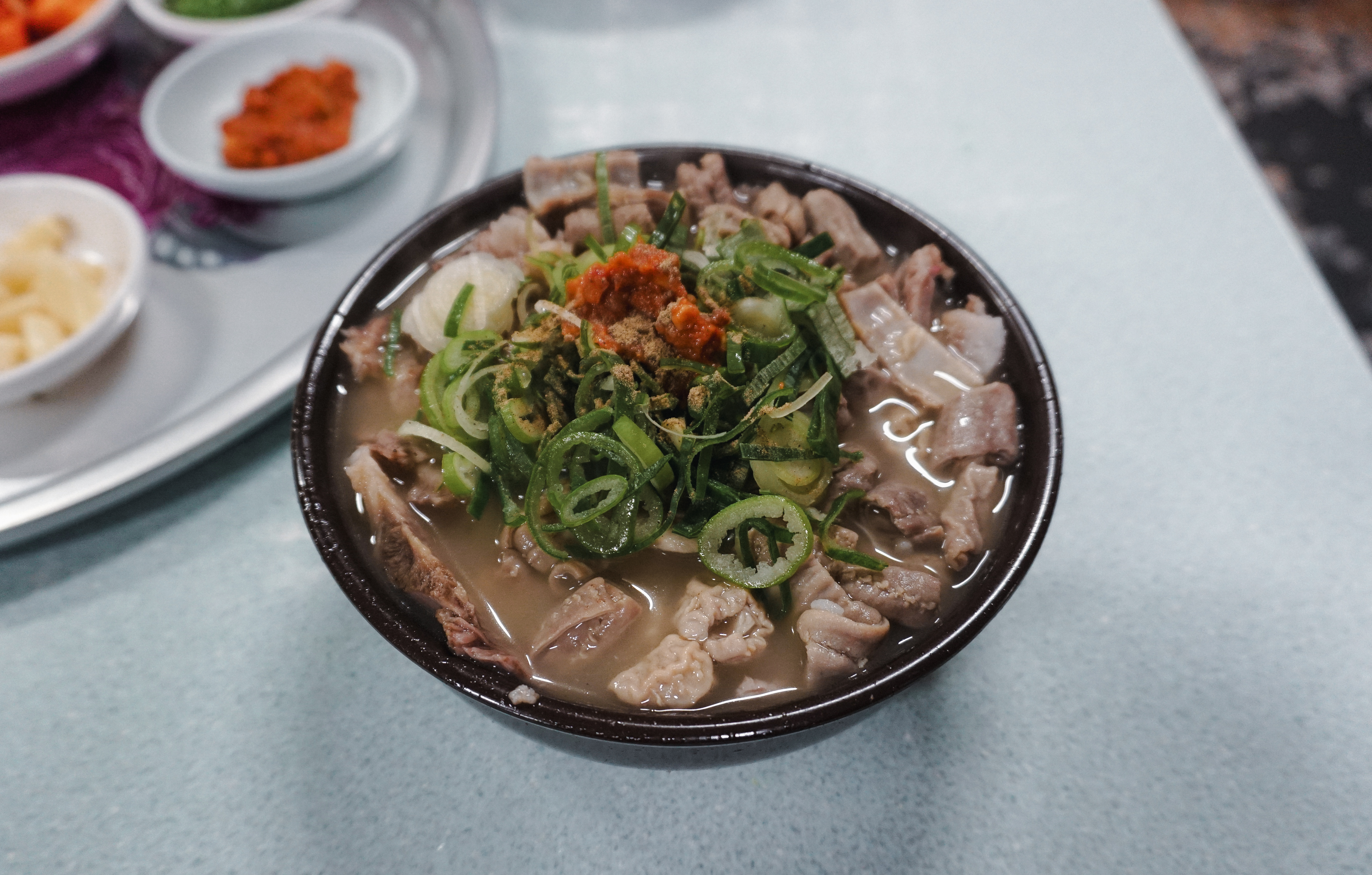 제가 주문한 곱창국밥은 돼지국밥과 내장국밥의 중간정도 되는 메뉴로, 부드러운 식감의 돼지고기와 야들야들 고소한 곱창이 들어가 맛이 좋았습니다. 이곳의 돼지고기 수육은 정말 부드러워서 과장 조금 보태서 거의 씹지 않아도 넘어갈 정도였습니다.