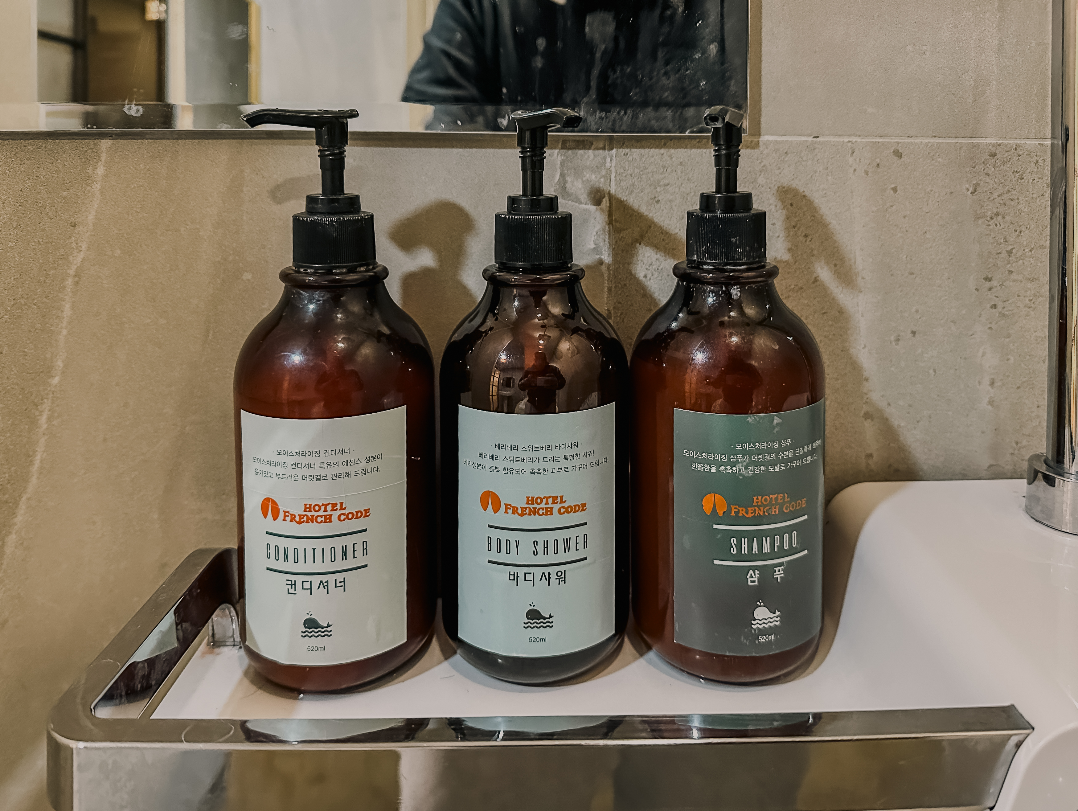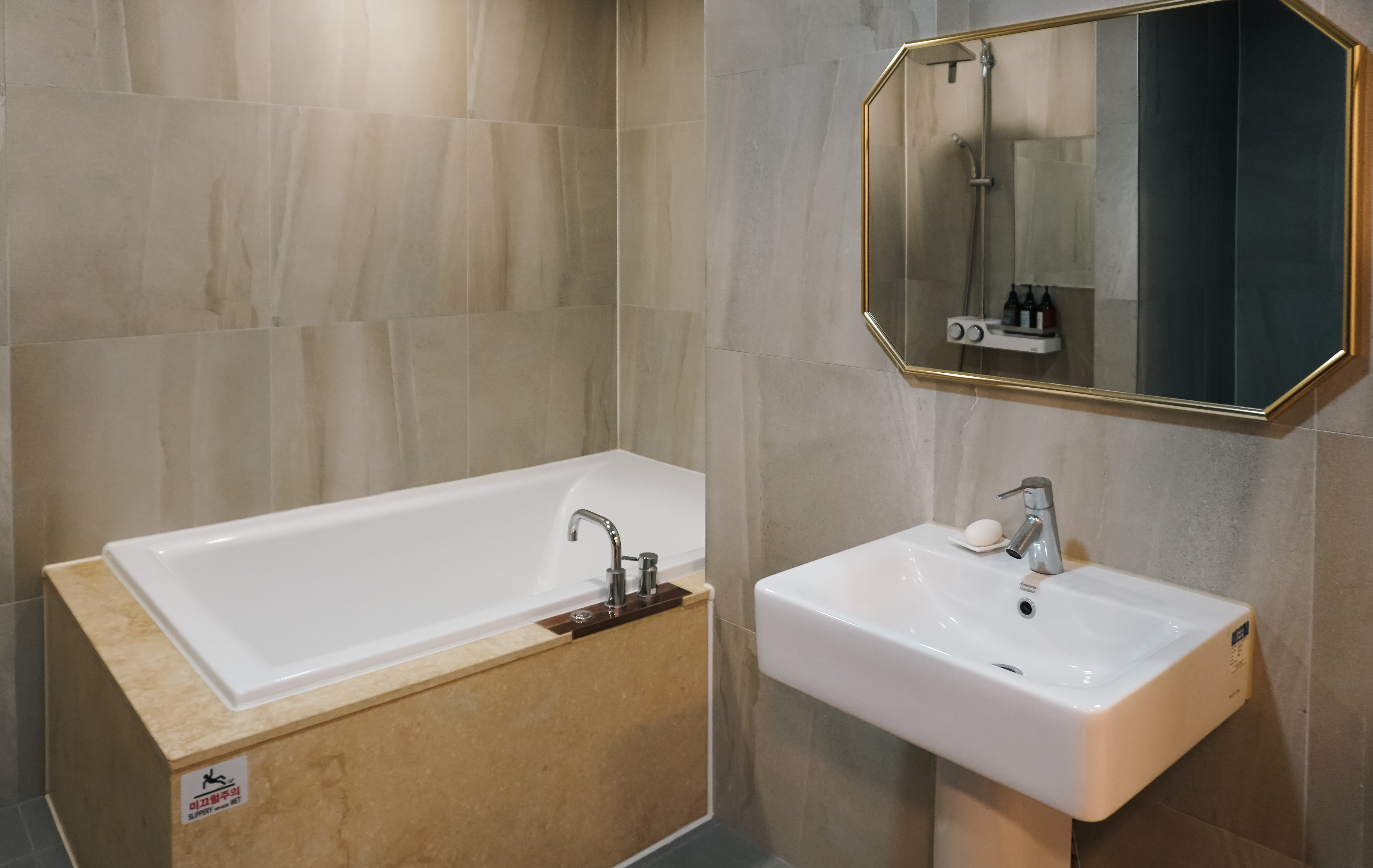 프렌치코드 욕실의 모습은 이렇습니다. 욕실은 전체적으로 고급스러운 느낌이 있었고, 샤워기나 욕조 모두 고급스럽고 좋더라고요. 물론 비데까지 설치되어 있어서 좋았습니다.