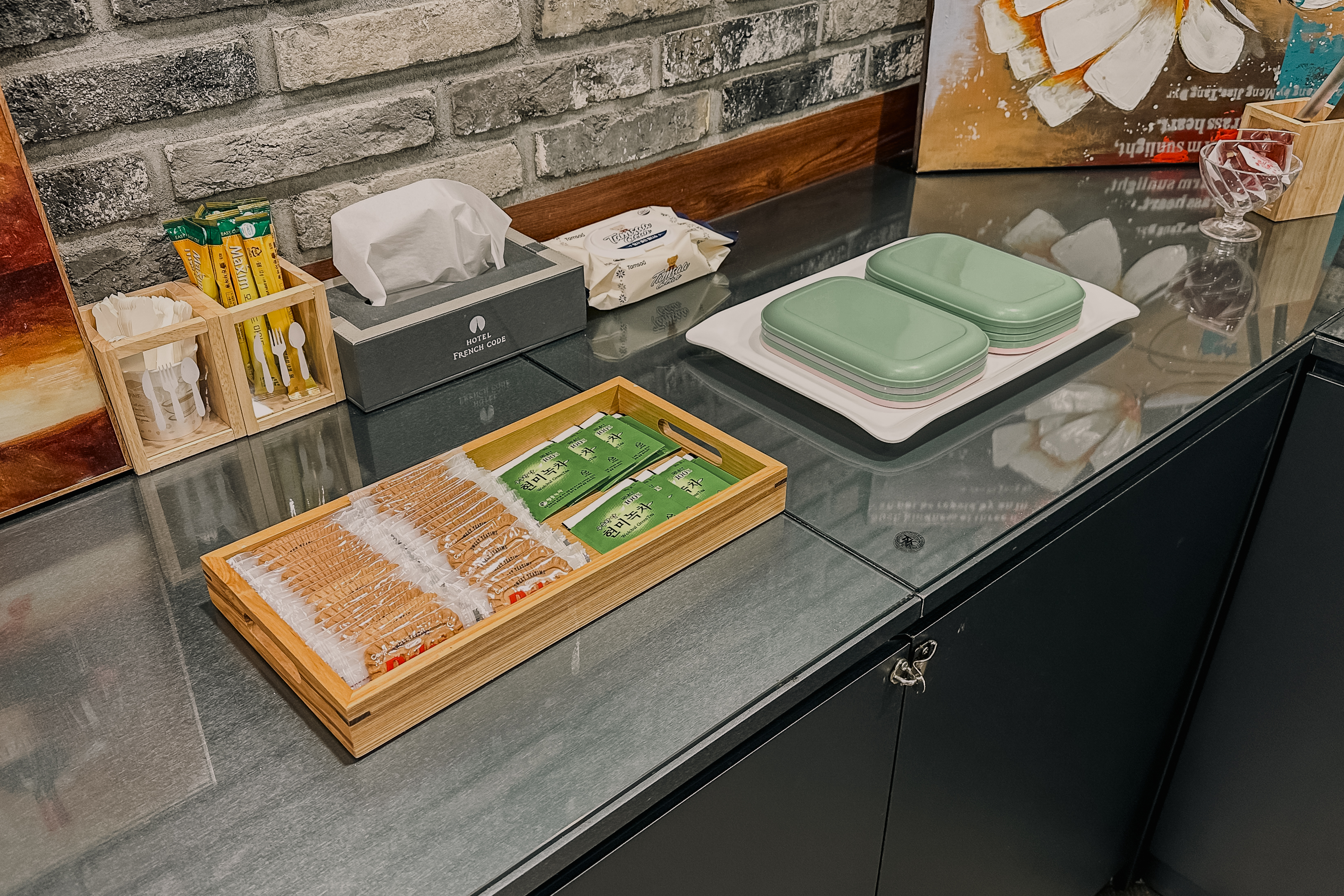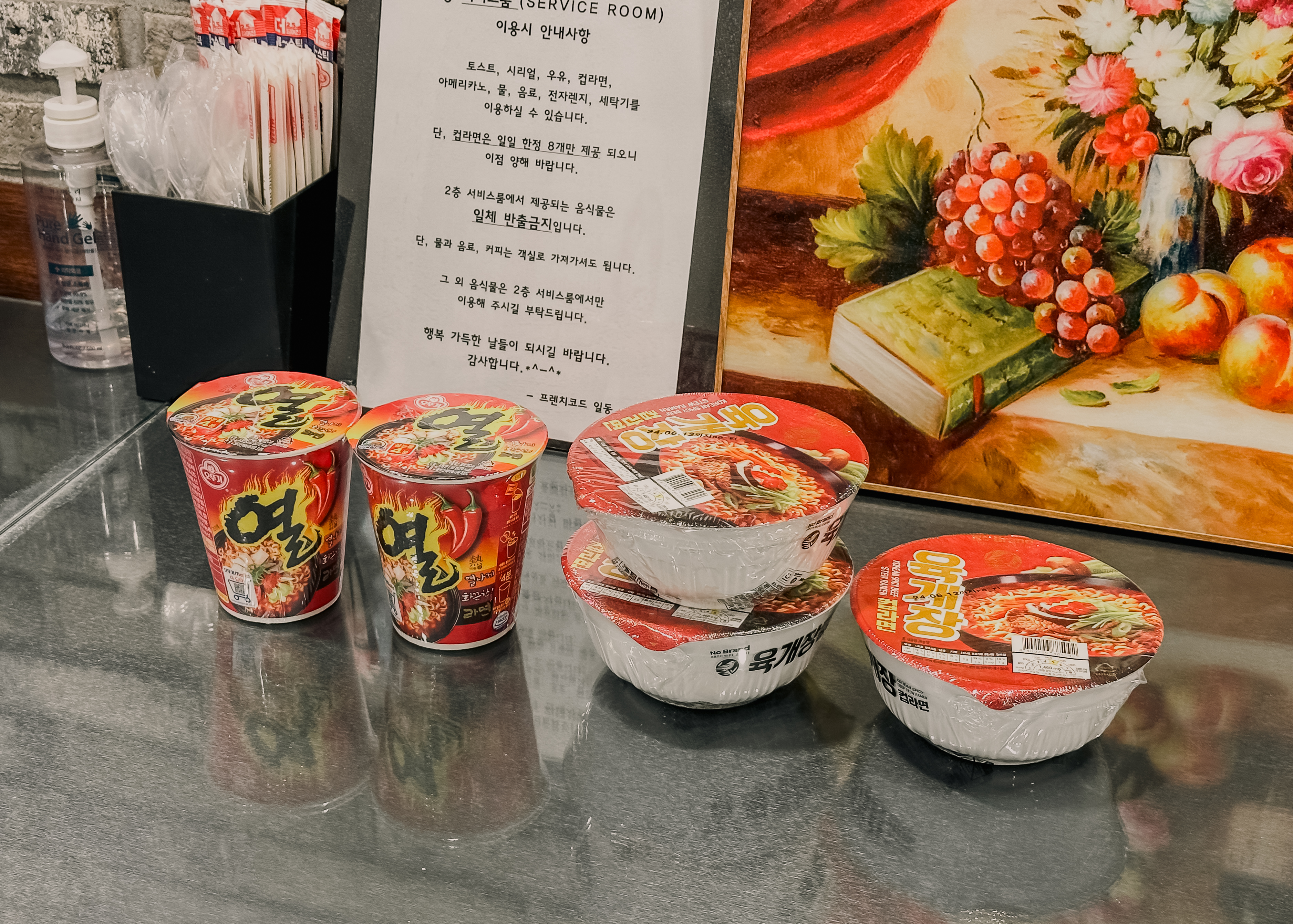 청주 프렌치코드의 서비스 시설은 위와 같았습니다. 이곳에는 다양한 음료와 우유 등이 있었고, 과자와 컵라면, 시리얼 등이 있었는데 시설이 깔끔하고 잘 관리되어 있었습니다. 저는 음료수를 마시기 위해 이용했었습니다.