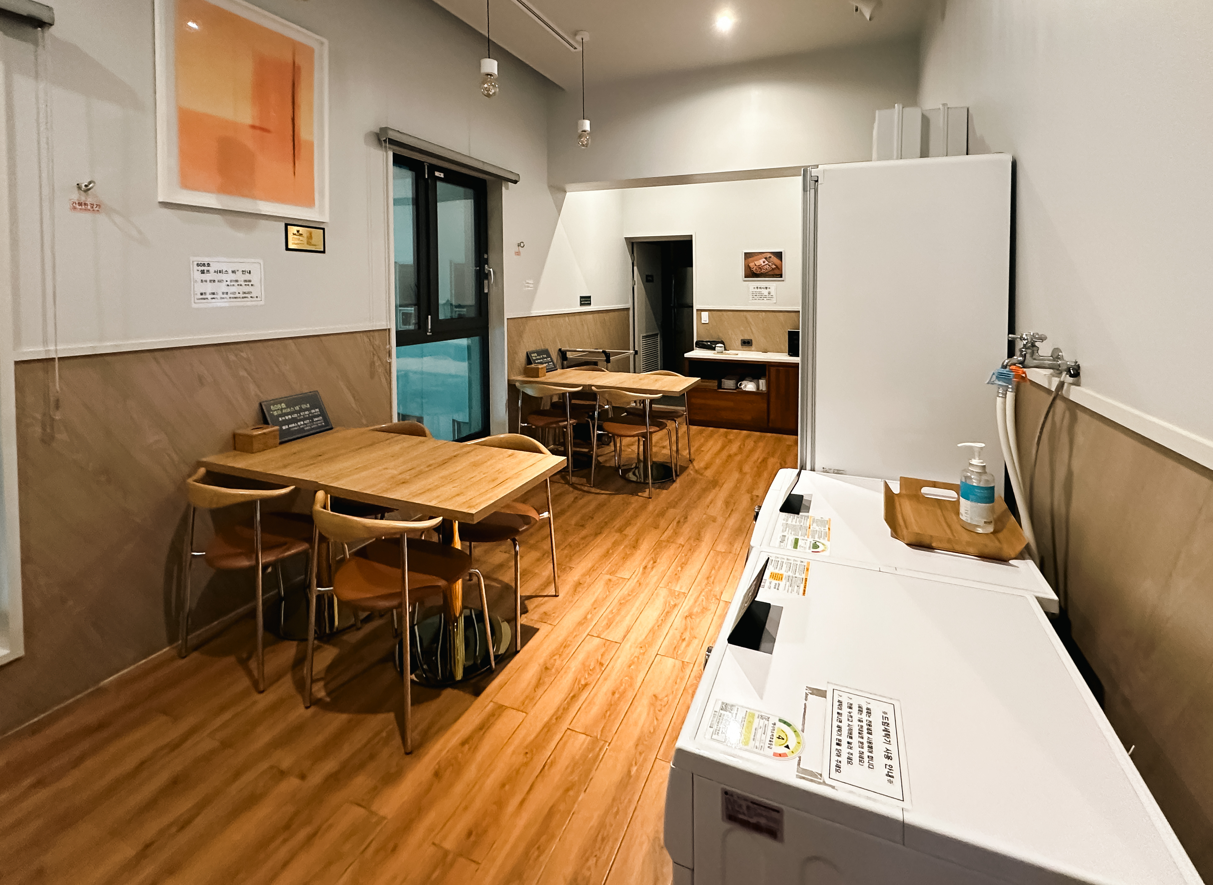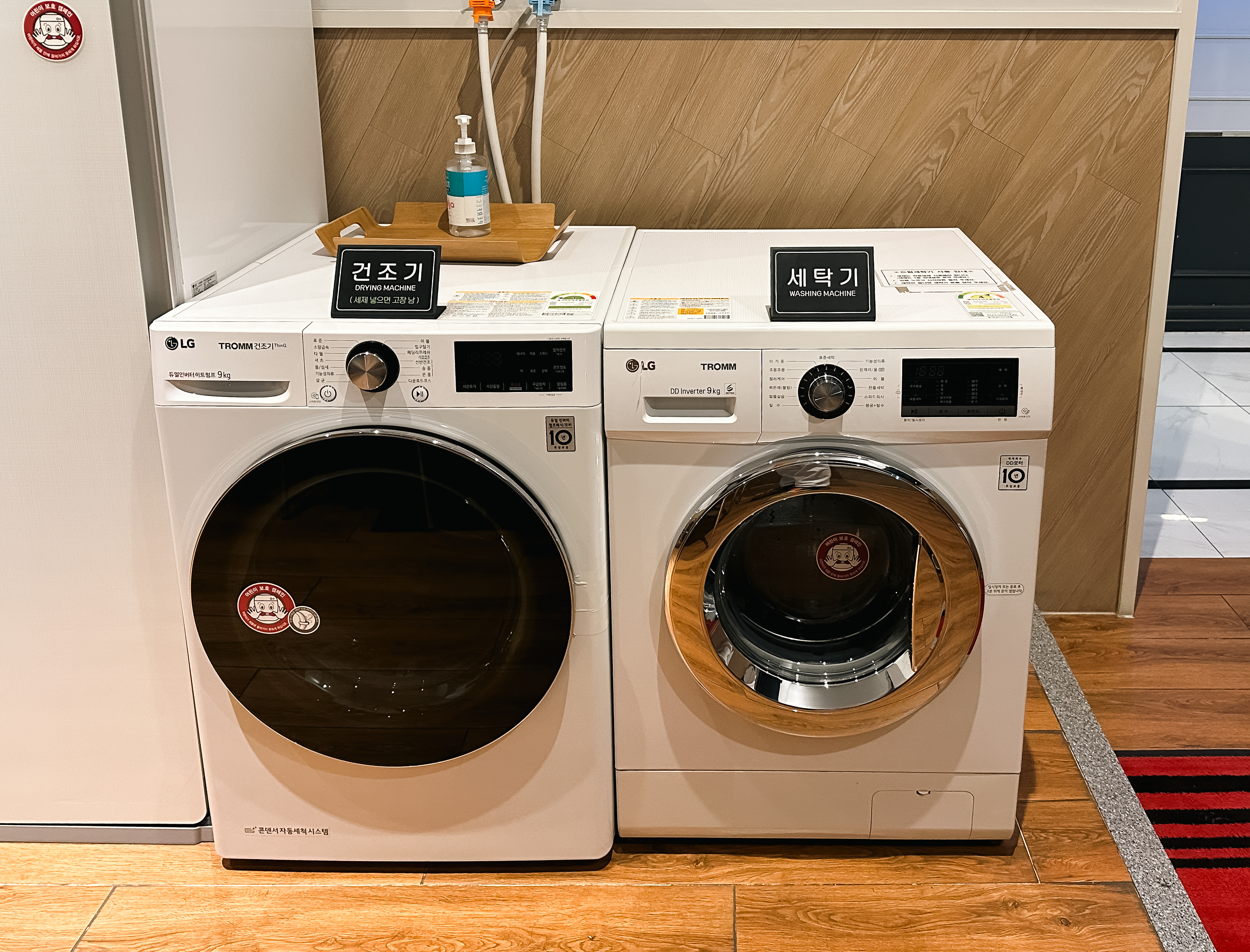 서비스 시설에는 세탁기와 건조기, 의류관리기가 있었고, 토스트와 우유, 커피 같은 간단한 조식은 07:00~09:00까지 운영되고 있다고 하는데, 저는 늦게 일어나서 이용하지는 못했습니다.
