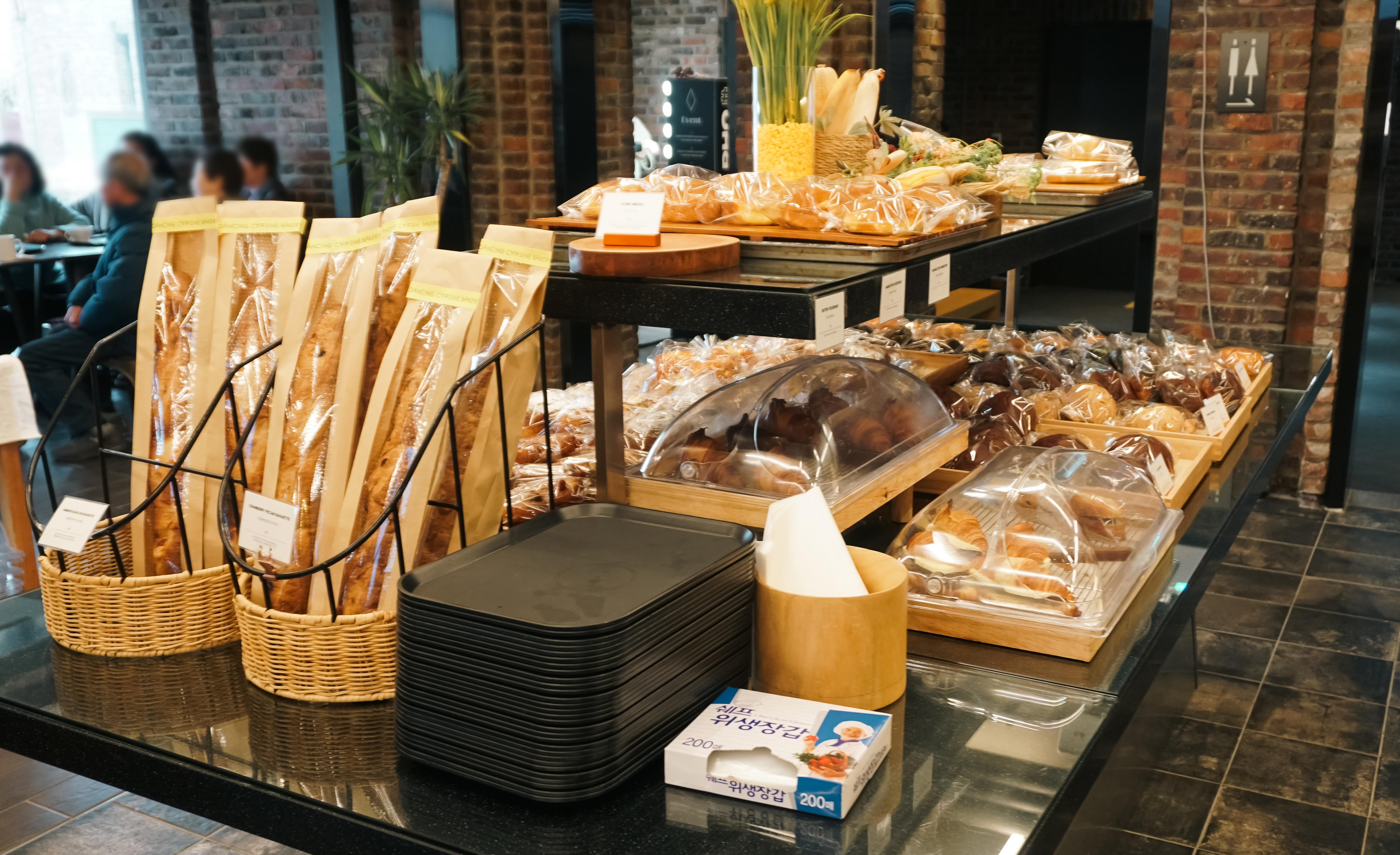 저는 아메리카노와 앙버터크루아상, 크림치즈갈릭브레드, 소금빵 등을 주문했습니다. 저는 점심을 든든하게 먹고 온 터라 빵은 어머니 간식으로 드리고 카페에선 커피만 마셨습니다. 커피를 어느 정도 마시고 인근의 공간도 둘러보았습니다.