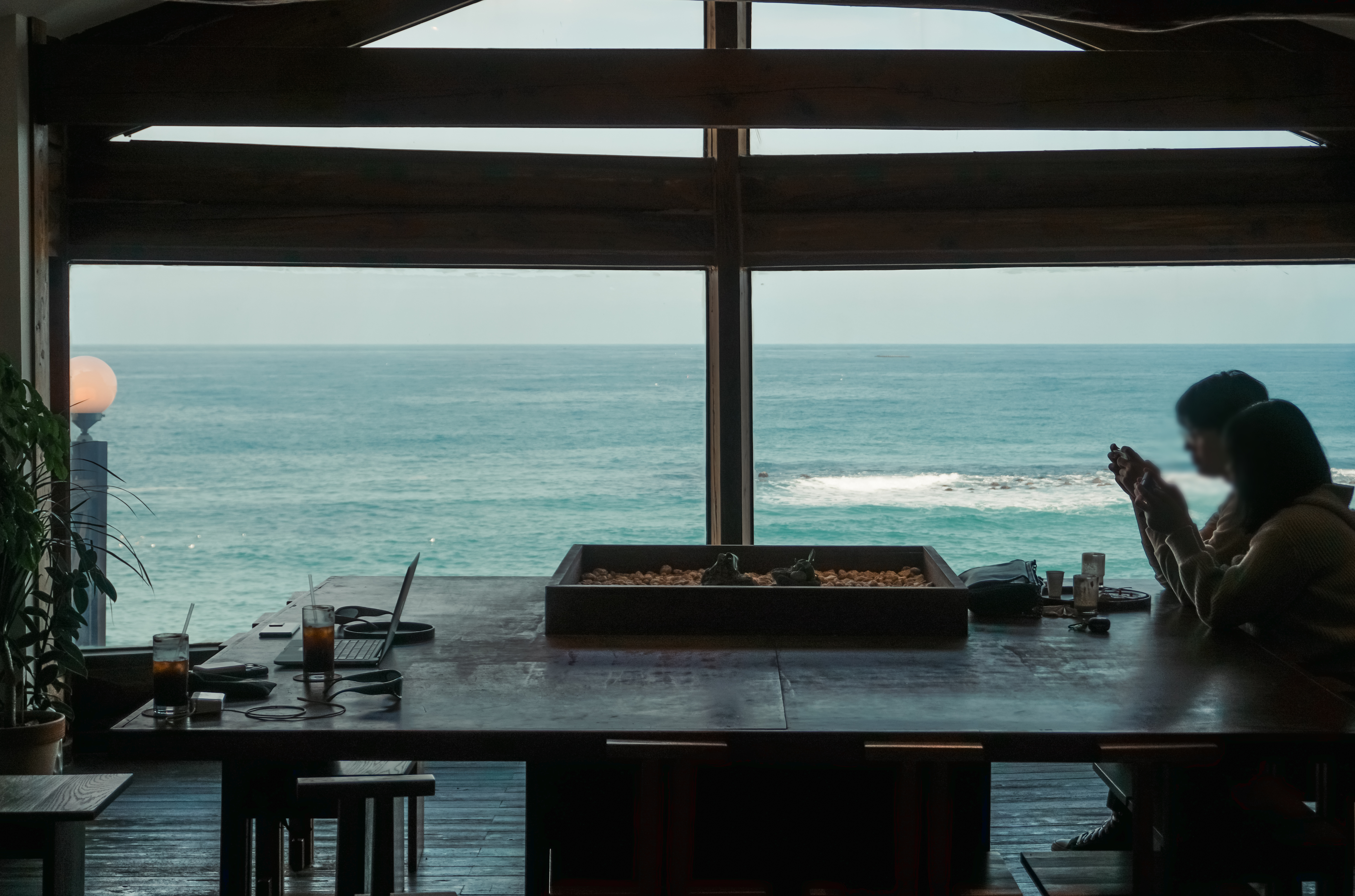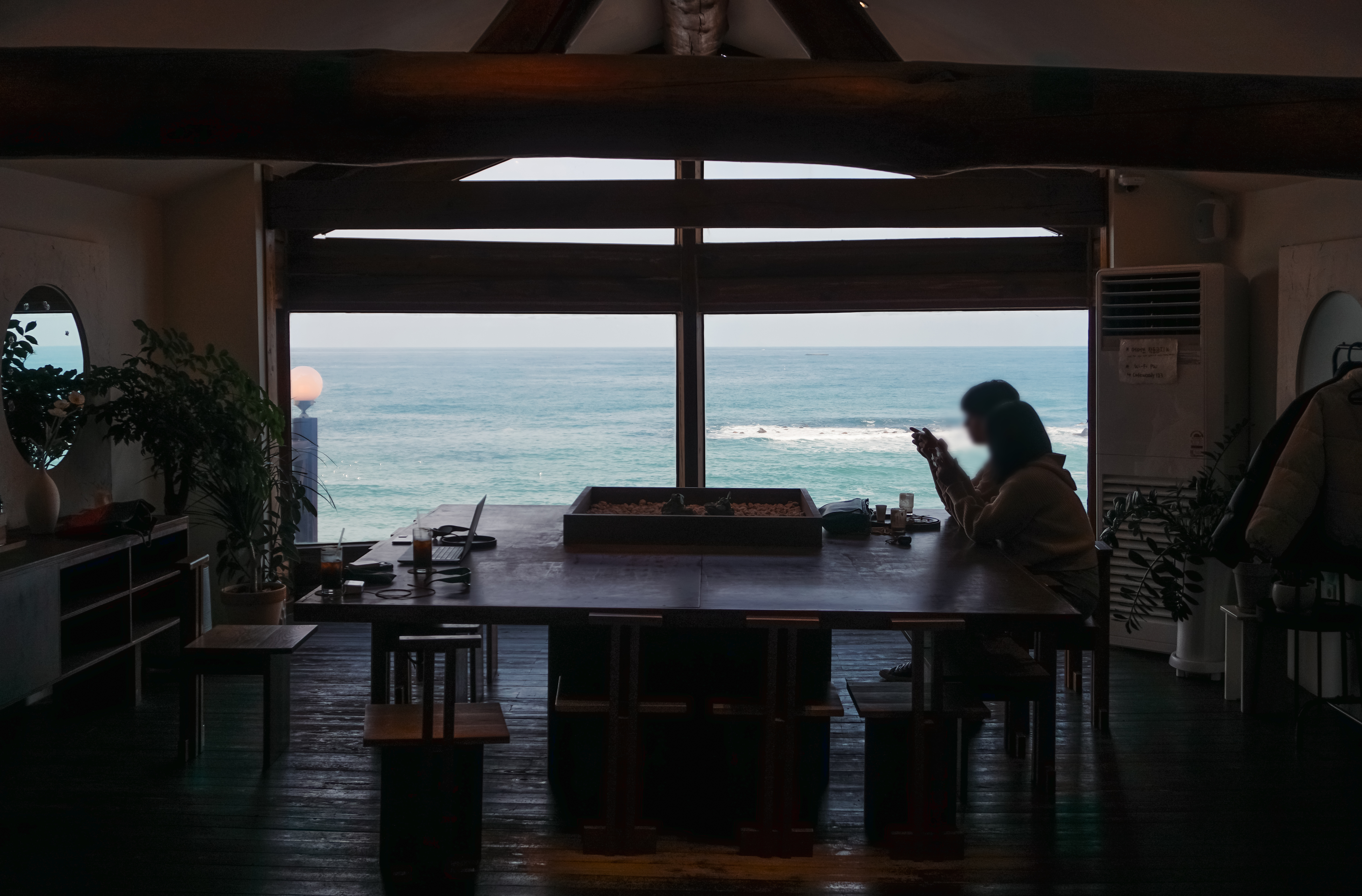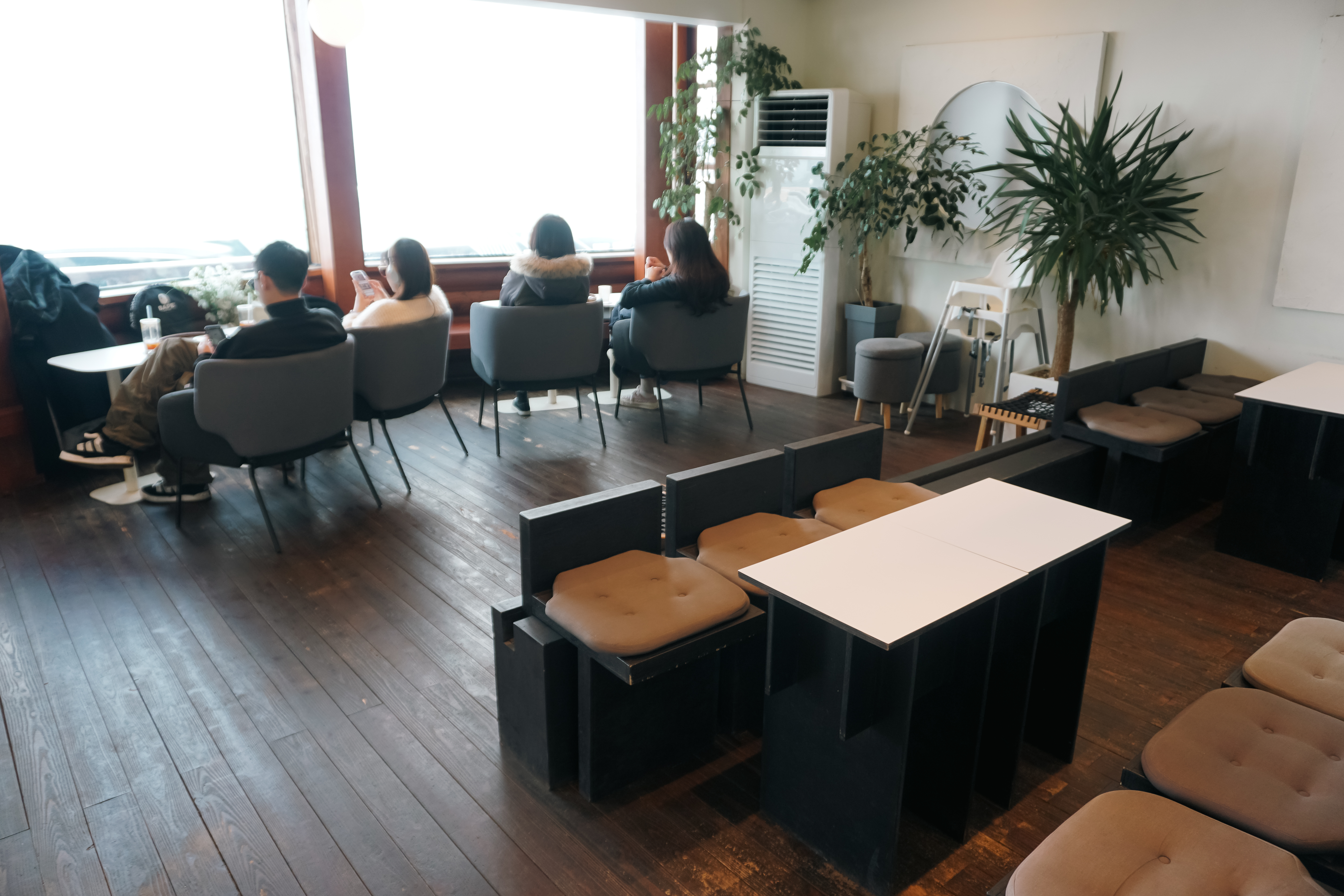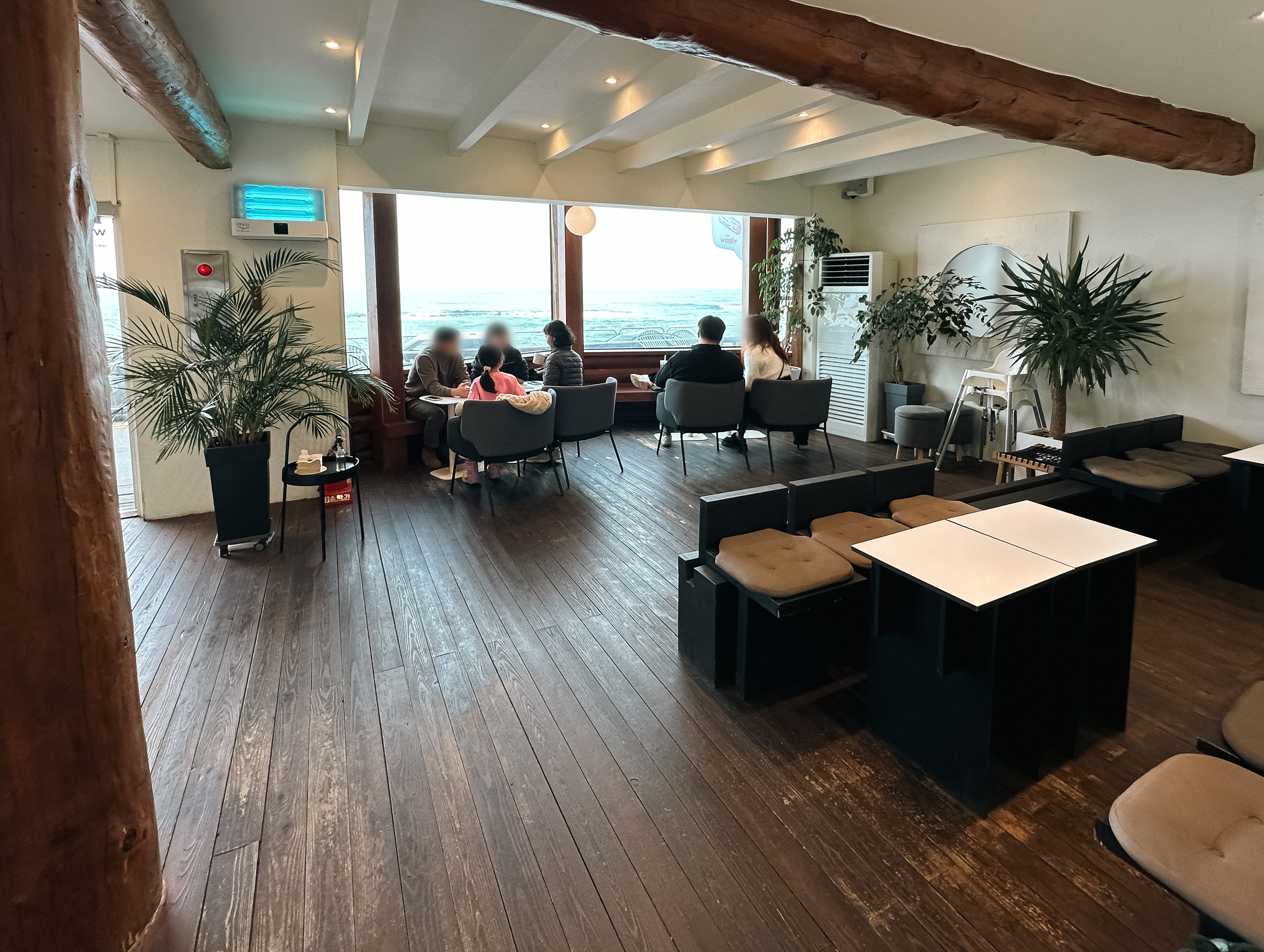 카페우디 2층은 오션뷰가 참 좋았는데, 대신에 테이블은 공용으로 사용하는 커다란 테이블로 구성되어 있었습니다. 그밖에 자리는 깔끔한 분위기가 일반적인 카페와 같았습니다.