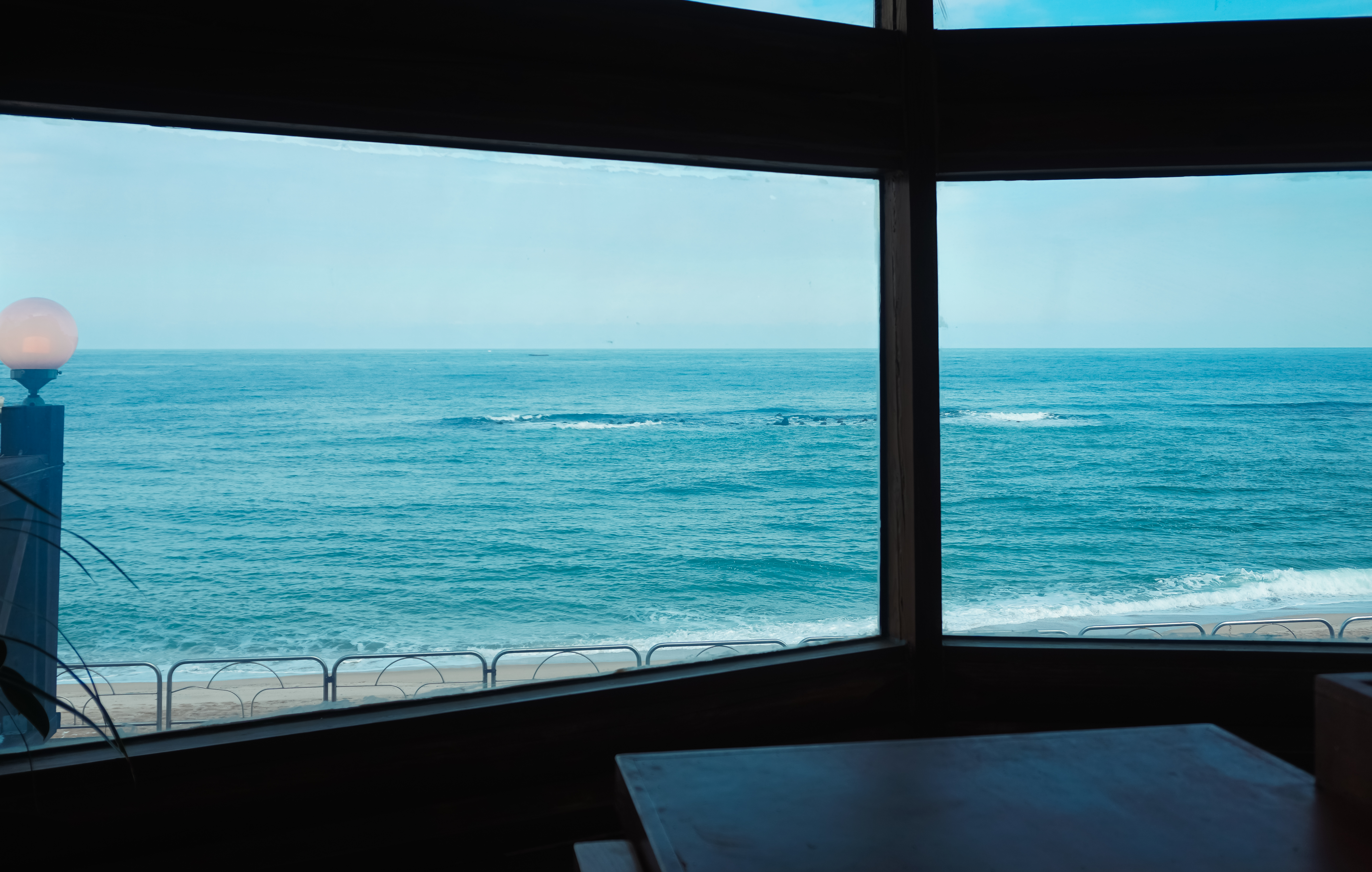 카페우디의 1층도 바다를 바라볼 수 있도록 자리가 마련되어 있었고, 2층은 높은 곳에서 통창을 통해 바다를 내려다볼 수 있어서 좋았습니다. 저희는 평일 한가한 시간에 방문해서 여유 있는 분위기에 커피를 마실 수 있었는데, 주말엔 오션뷰 때문에라도 손님들이 더 많을 것 같았습니다.