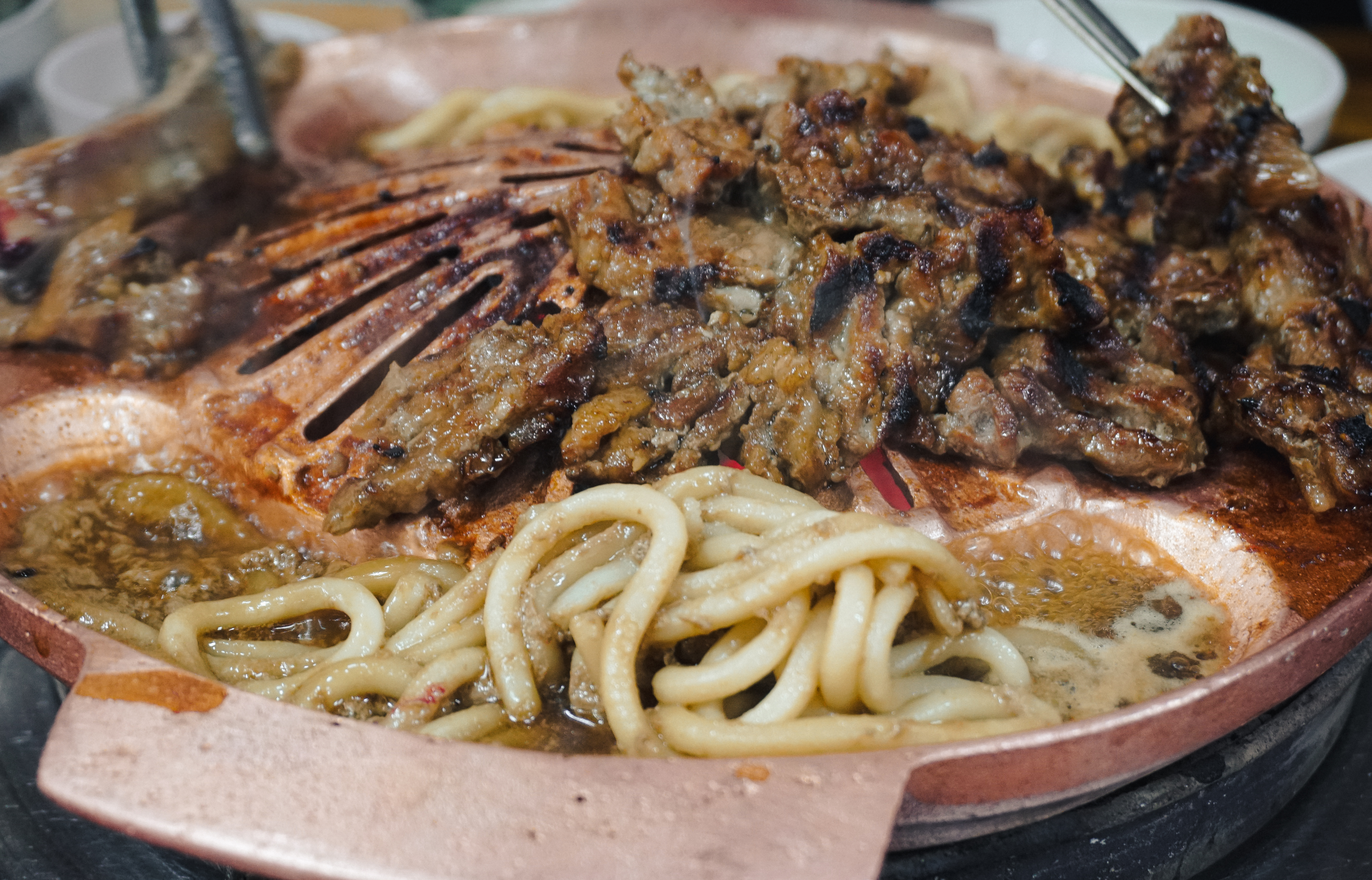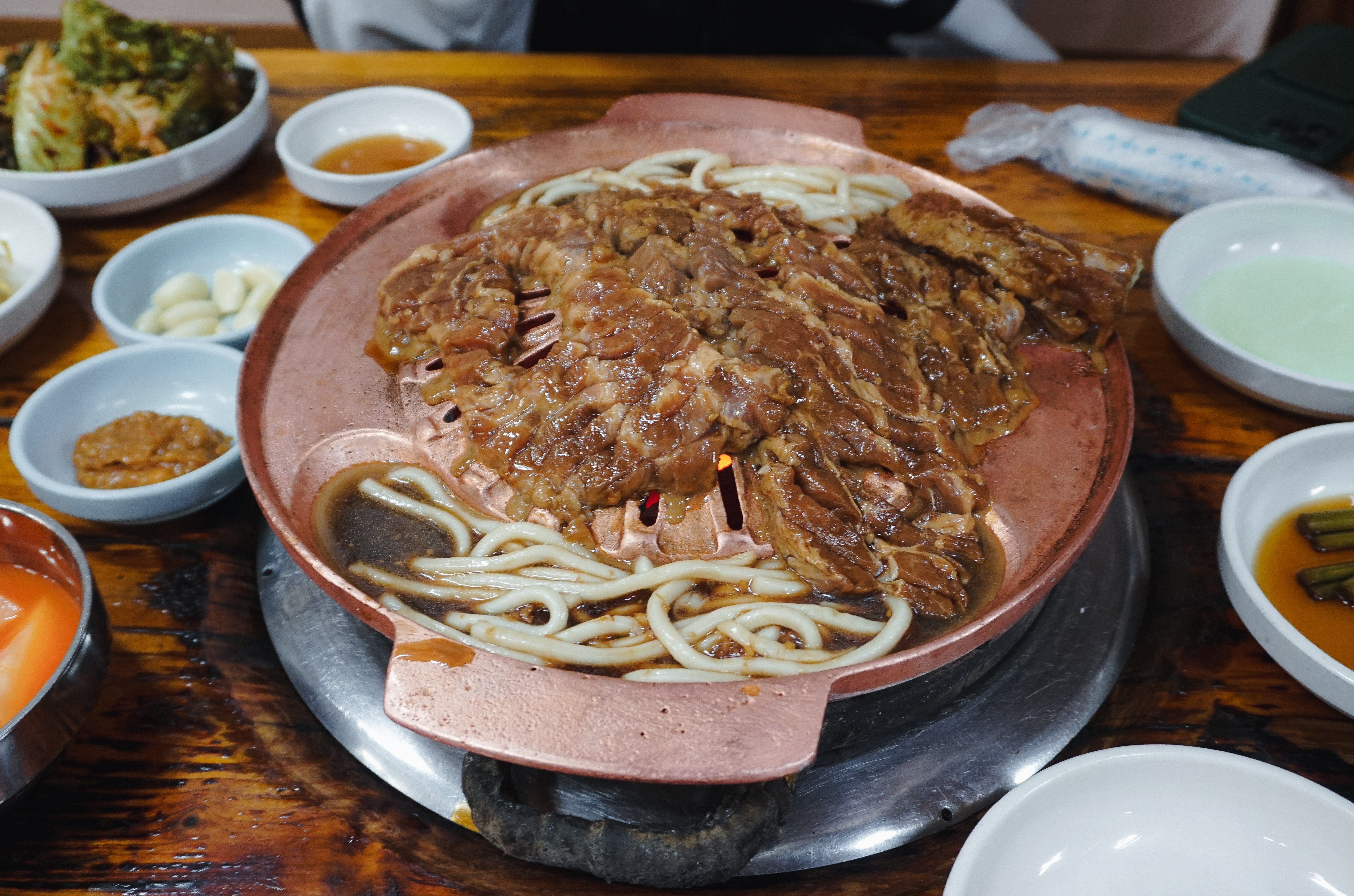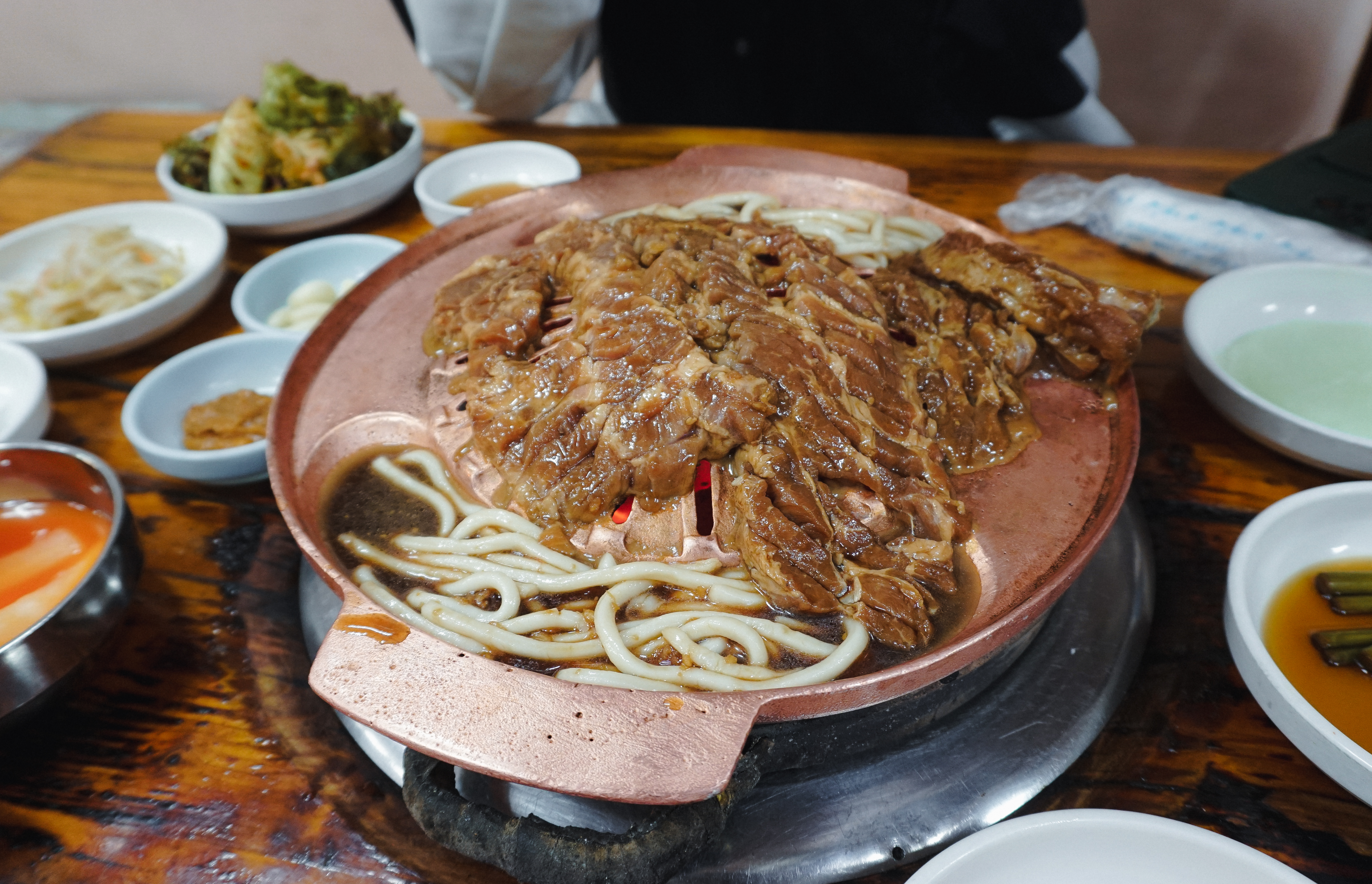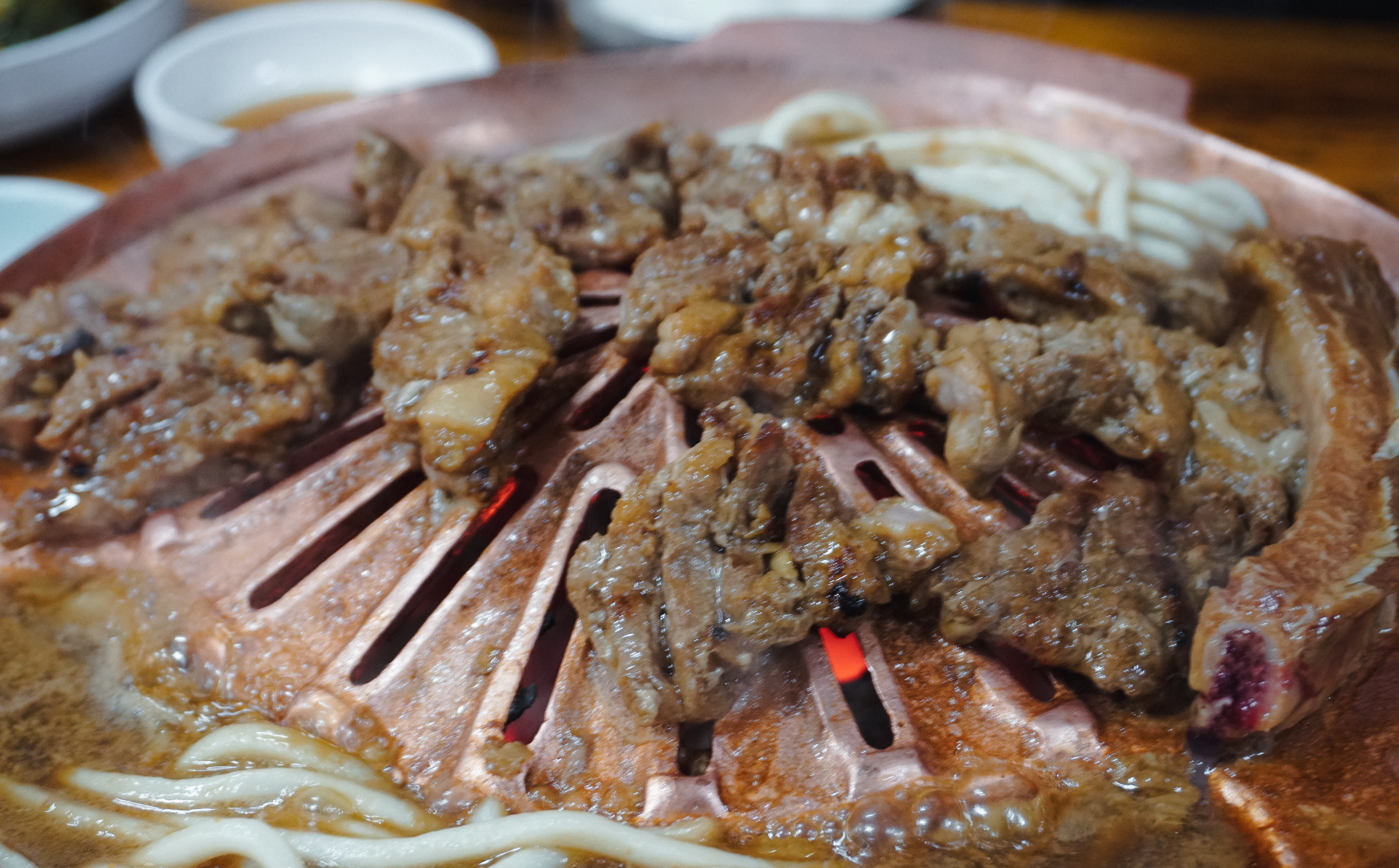 약 40년간 돼지갈비로 장사를 해 온 가게여서 그런지, 돼지갈비의 맛은 적당히 불향도 느껴지고 정말 나무랄 데 없는 맛이었고, 돼지갈비 양념에 졸여먹는 우동사리도 나름의 별미였습니다.