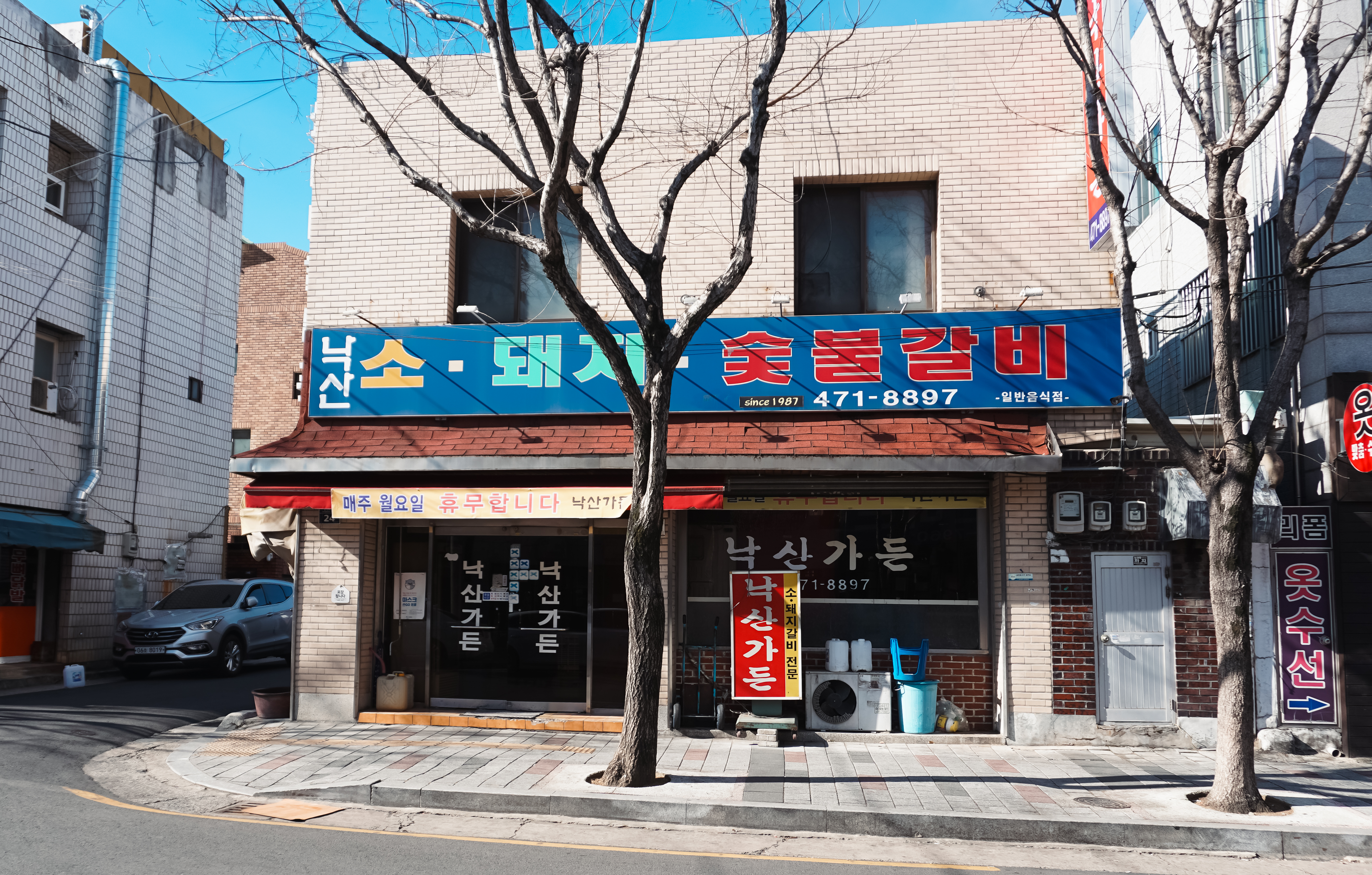 낙산가든은 대구 남구 봉덕동 557-30, 1층에 위치해 있었습니다. 주차장은 딱히 없었는데, 가게 건너편에 주차구역이 있더라고요. 이곳은 매주 월요일 휴무라고 하며, 영업시간은 11:30~22:00 까지였습니다.
