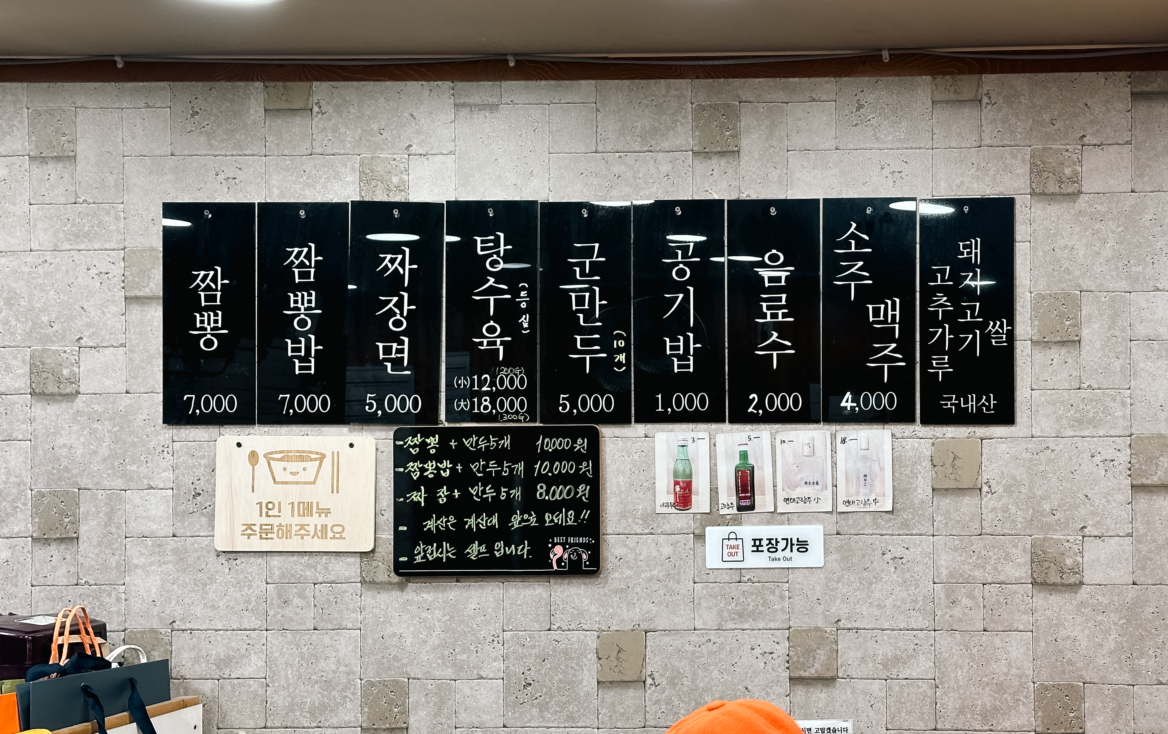 홍대교동짬뽕의 메뉴는 짬뽕, 짬뽕밥, 짜장면, 탕수육, 군만두, 공기밥을 판매하고 있었습니다. 혼자서 식사하시는 분들을 위한 만두를 포함한 세트구성도 판매하고 있었습니다. 참고로 이곳의 돼지고기, 고춧가루, 쌀은 국내산을 사용하고 있다고 합니다.
