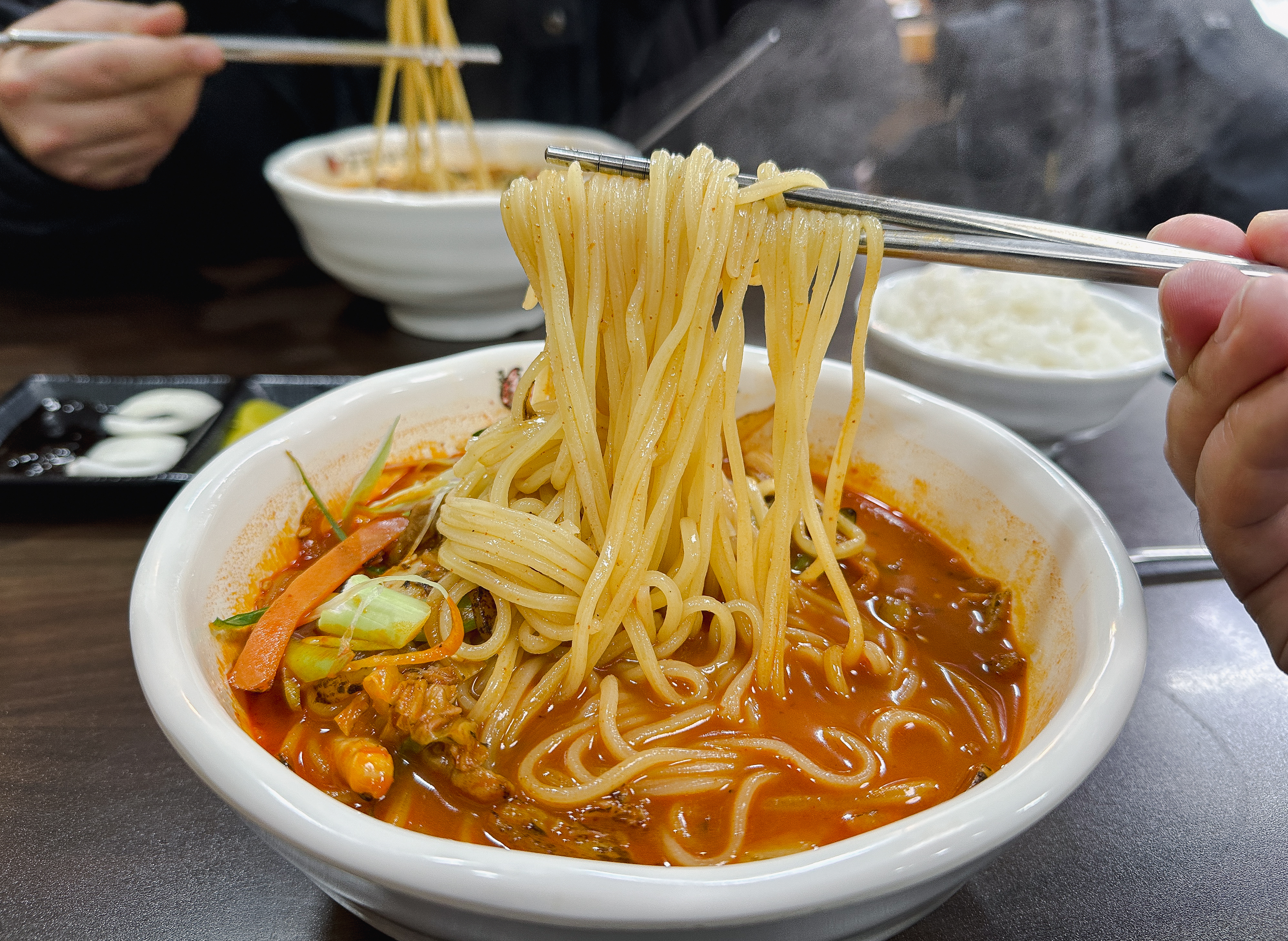 문래동 홍대교동짬뽕의 면은 탄력이 있어서 식감이 특이했고, 국물도 진해서 맛있었습니다. 돼지고기와 오징어, 위소라가 들어가 있어 해산물의 시원한 국물도 느껴지는 짬뽕이었고, 가격이 7,000원으로 크게 부담은 없었습니다. 관심 있는 분은 한 번 이용해 보셔도 좋을 것 같습니다.