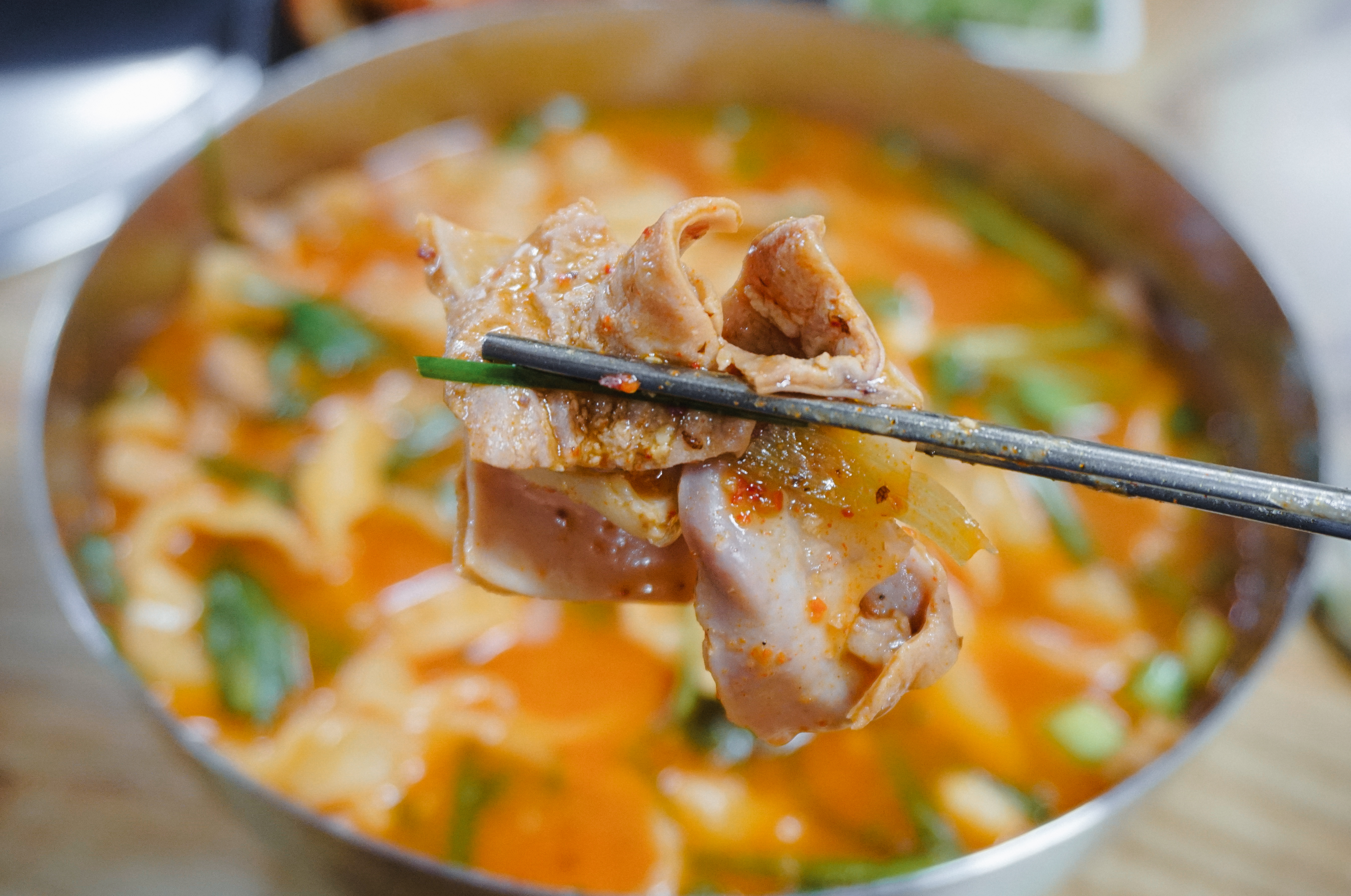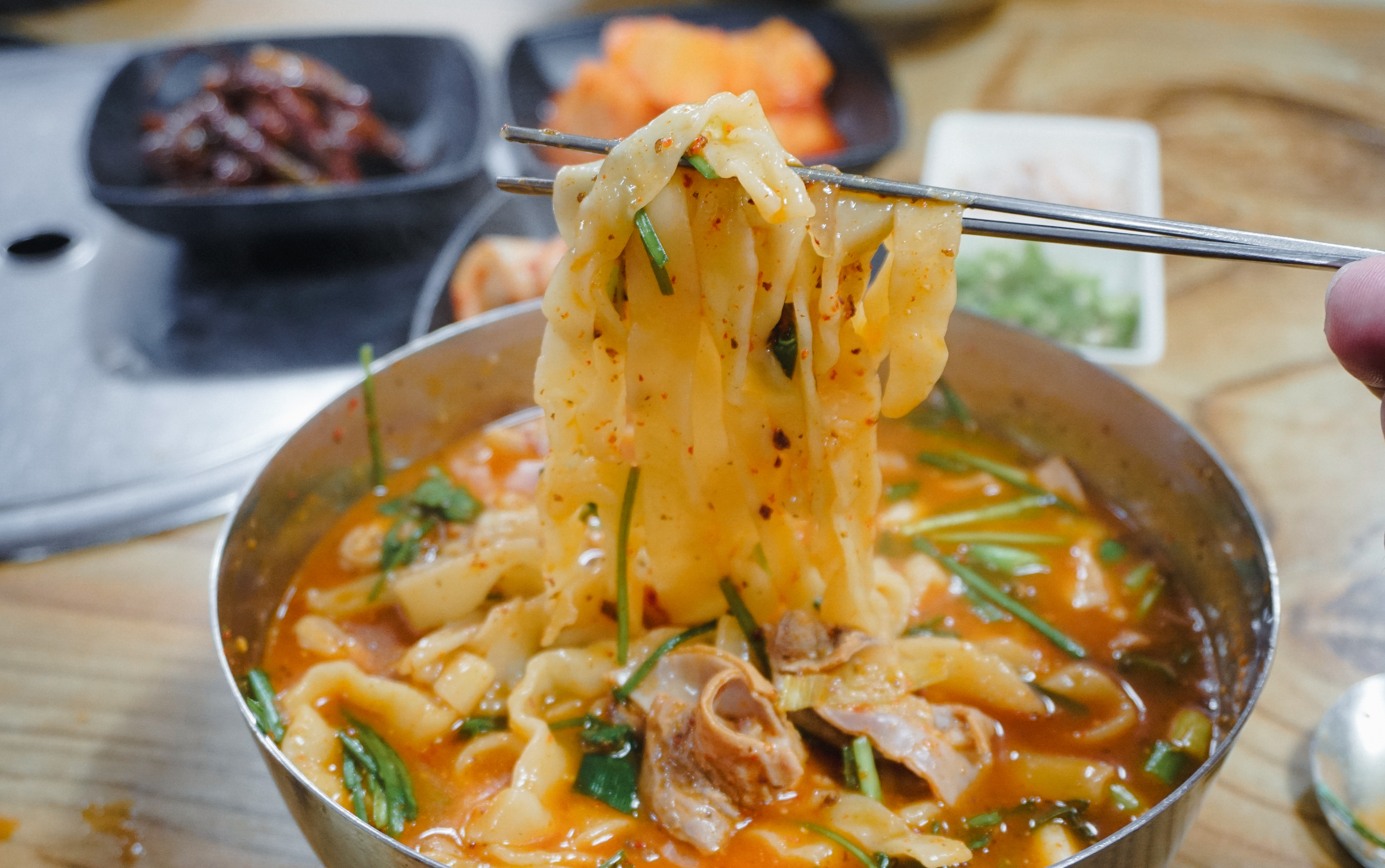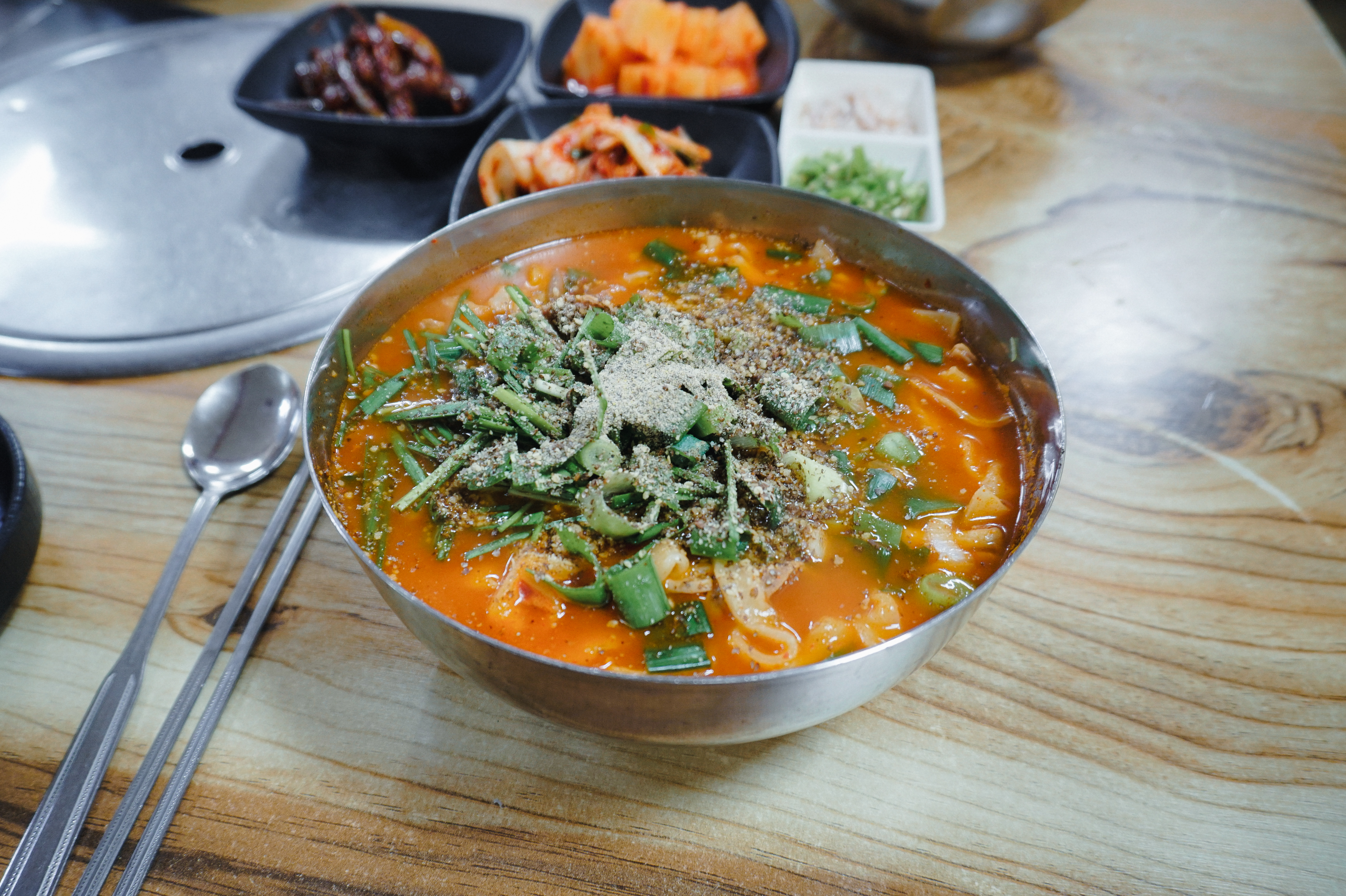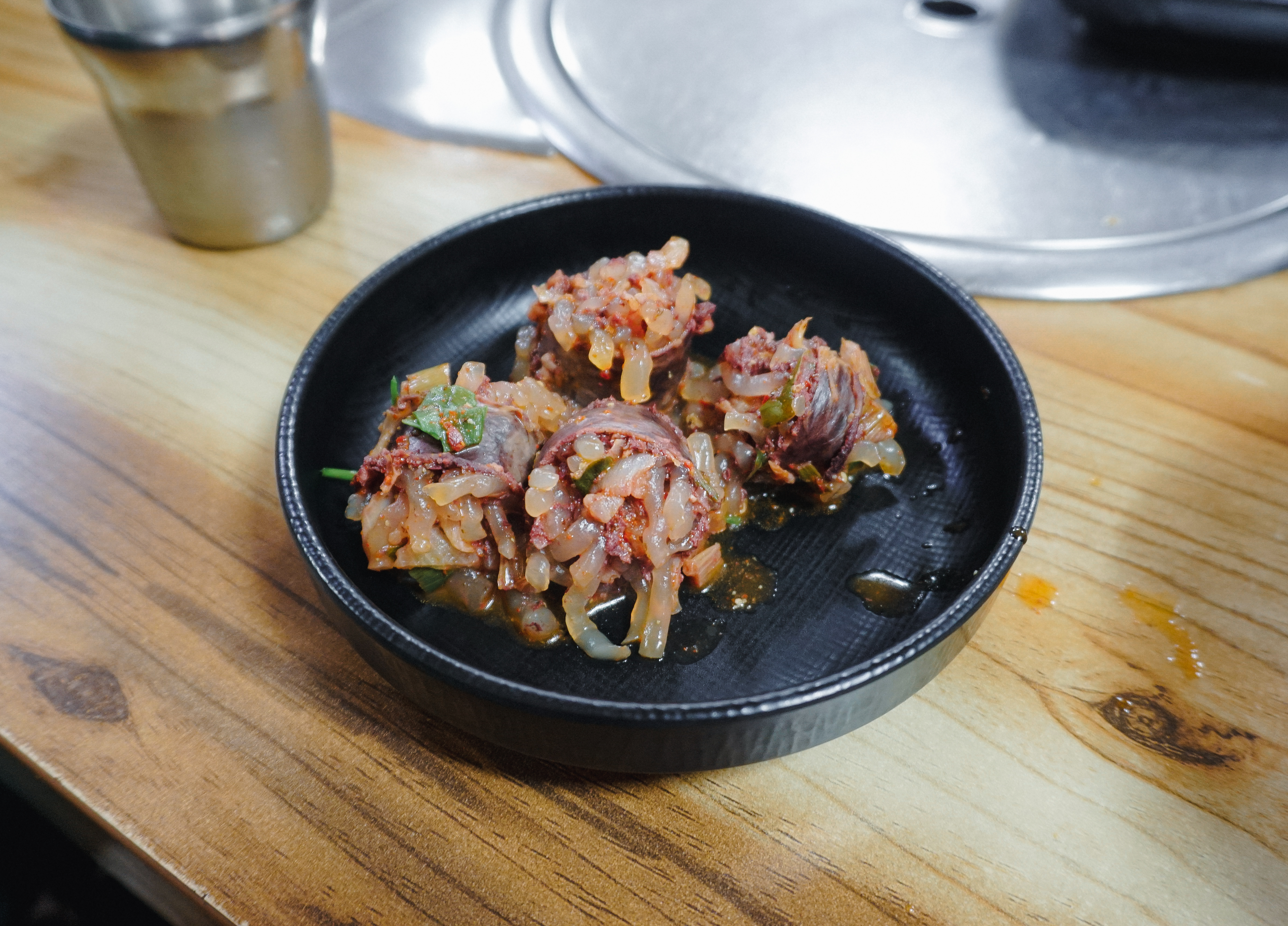 저는 순대를 먹지 않아서 그릇에 덜어내고 곱창칼국수만 먹었습니다. 팔복순대의 곱창칼국수는 곱창전골을 먹는 것처럼 얼큰한 국물이 좋았고, 칼국수의 면발도 쫄깃탱글한 식감이 좋았습니다. 다른 곳에도 곱창칼국수를 더러 파는 곳이 있는 걸로 보이는데, 이렇게 전문적으로 곱창칼국수의 맛을 낸 곳은 아마 소개해드리는 팔복순대가 유일하지 않을까 생각합니다.
