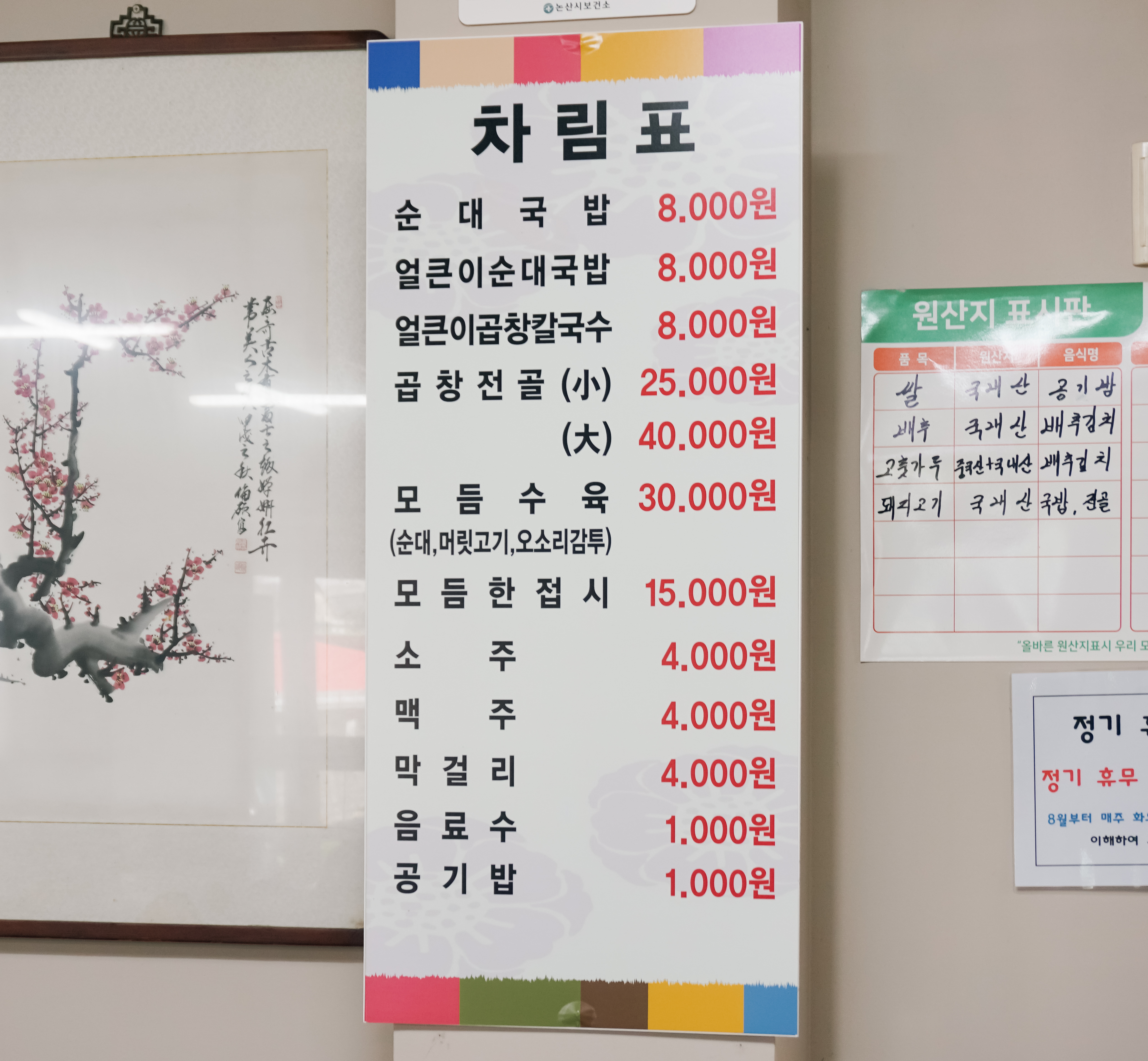 논산 팔복순대는 한적한 시골마을에 위치한 순댓국집인데도 유명해서 그런지 손님들이 많이 찾고 있었는데, 과연 곱창칼국수란 어떤 메뉴인지 그리고 어떤 맛인지 본문을 통해 자세히 알아보겠습니다.