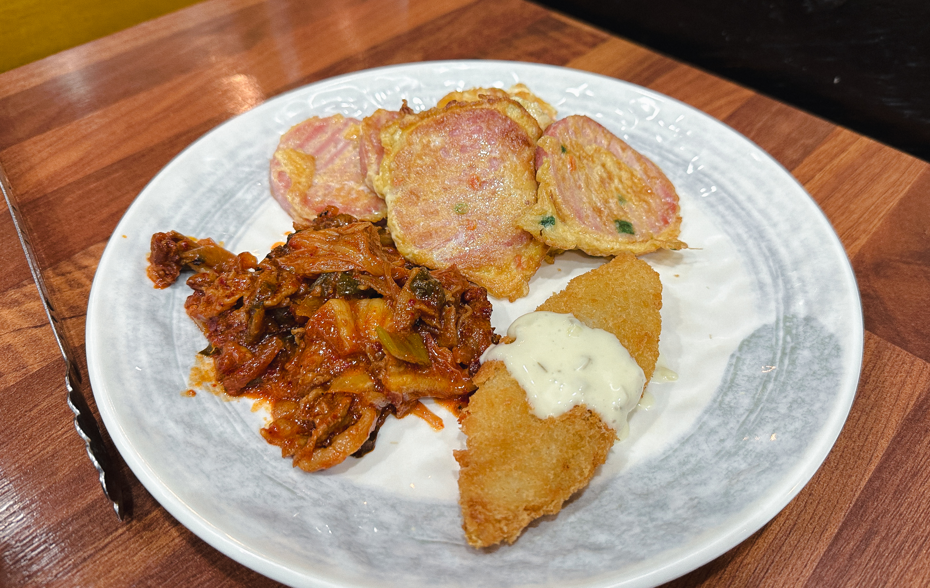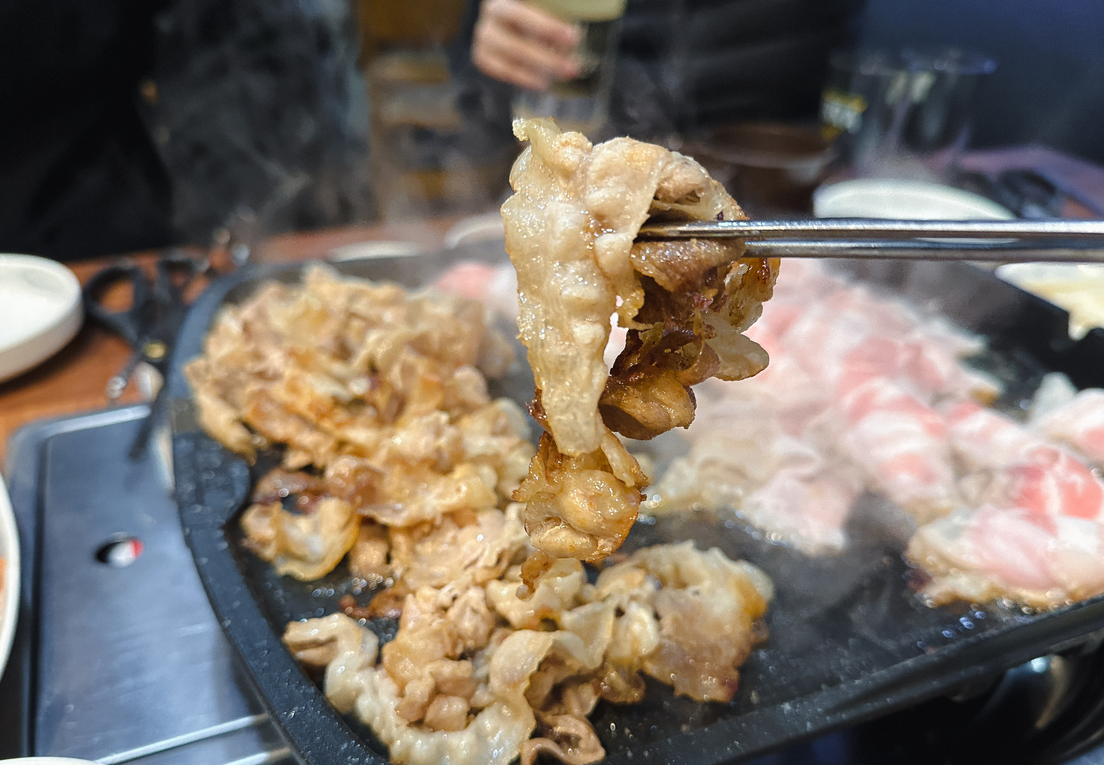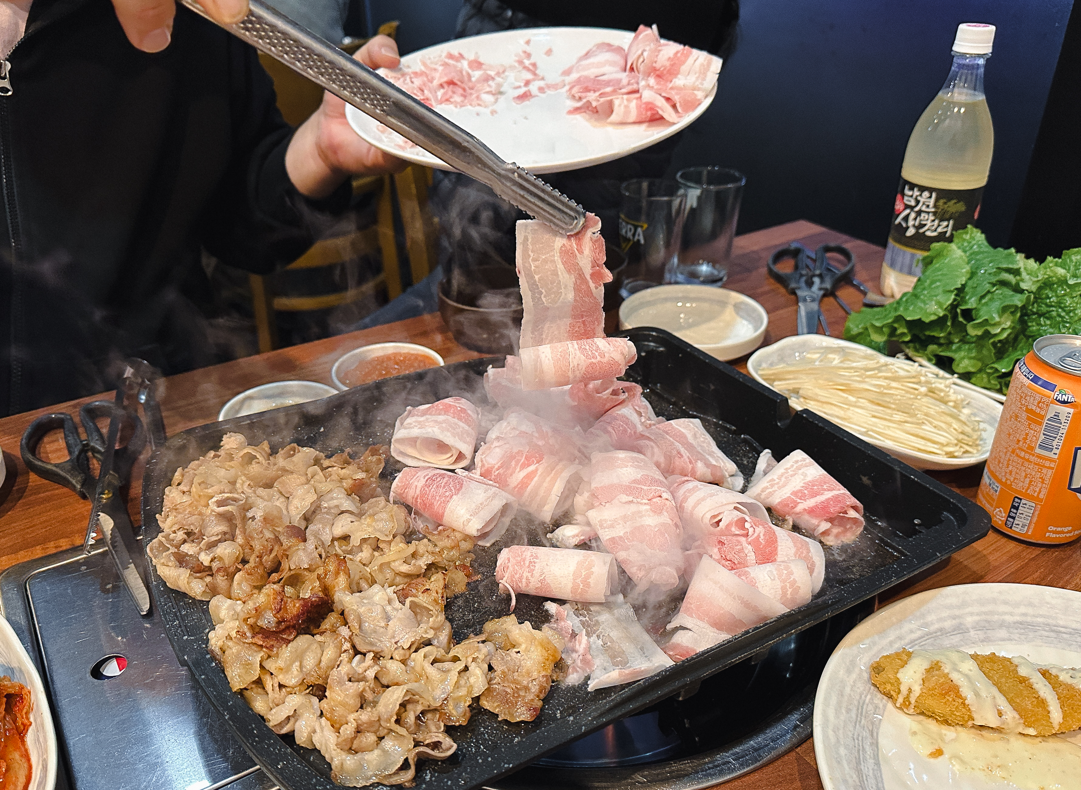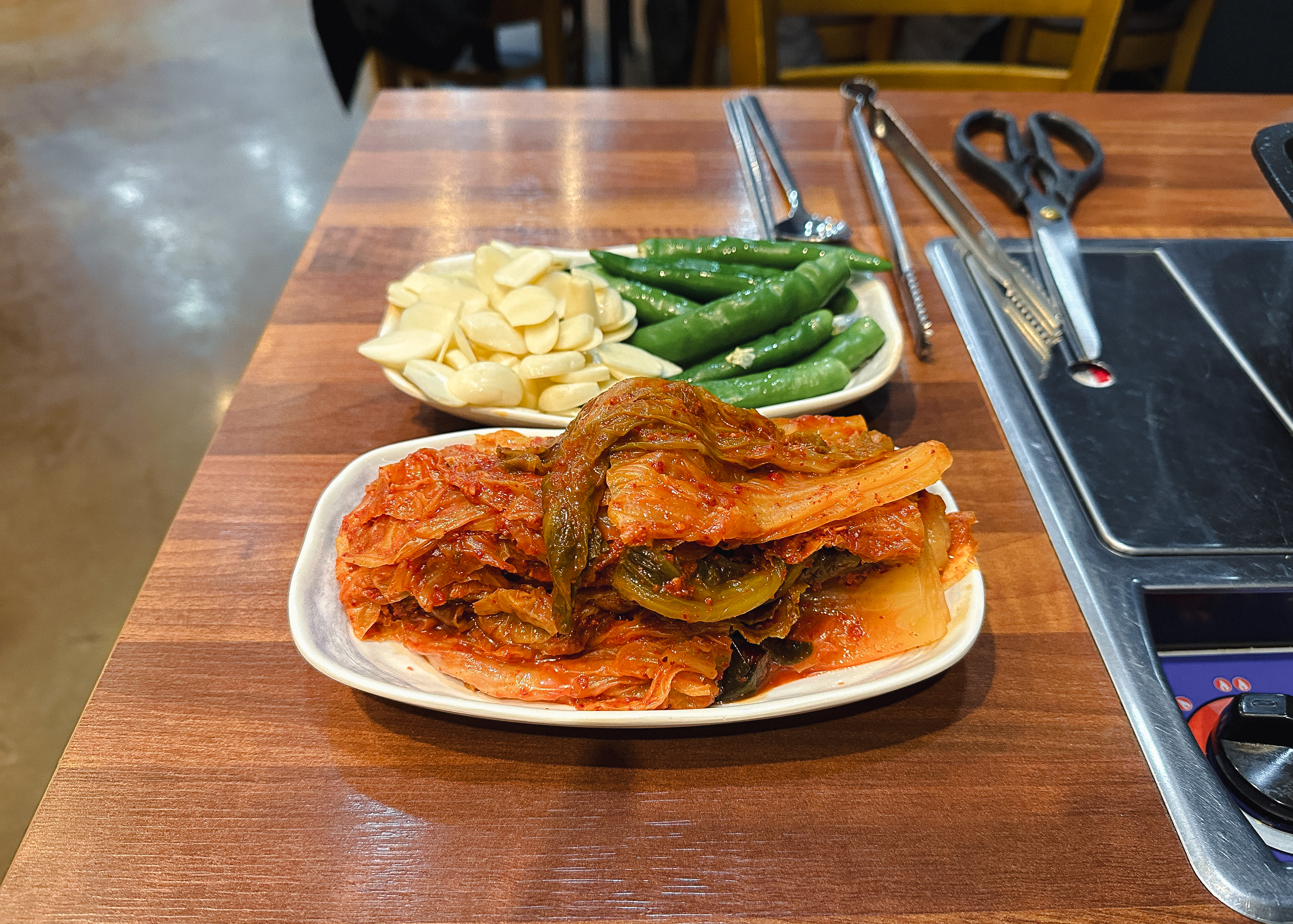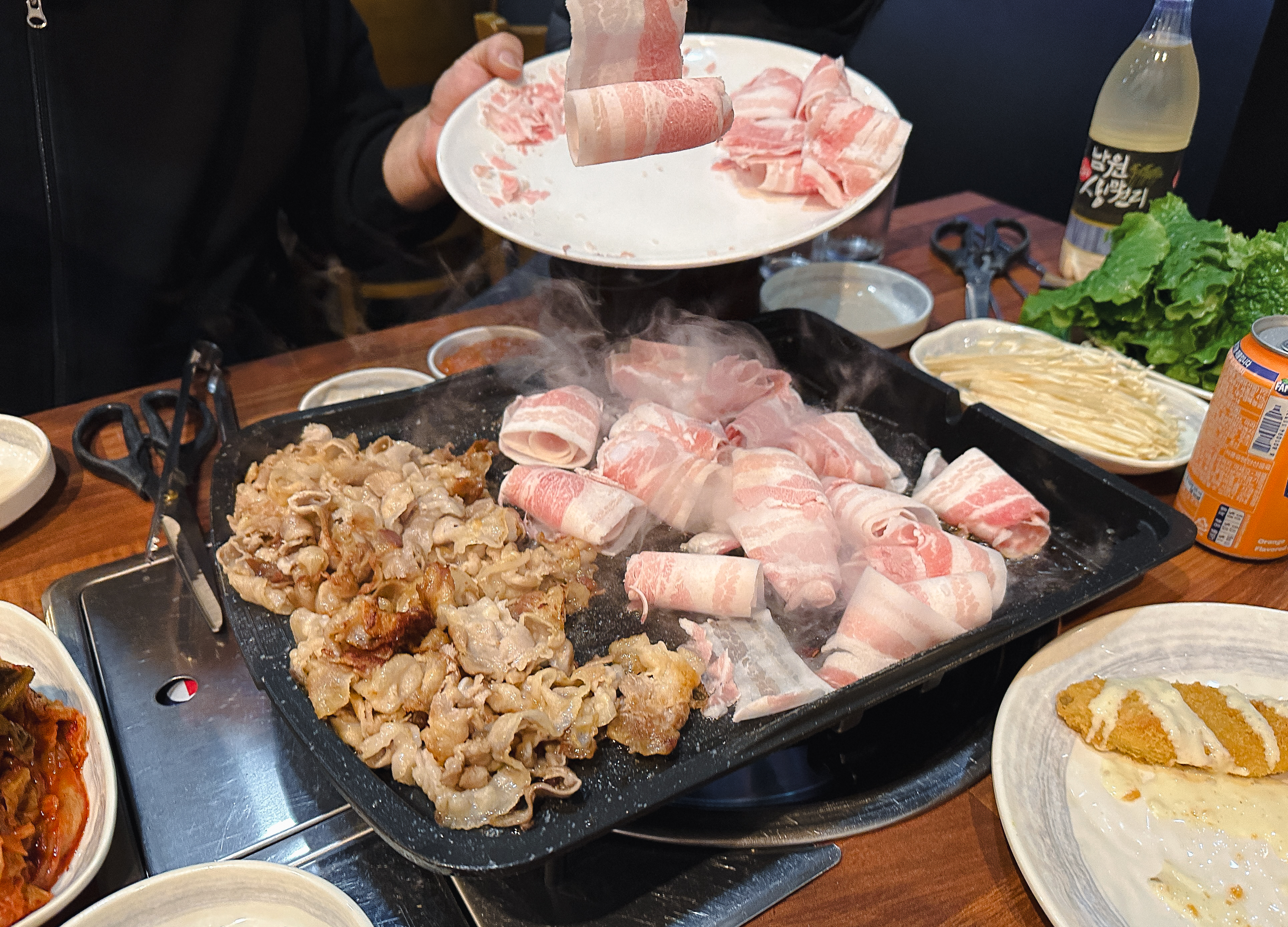 대패삼겹살은 얇아서 그런지 금세 익었고, 파절이나 묵은지와 함께 먹으면 맛있게 먹을 수 있었습니다. 상추와 고추, 마늘 등도 원하는 만큼 직접 담아와 먹었습니다.