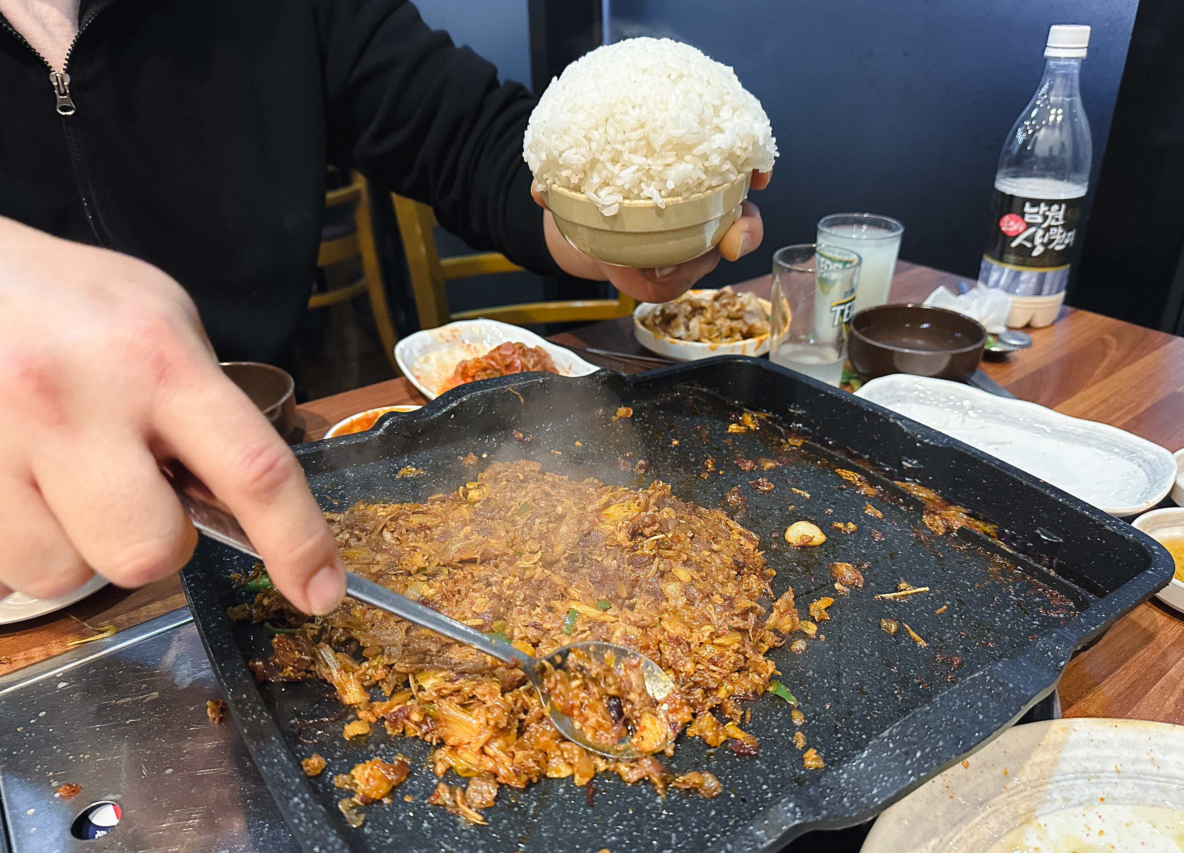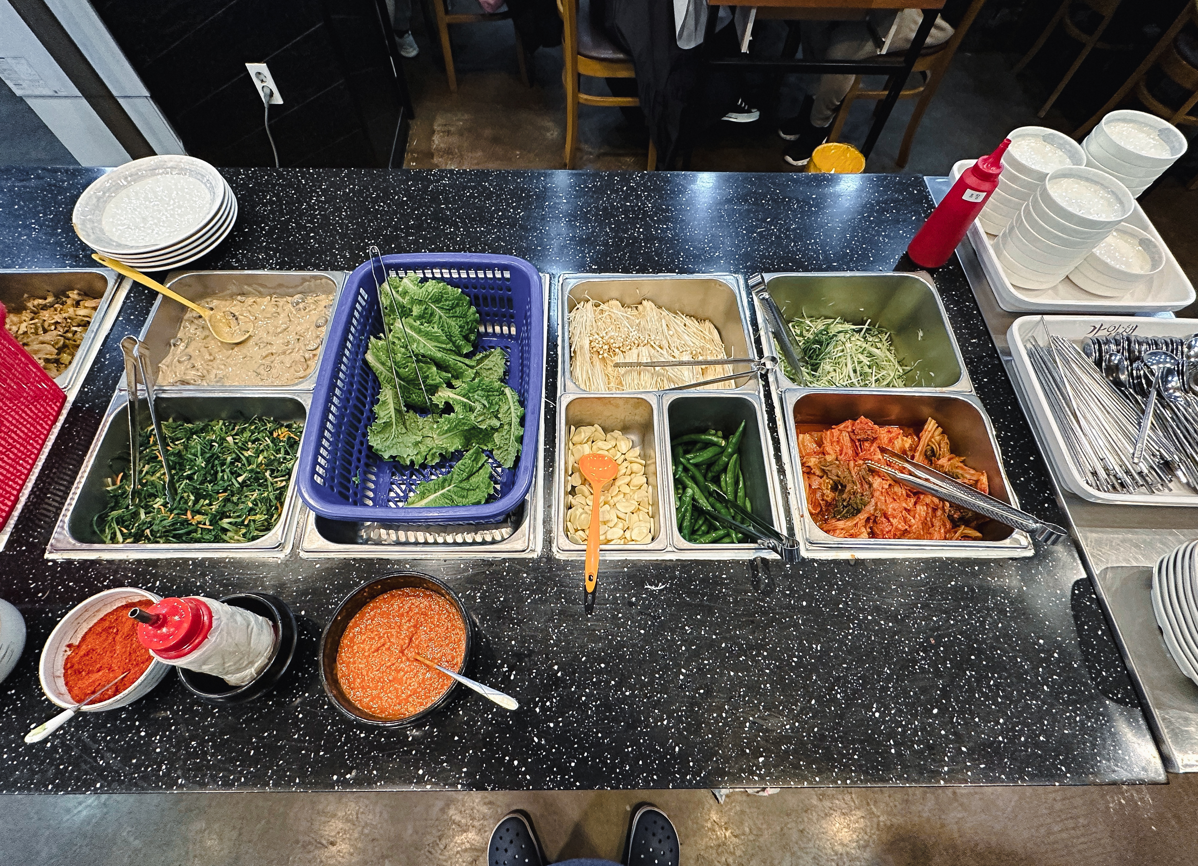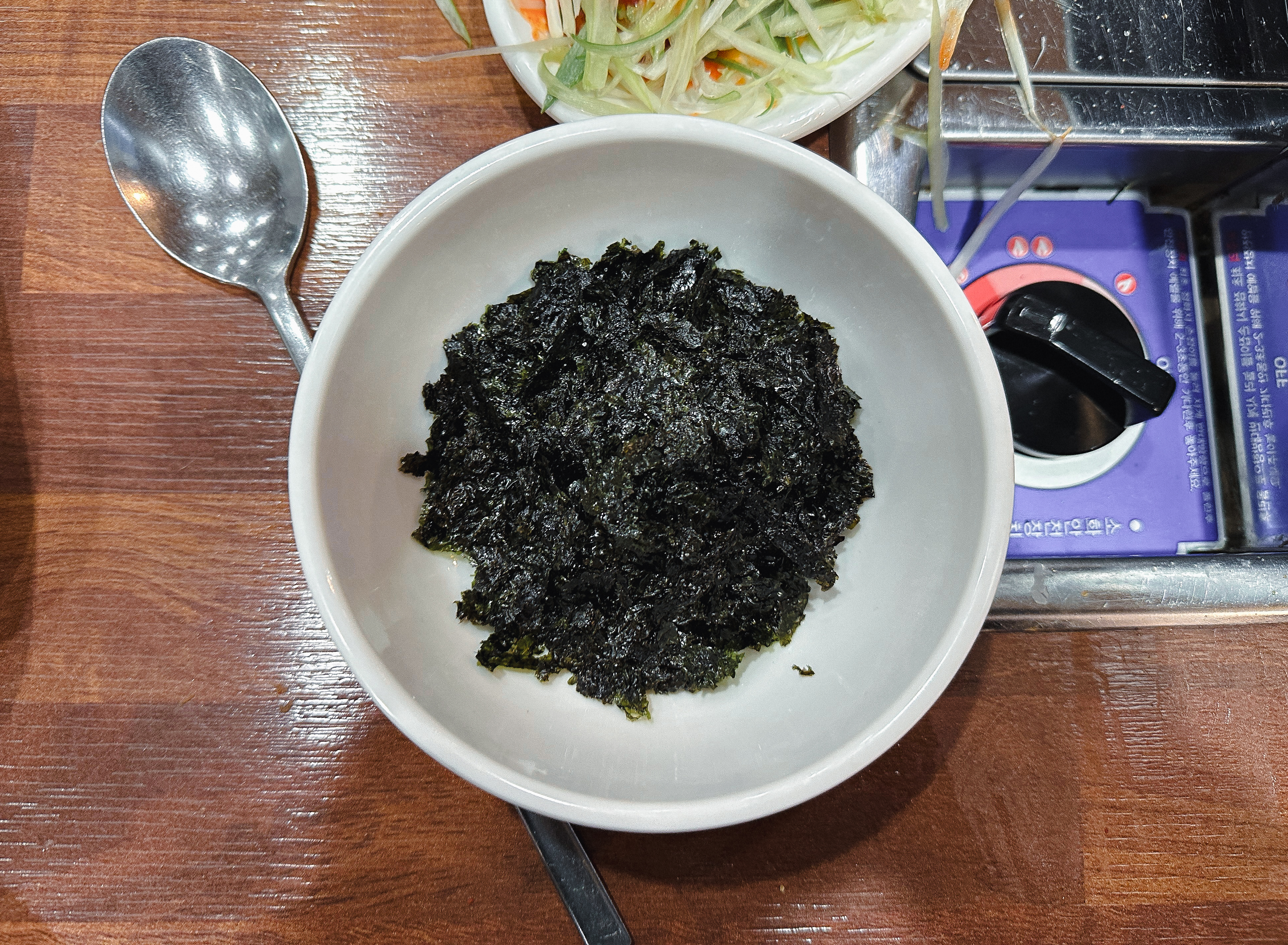 전주 영아네밥상에는 고기를 어느 정도 먹은 뒤 밥을 볶아먹을 수 있도록 김가루와 고추장 등이 마련되어 있었습니다. 이때 그냥 먹기에 좀 아쉬우면 반찬을 가져다 먹으면 되었습니다. 1인 11,900원이면, 가격도 꽤 괜찮았고, 가성비 있게 다양한 반찬과 함께 고기를 배불리 먹을 수 있어서 참 좋았습니다.