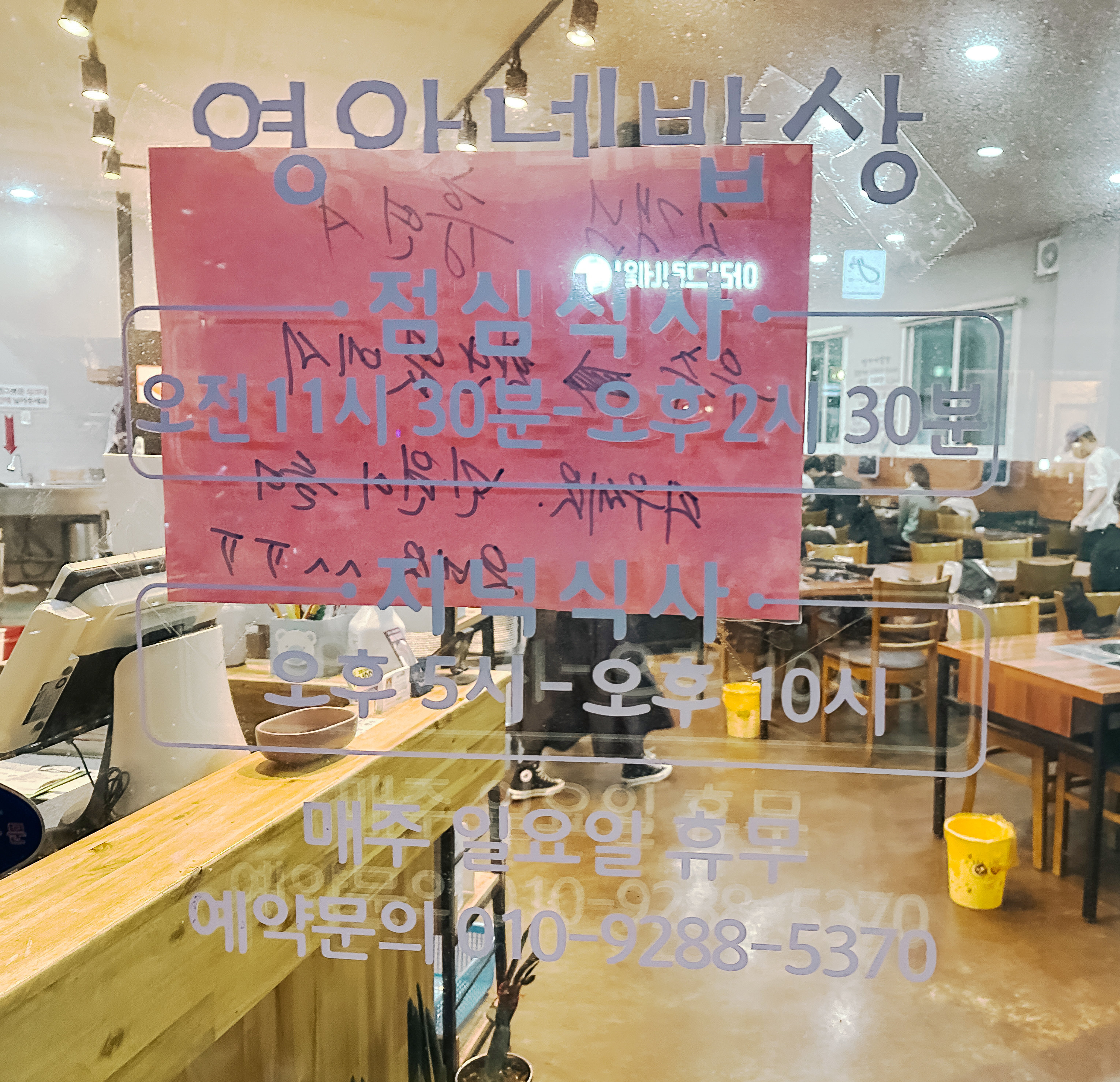 전주 영아네밥상의 가격은 점심식사 1인 8,000원, 저녁식사 11,900원, 1인식사는 13,900원에 식사할 수 있었습니다. 브레이크타임은 14:30~17:00 까지였습니다.