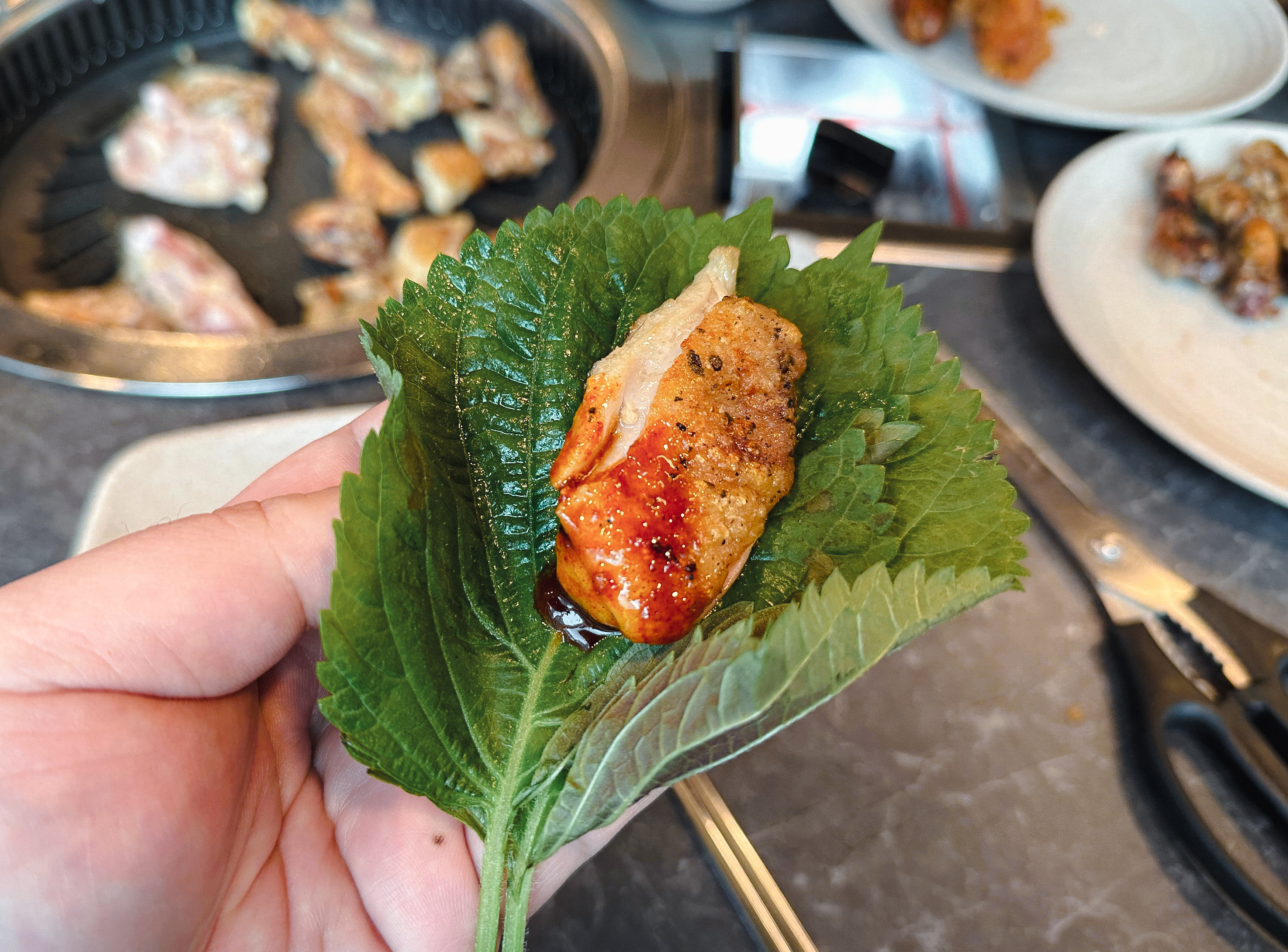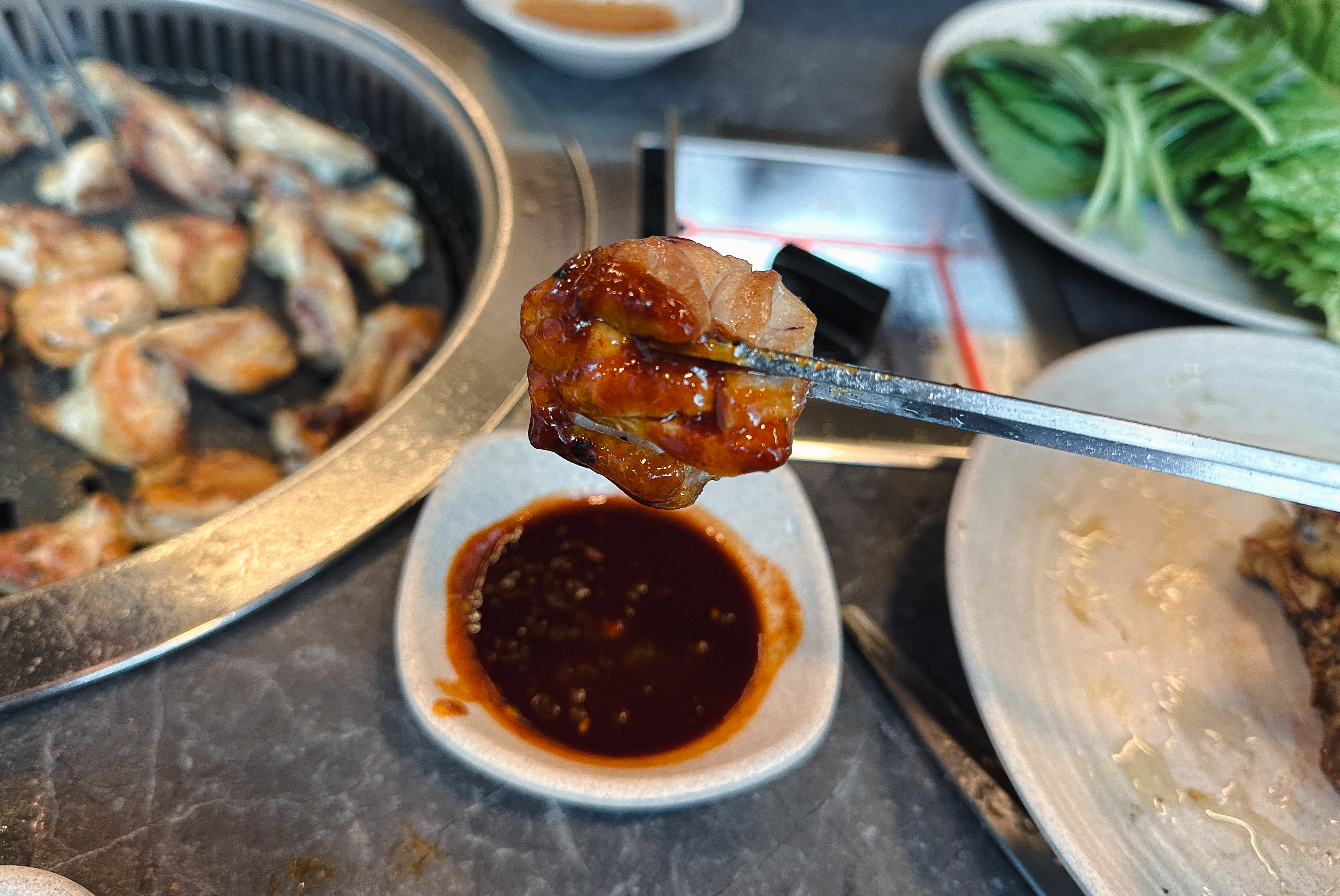 저는 사계진미에 방문하면 '담백하계'라는 소금구이 닭갈비를 주로 즐겨 먹는데, 소금과 후추로만 간을 한 닭갈비는 많이 먹어도 질리지 않는 것 같습니다. 매콤한 양념장과 같이 곁들여 먹어도 좋았고, 쌈채소에 싸서 먹어도 맛있었습니다. 원래는 같이 간 일행이랑 치킨을 먹을까 하다가 치킨 2마리 가격이면 이곳에서 먹겠다 싶어서 방문했는데, 같이 간 지인도 맛있게 먹더라고요.