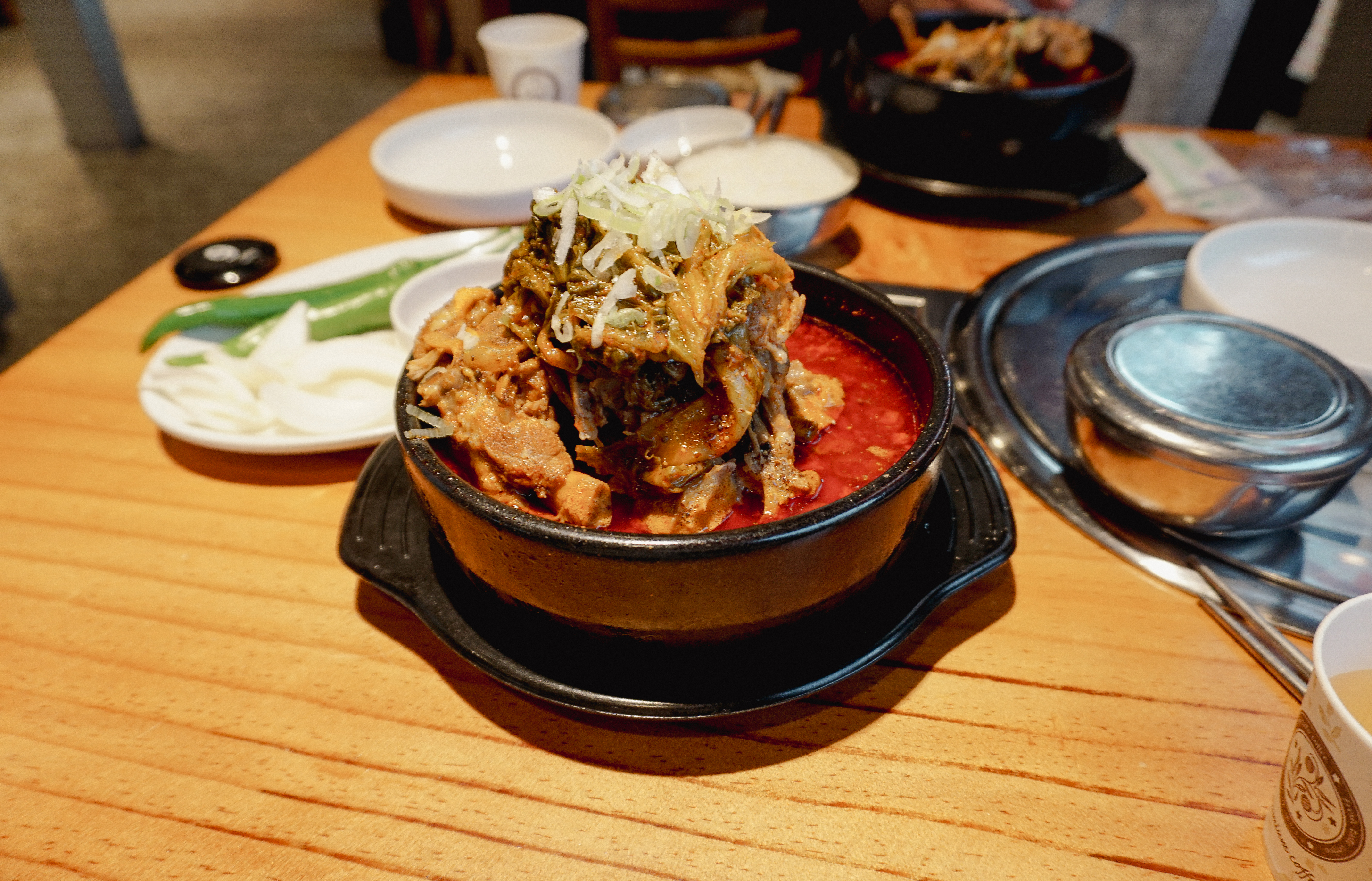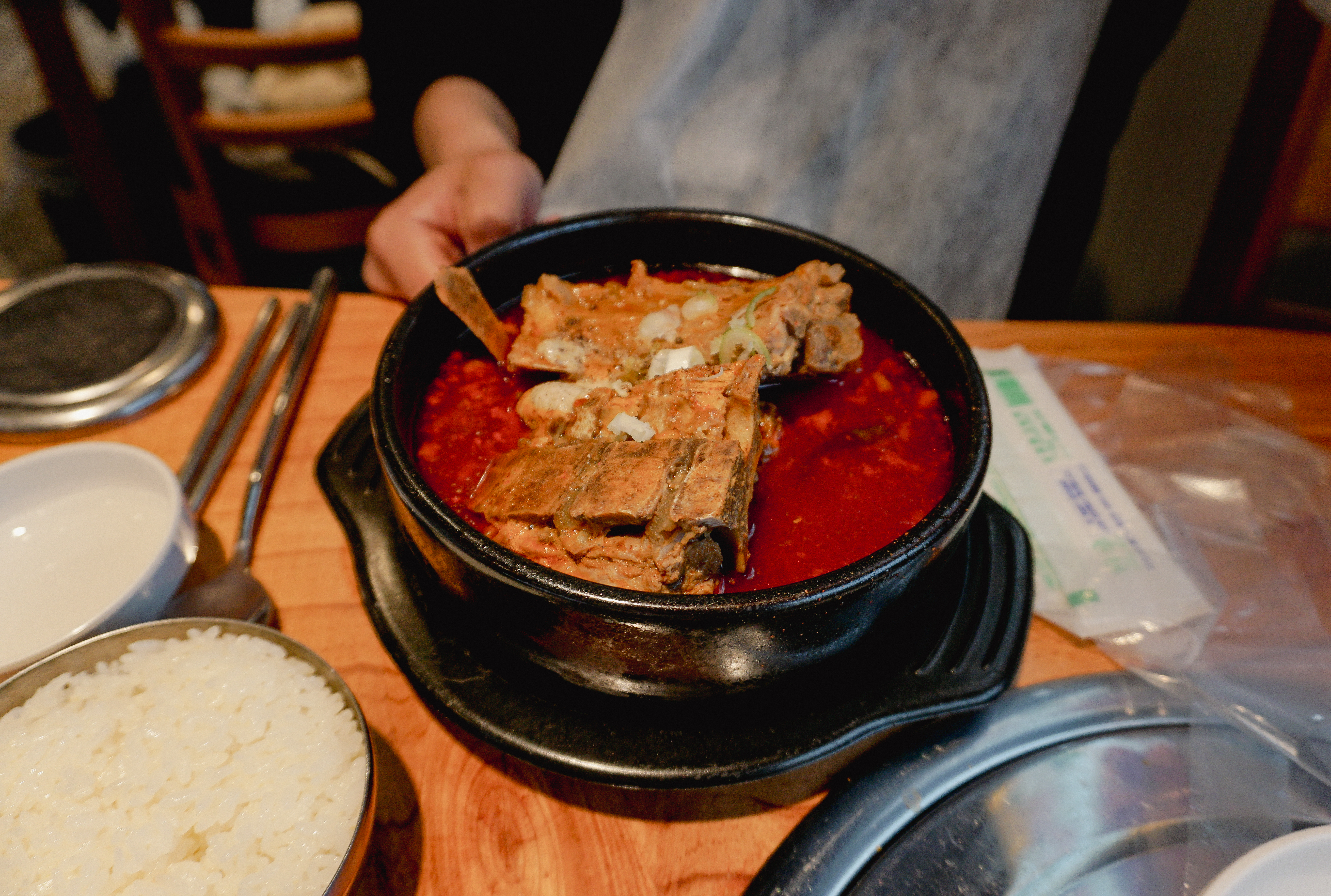 이곳의 감자탕은 들깻가루와 들기름을 적극 활용하는 듯싶더라고요. 국물에서도 들기름 특유의 향이 느껴지기도 했고, 참고로 이곳의 뼈해장국은 실제 감자가 들어가 있더라고요. 고기는 전체적으로 부드러웠고, 고두밥에 국물이 진해서 밥 말아먹기에 괜찮더라고요.