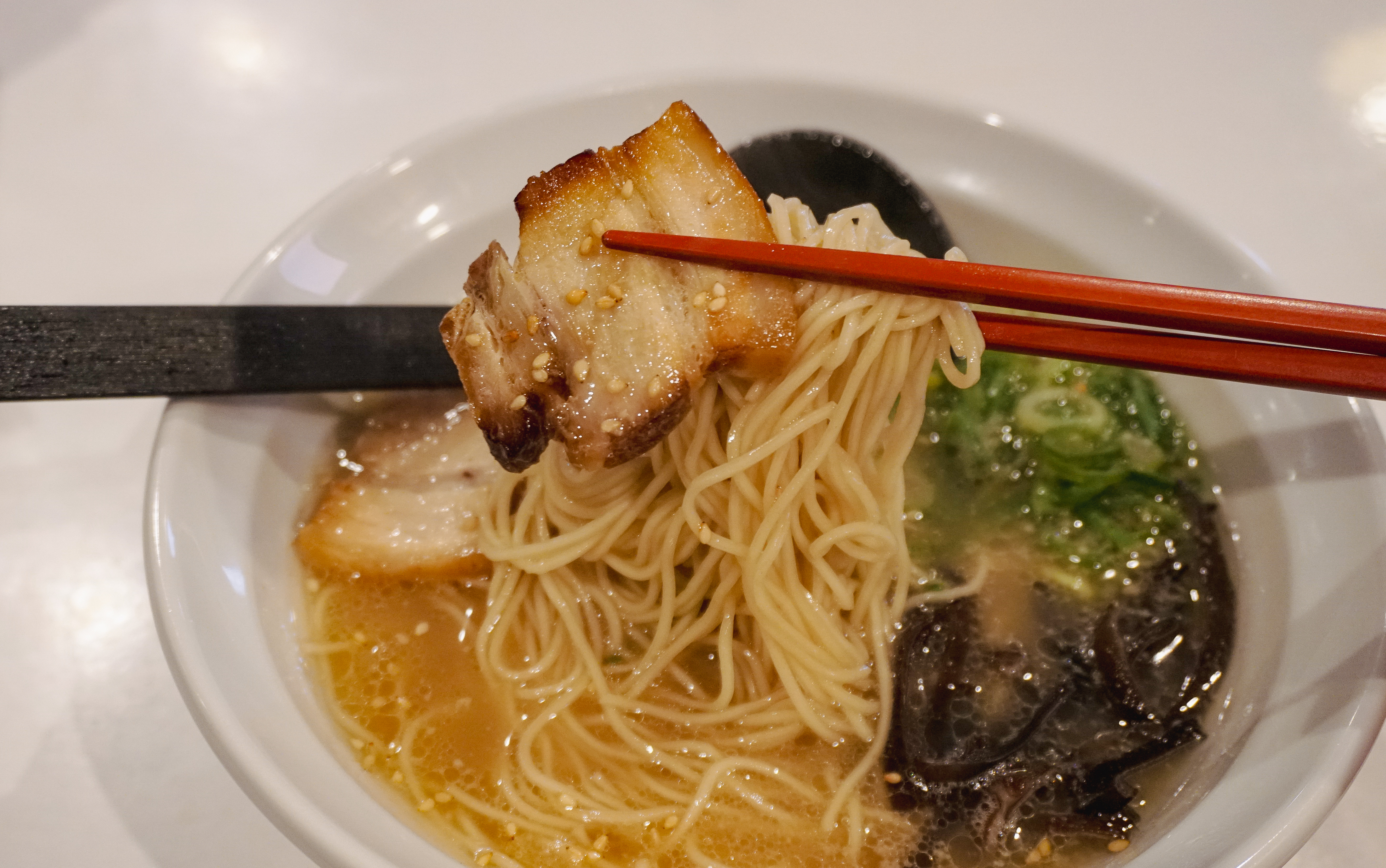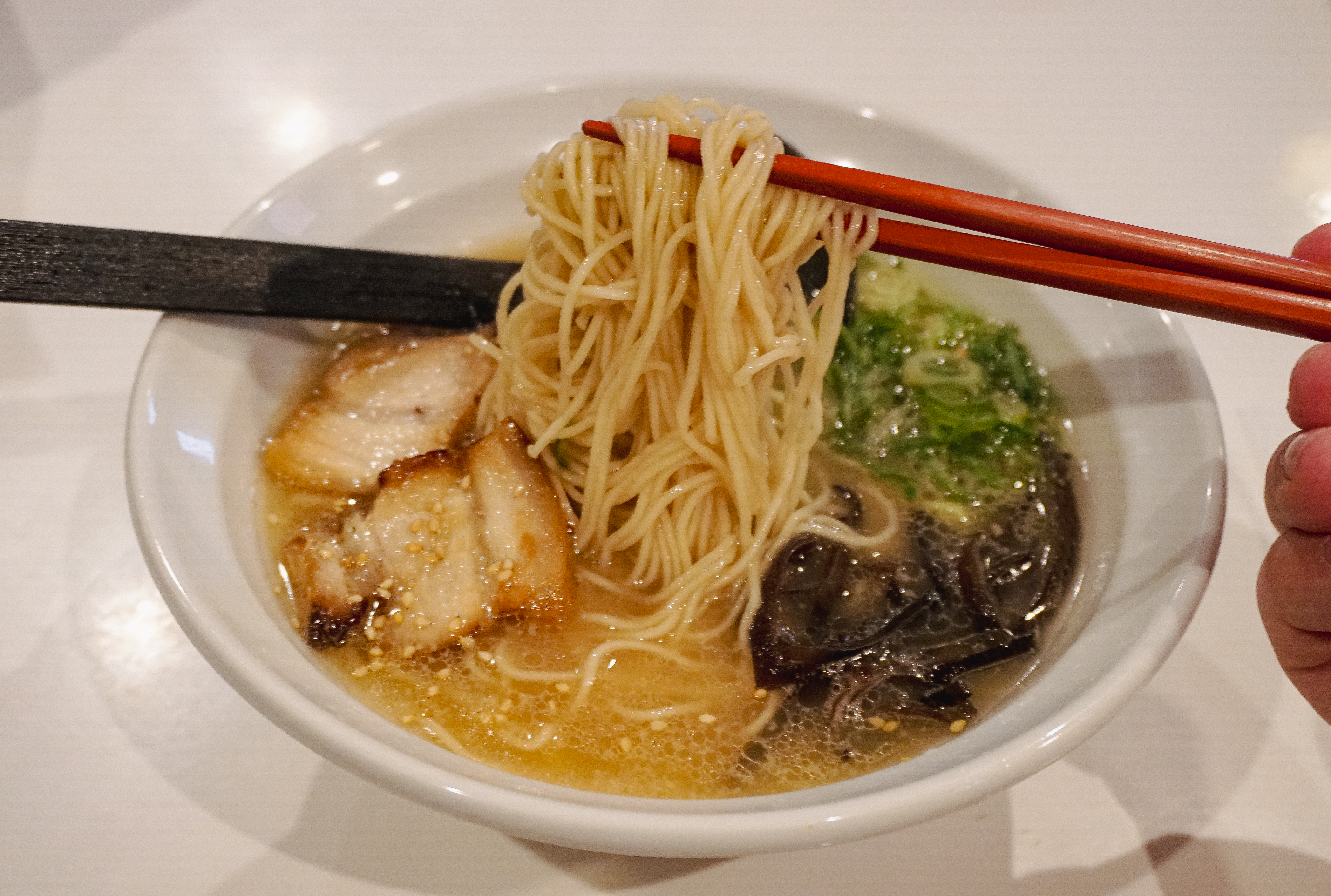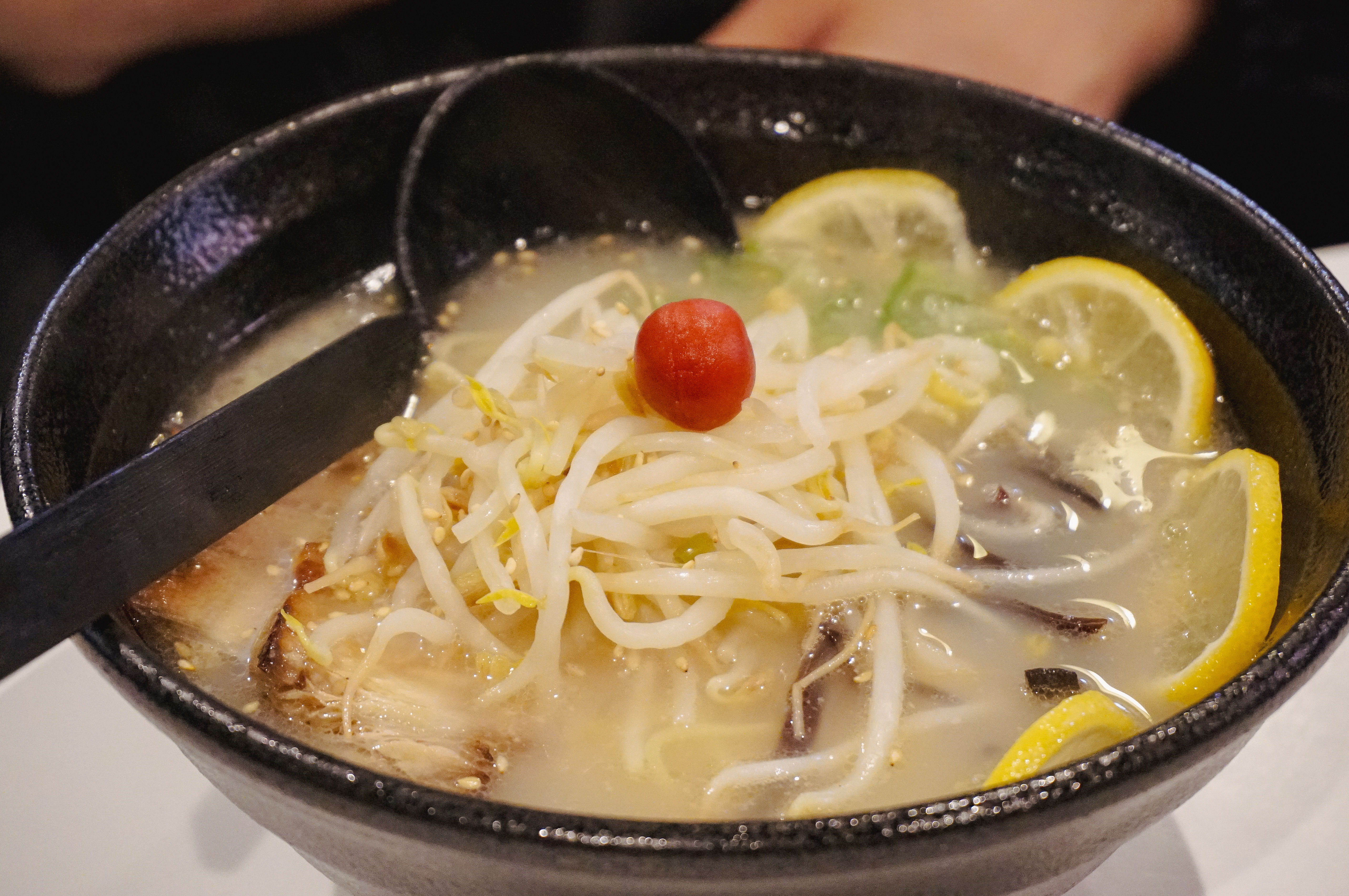 후쿠오카 멘야잇세이의 오리지널 돈코츠라멘과 소금레몬라멘이 나왔습니다. 저는 기본 돈코츠라멘을 주문했는데, 국물이 일단 진했고, 기본에 충실한 메뉴였습니다. 레몬라멘은 새콤한 맛이 강한 라멘이라고 하더라고요.