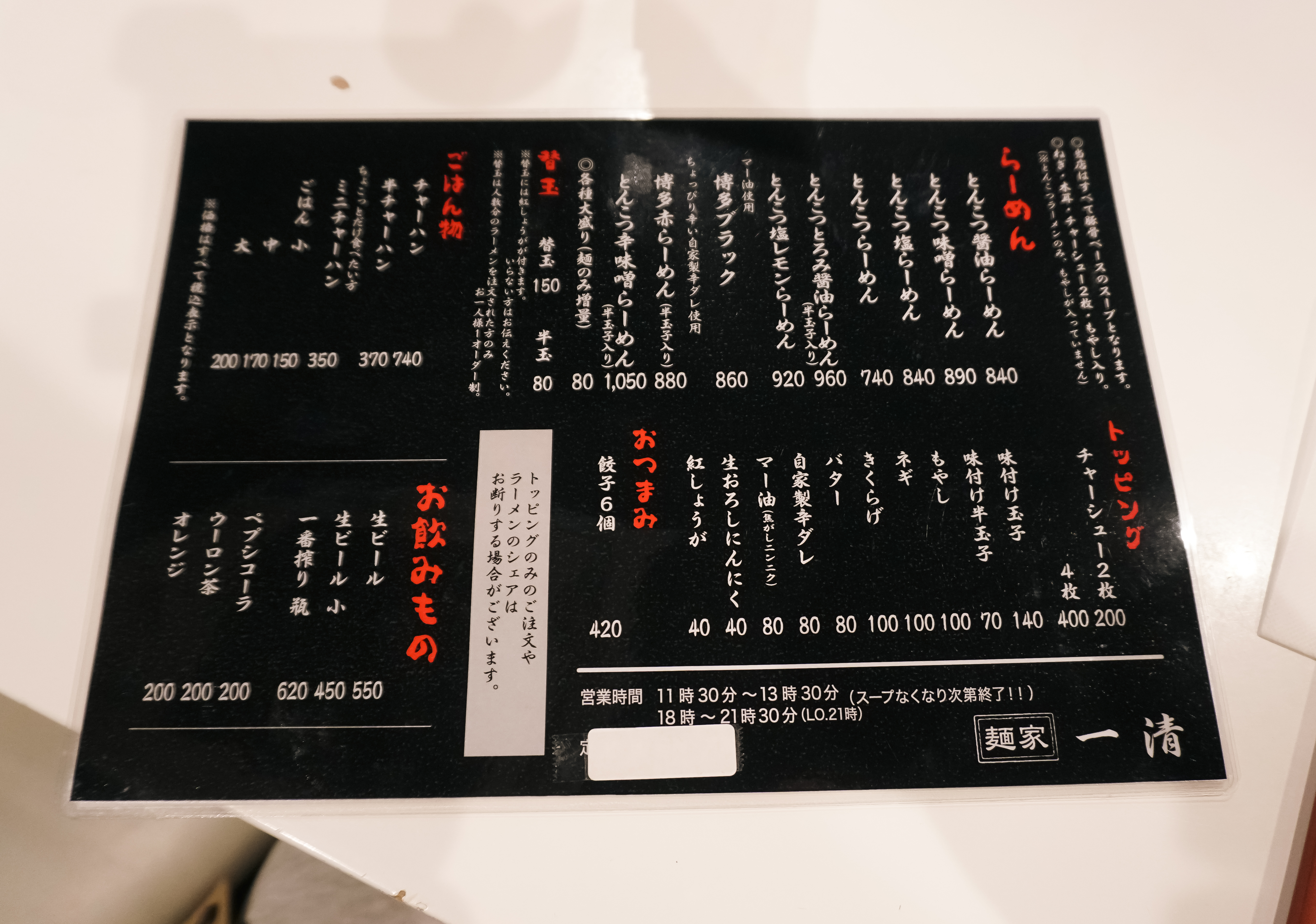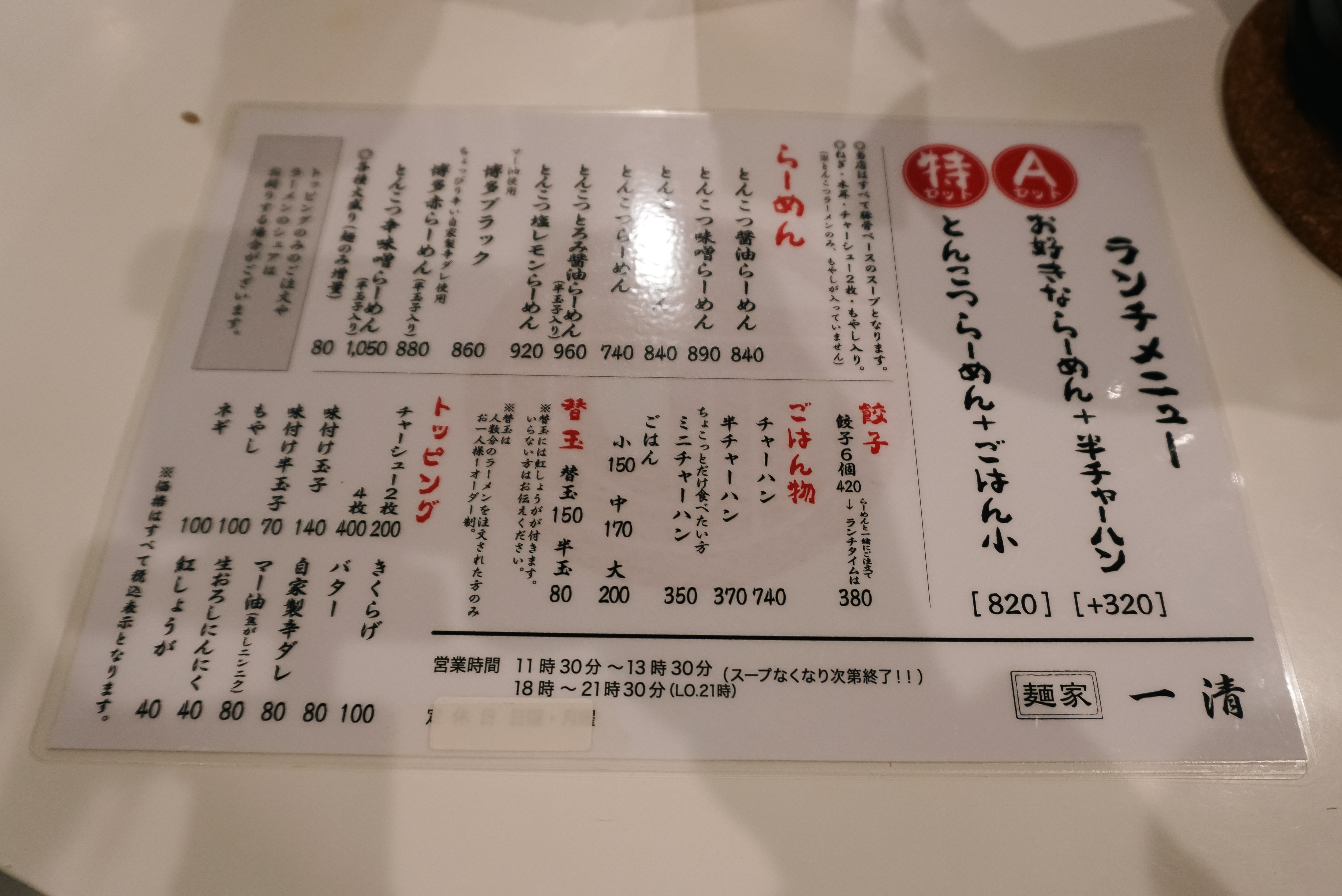 멘야잇세이(麺家一清)는 1 Chome-8-5 Arato, Chuo Ward, Fukuoka 에 위치한 가게입니다. 이곳은 일본의 노포 라멘집으로 일본 현지인들이 많이 방문하는 가게였습니다. 사장님도 친절하시고 가게도 아늑한 느낌이었습니다.