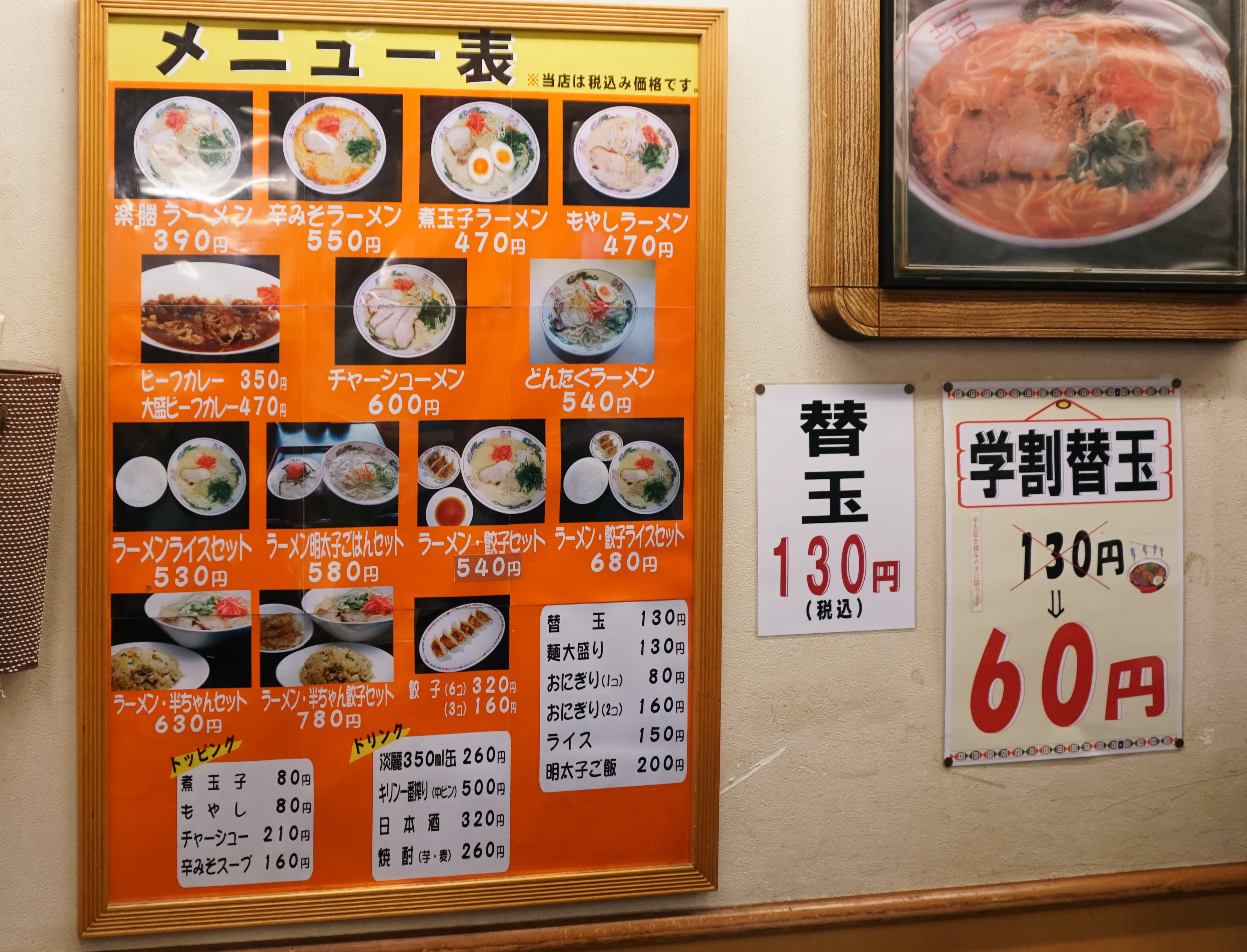 라쿠쇼라멘(楽勝ラーメン)은 가성비 라멘 맛집으로 현지인이 많이 찾고 있는 라멘집이었습니다. 특히 390엔 라멘과 그보다 더 저렴한 350엔 카레가 있었기 때문이죠. 저는 라쿠쇼라멘에서 가장 저렴했던 350엔 카레를 주문해서 먹었습니다.
