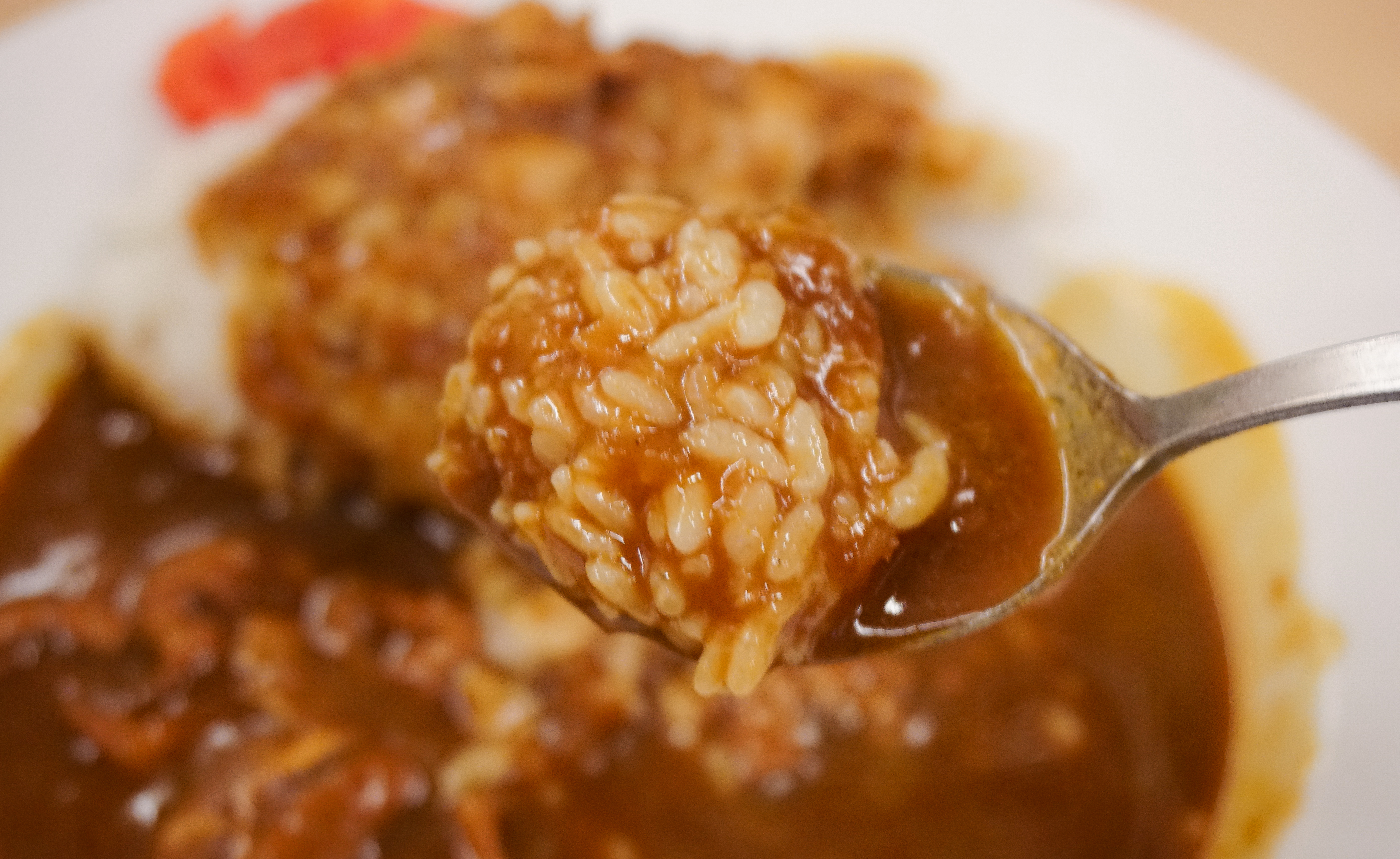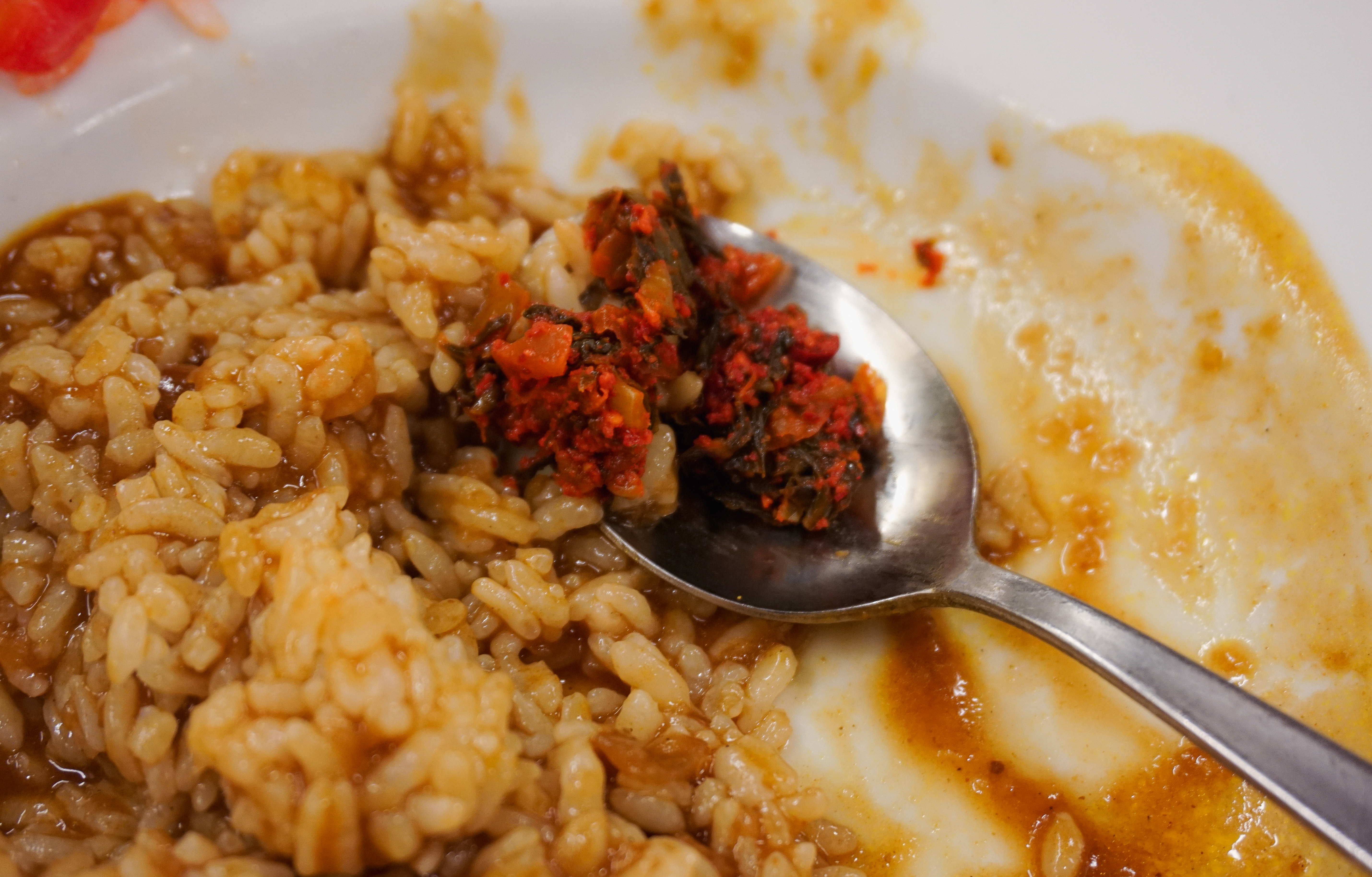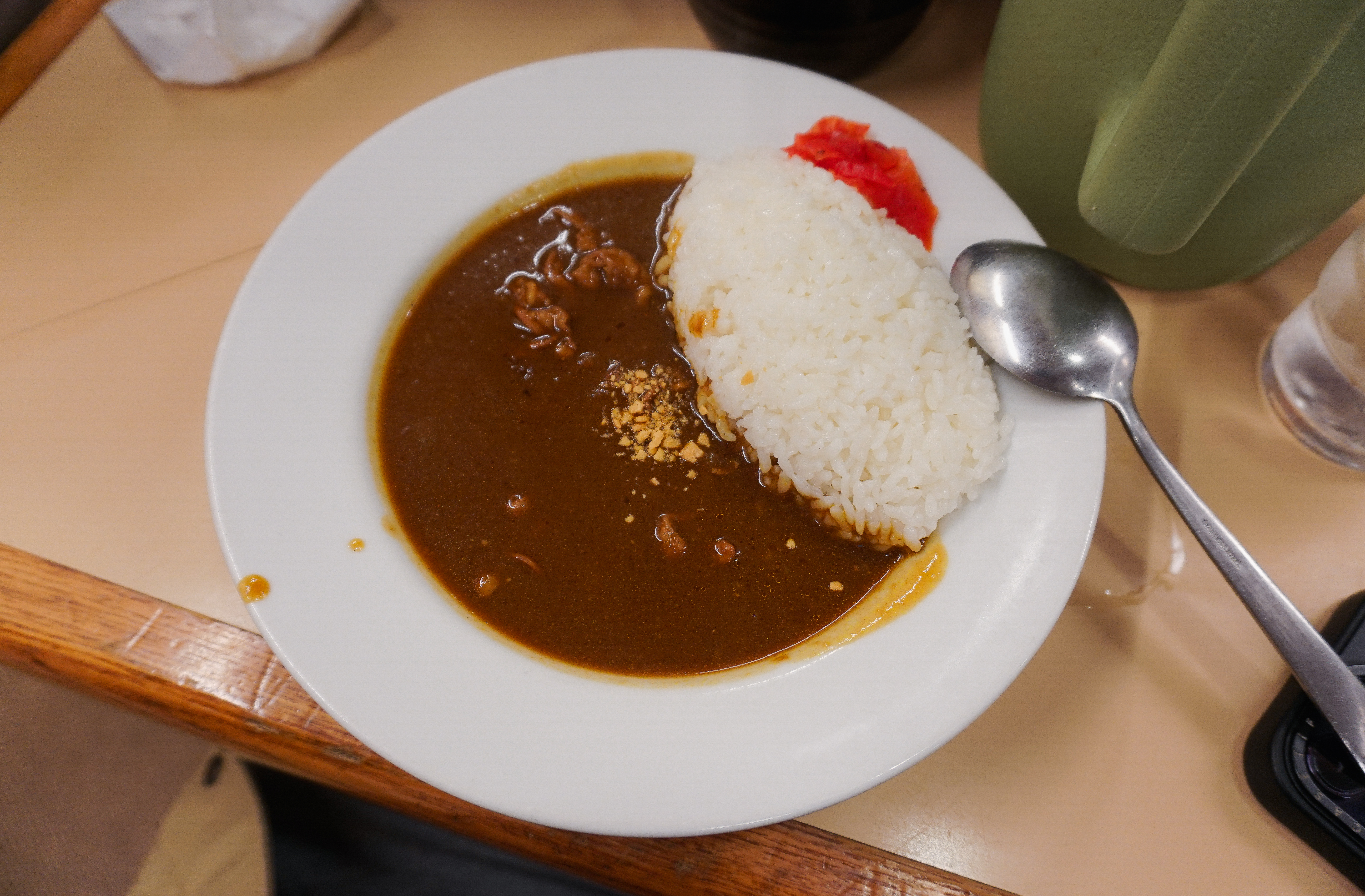 후쿠오카 텐진의 라쿠쇼라멘에서 주문한 소고기 카레는 진하고 약간 매운듯한 맛의 카레였습니다. 소고기는 얇게 썰어진 형태였고, 양은 많지는 않았습니다. 밥이랑 같이 먹기에 좋았고, 밥은 약간 고두밥 형태라 카레가 잘 스며들어 맛있었습니다. 참고로 라쿠쇼라멘은 매운 라멘을 파는 가게였는데, 단지에 담겨있던 다진 양념을 넣으니 혀가 아릴 정도로 매운맛이 확 살아나더라고요. 기본적인 메뉴를 우선 맛보시고, 매운 양념을 기호에 따라 추가하시는 것을 추천드립니다.