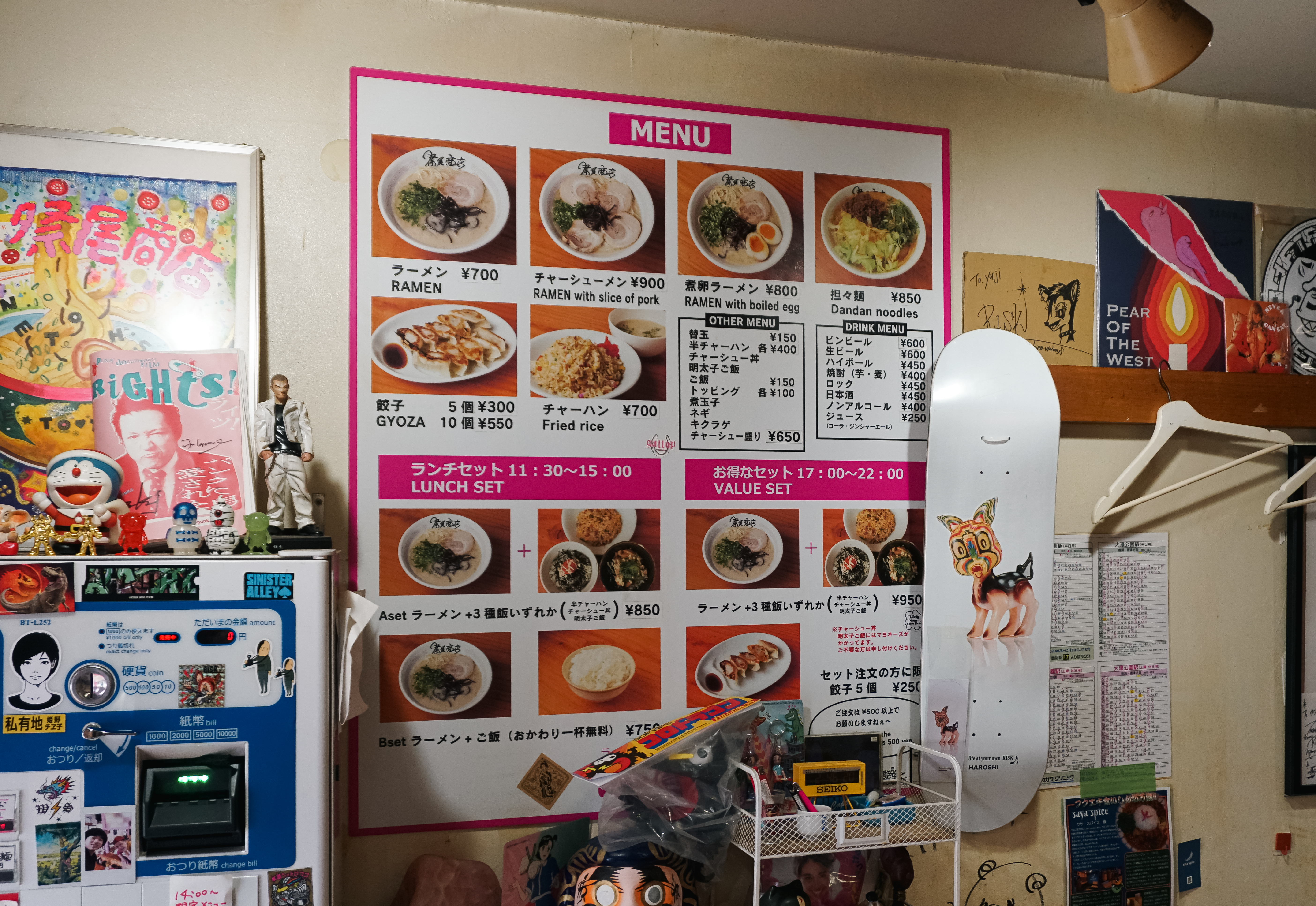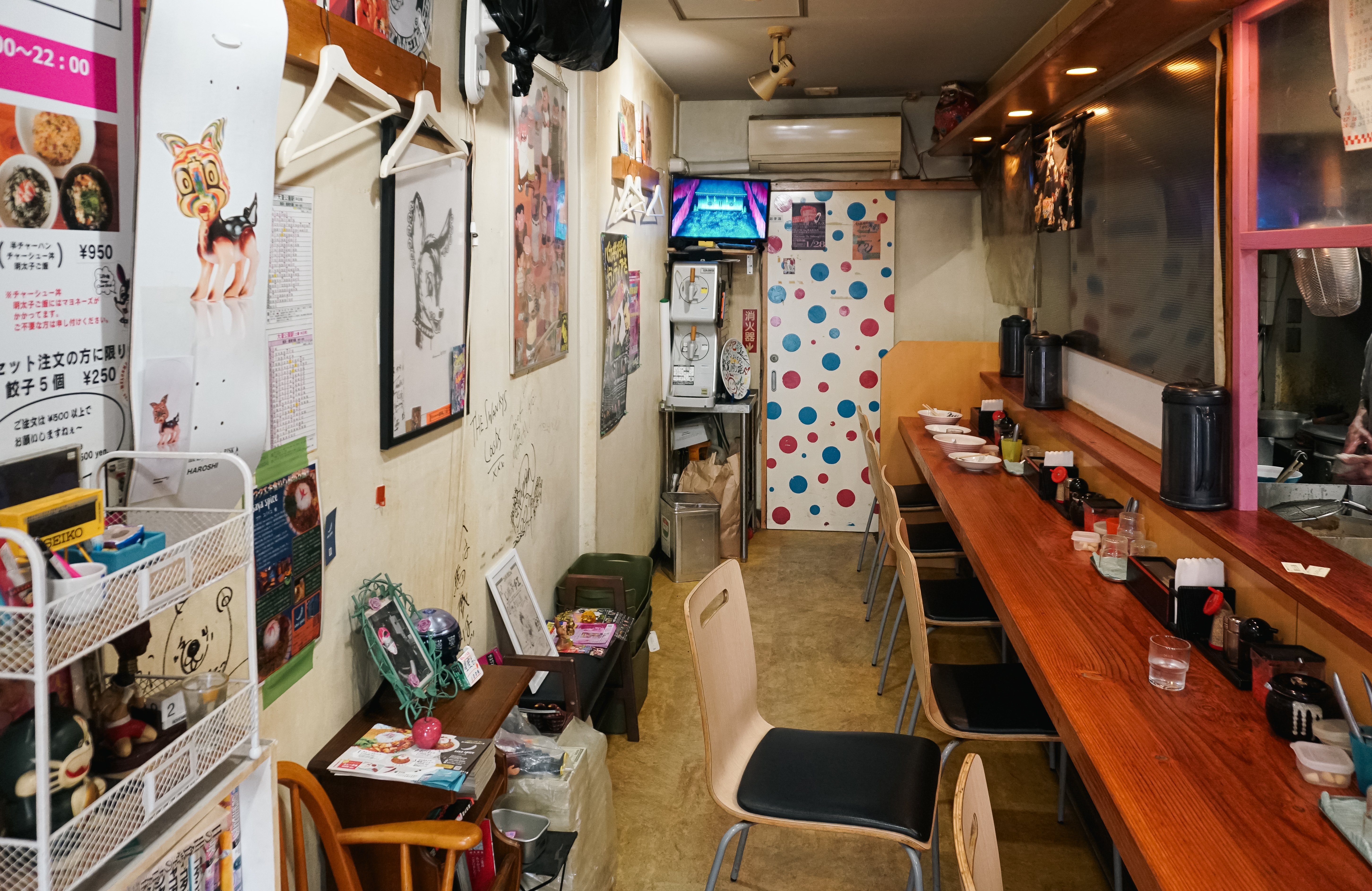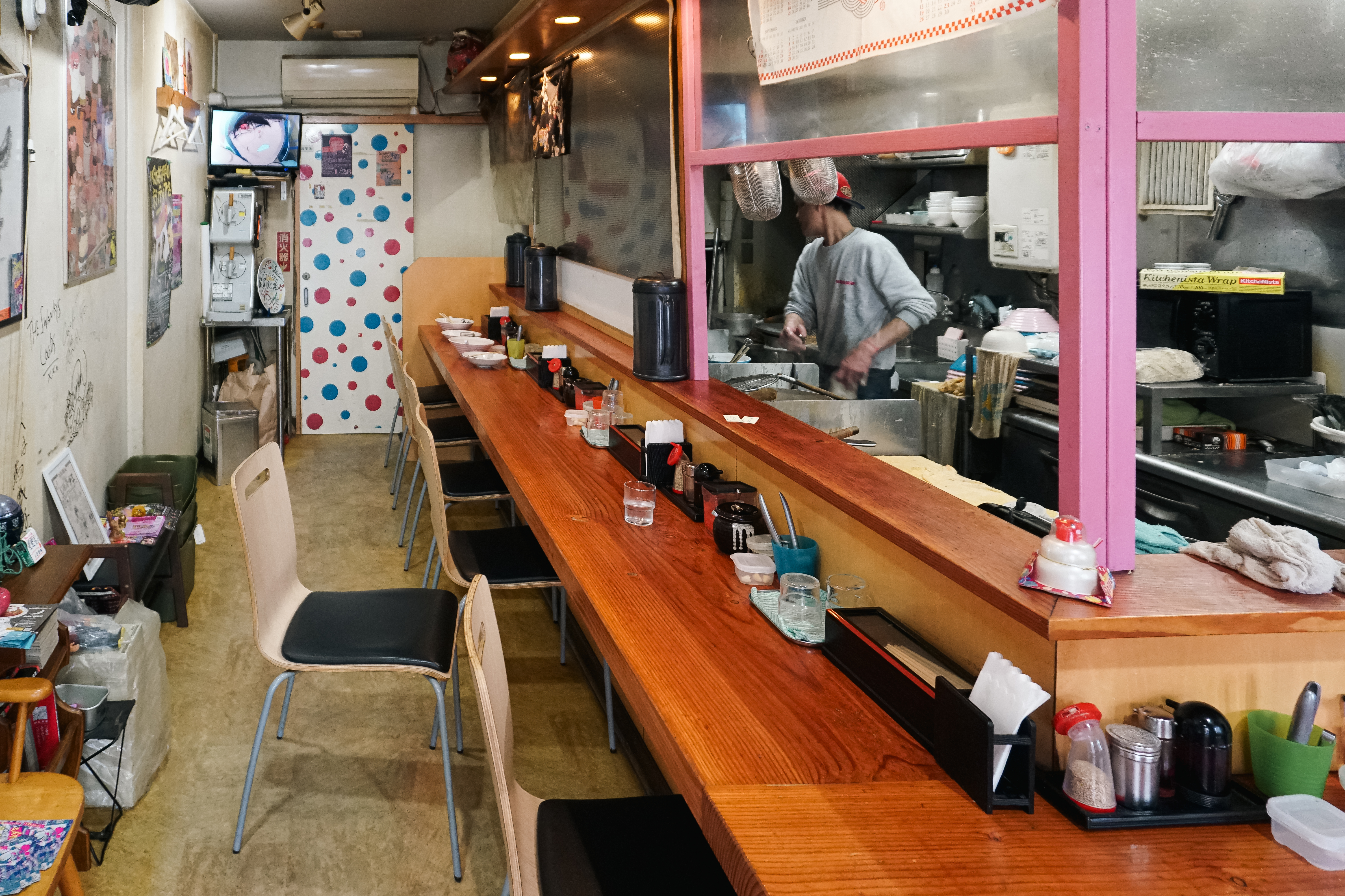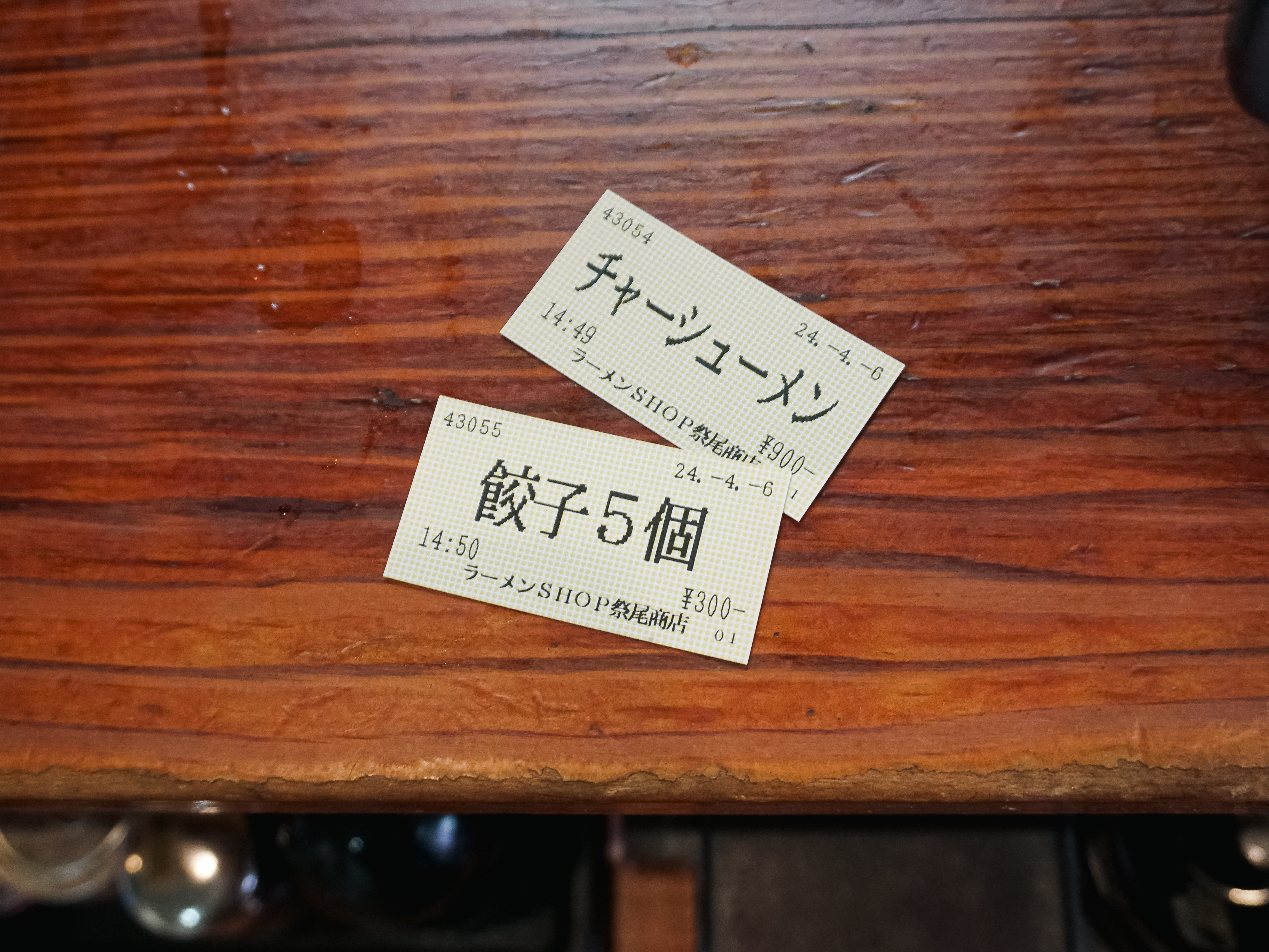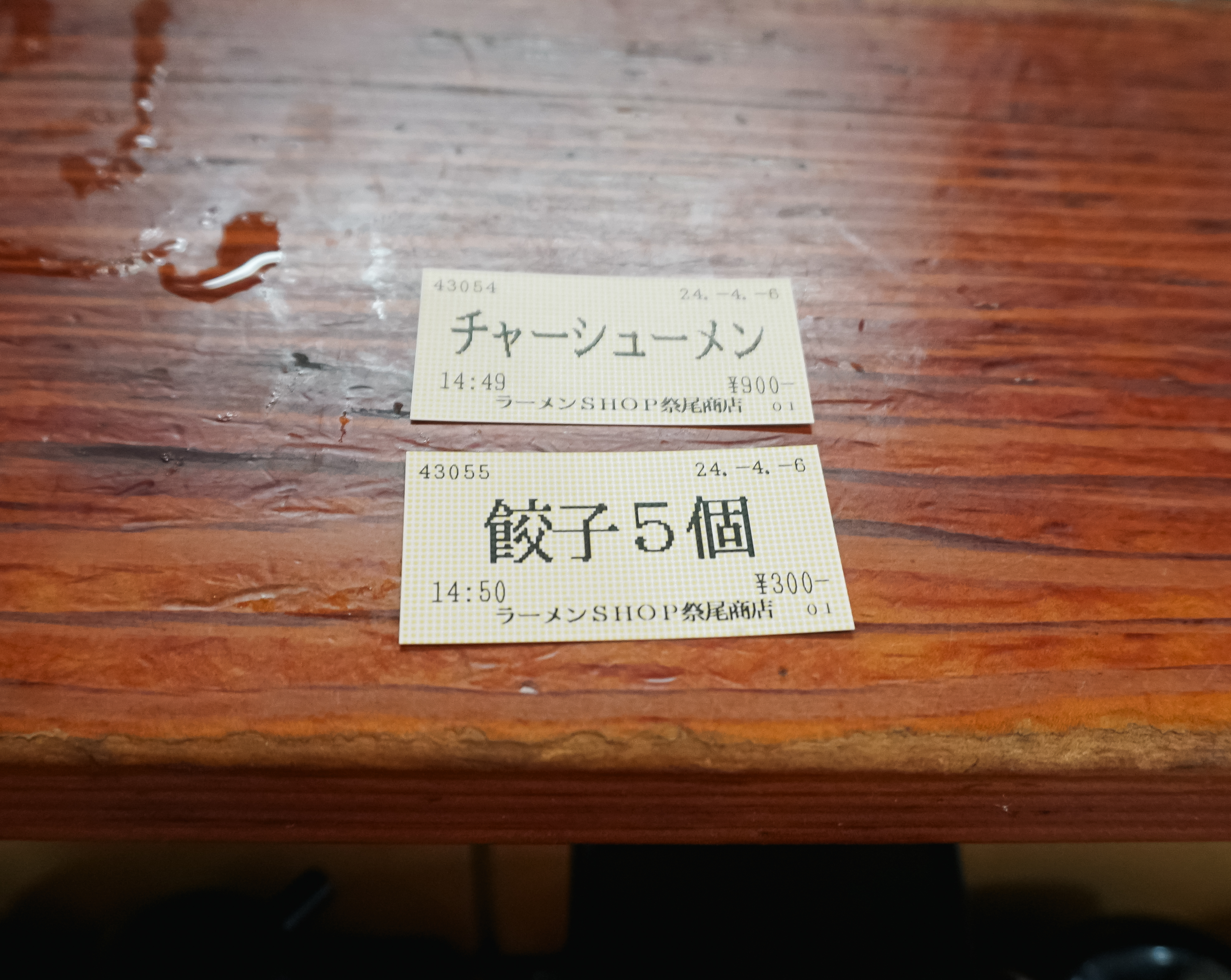 라멘샵 祭尾商店의 메뉴는 자판기(키오스크)를 통해 주문할 수 있었는데, 가격은 700~900円 사이였고, 저는 '차슈라멘'과 '교자5개'를 주문했습니다. 금액은 차슈라멘 900円, 교자 300円 으로 무난한 가격이었습니다. 해당 상점을 검색해보면 사장님이 유튜브에도 출연하시고 활발하신 성격이신 것 같은데, 제가 일본어를 잘 못하다 보니 묵묵히 라멘만 만들어주시더라고요.