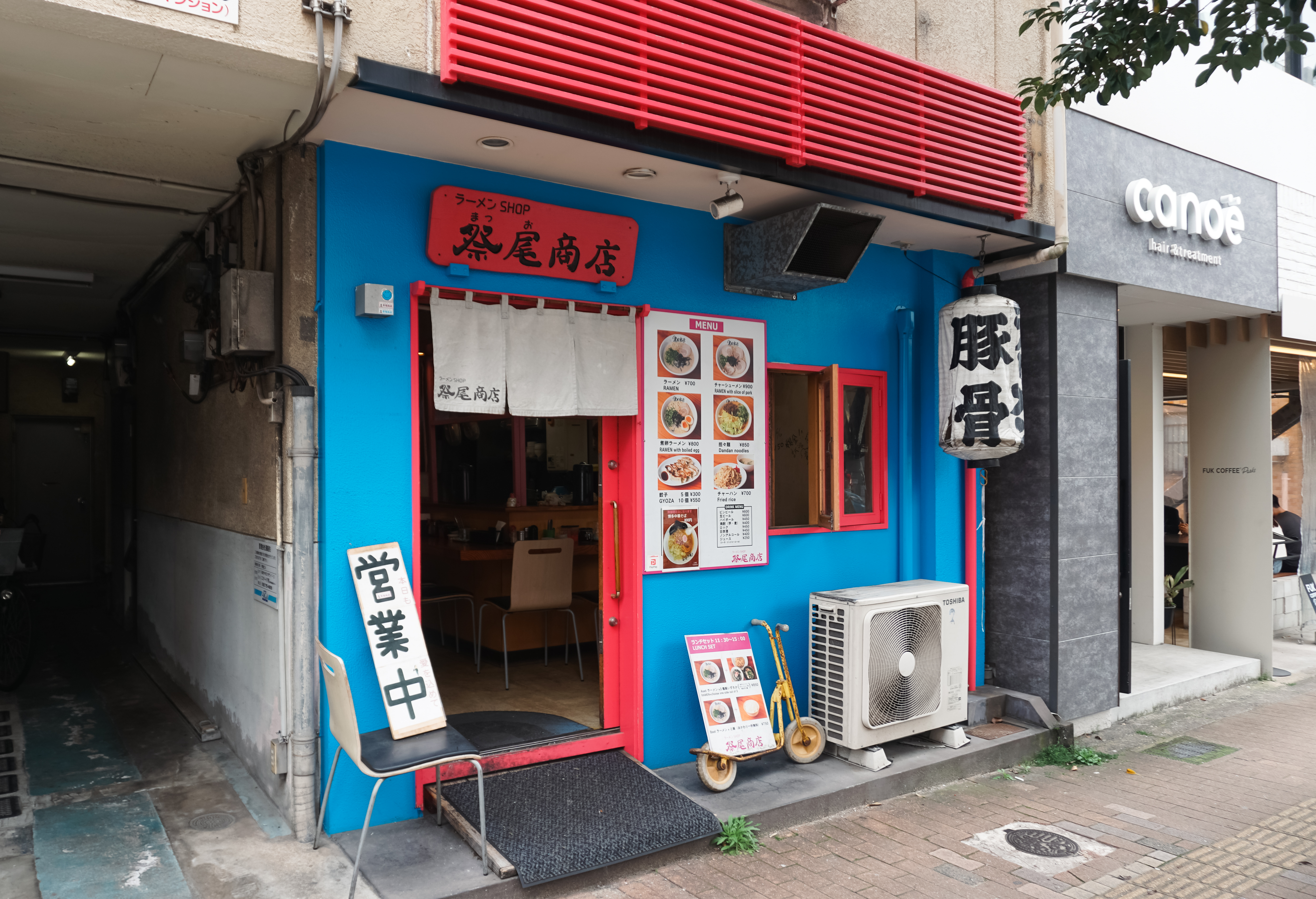 후쿠오카 라멘샵은 구글 지도에서 'ラーメンSHOP 祭尾商店(링크)'로 검색하면 나오는 가게로, 정통 하카타 돈코츠 라멘 전문점 정도로 보시면 될 것 같습니다. 이곳은 오호리공원(大濠公園) 인근에 위치한 가게로, 인근에 유명한 FUK COFFEE 옆 건물에 있었습니다.