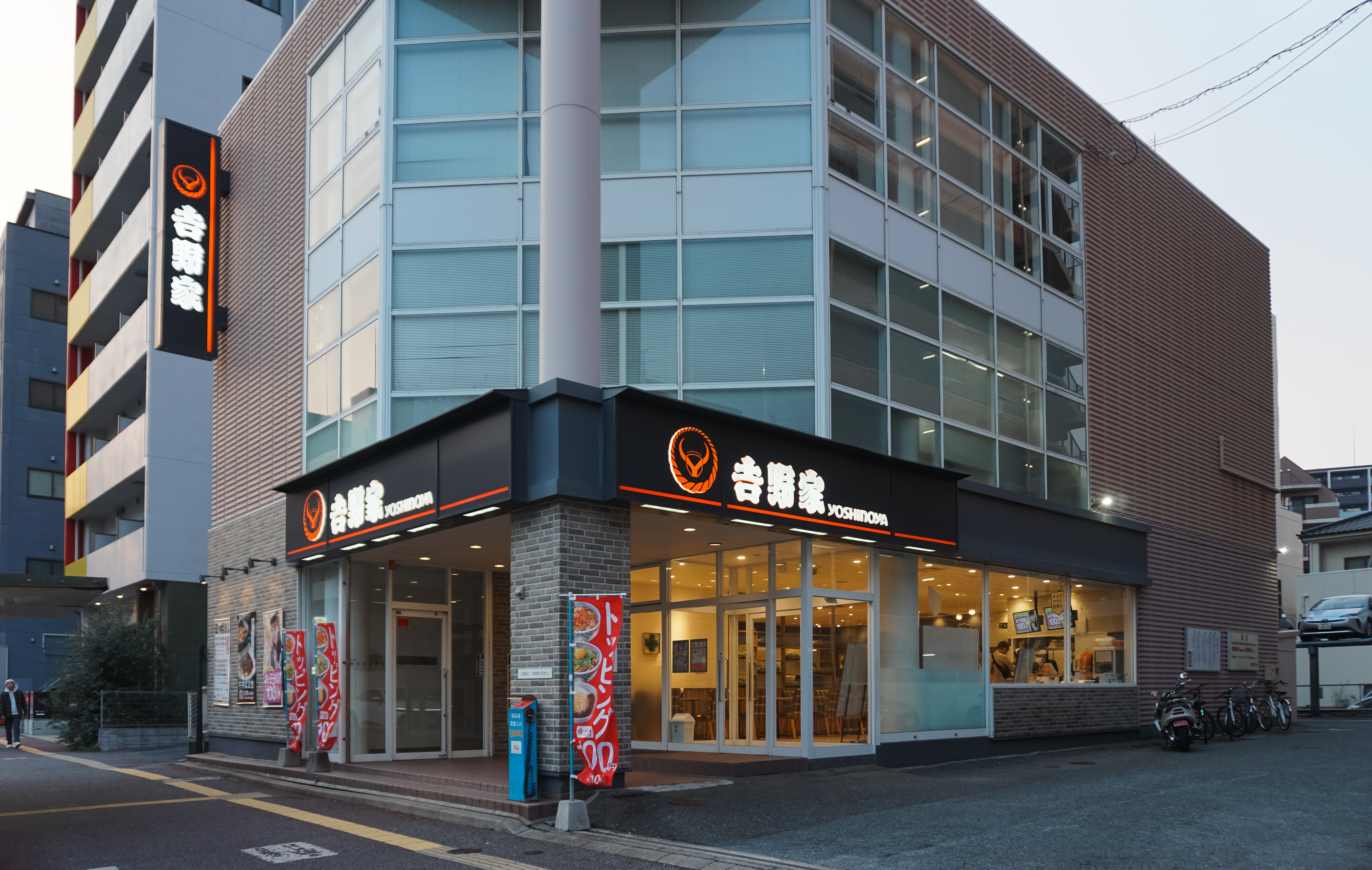 제가 이용한 요시노야(YOSHINOYA)는 2 Chome-7-7 Minato, Chuo Ward, Fukuoka, 810-0075 에 위치한 가게로, 건물 1층을 통째로 사용해 꽤 넓고 쾌적한 매장이었습니다. 이곳은 매장식사와 포장 둘 다 가능한 가게였습니다.