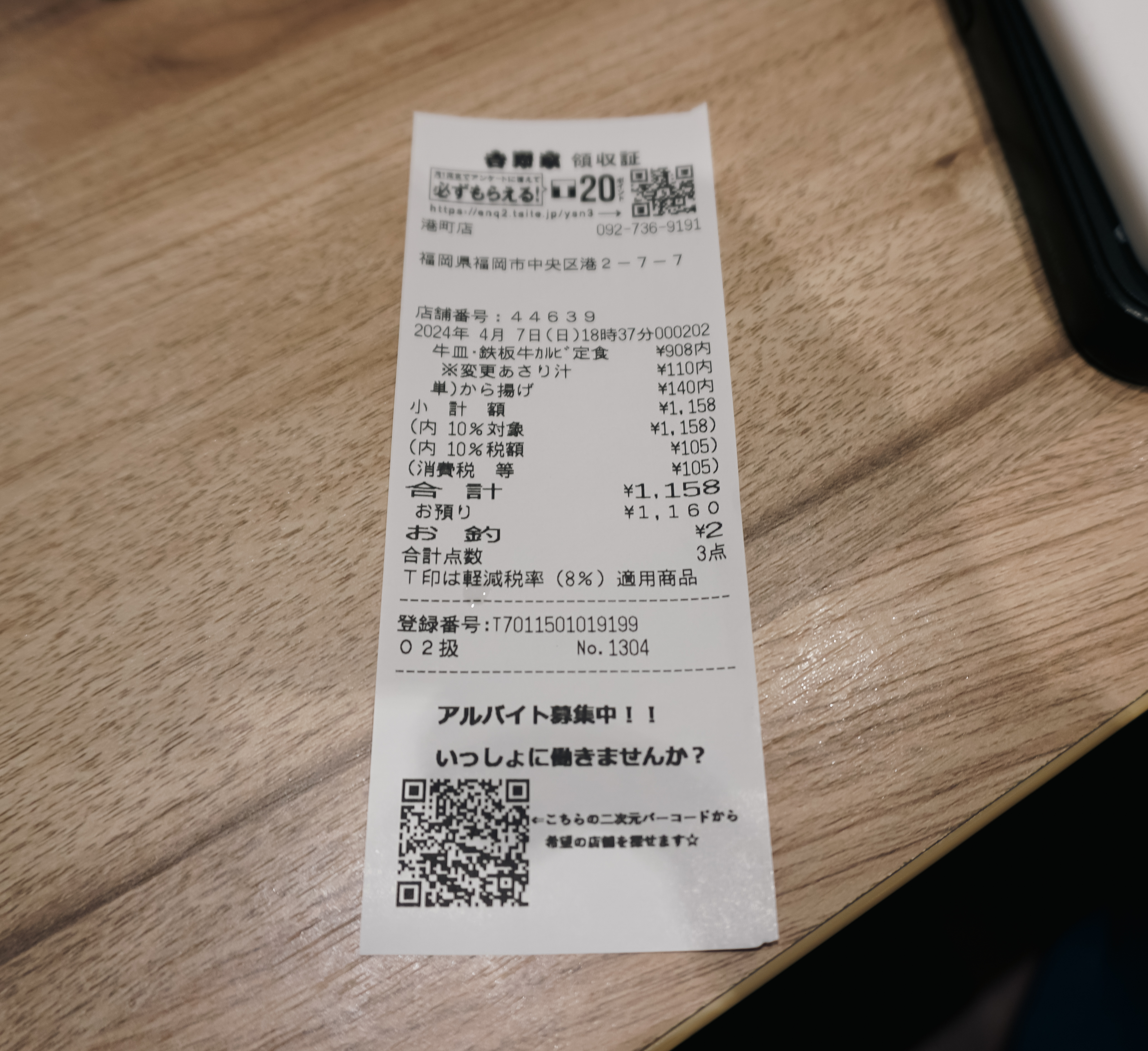 ※ 저는 소고기(불고기), 철판소갈비 정식에 가라아게(닭튀김)와 바지락된장국으로 변경하여 메뉴를 주문했습니다. 원래는 포장주문으로 했다가, 매장에서 먹기로 하여 매장에서 메뉴를 받았습니다.