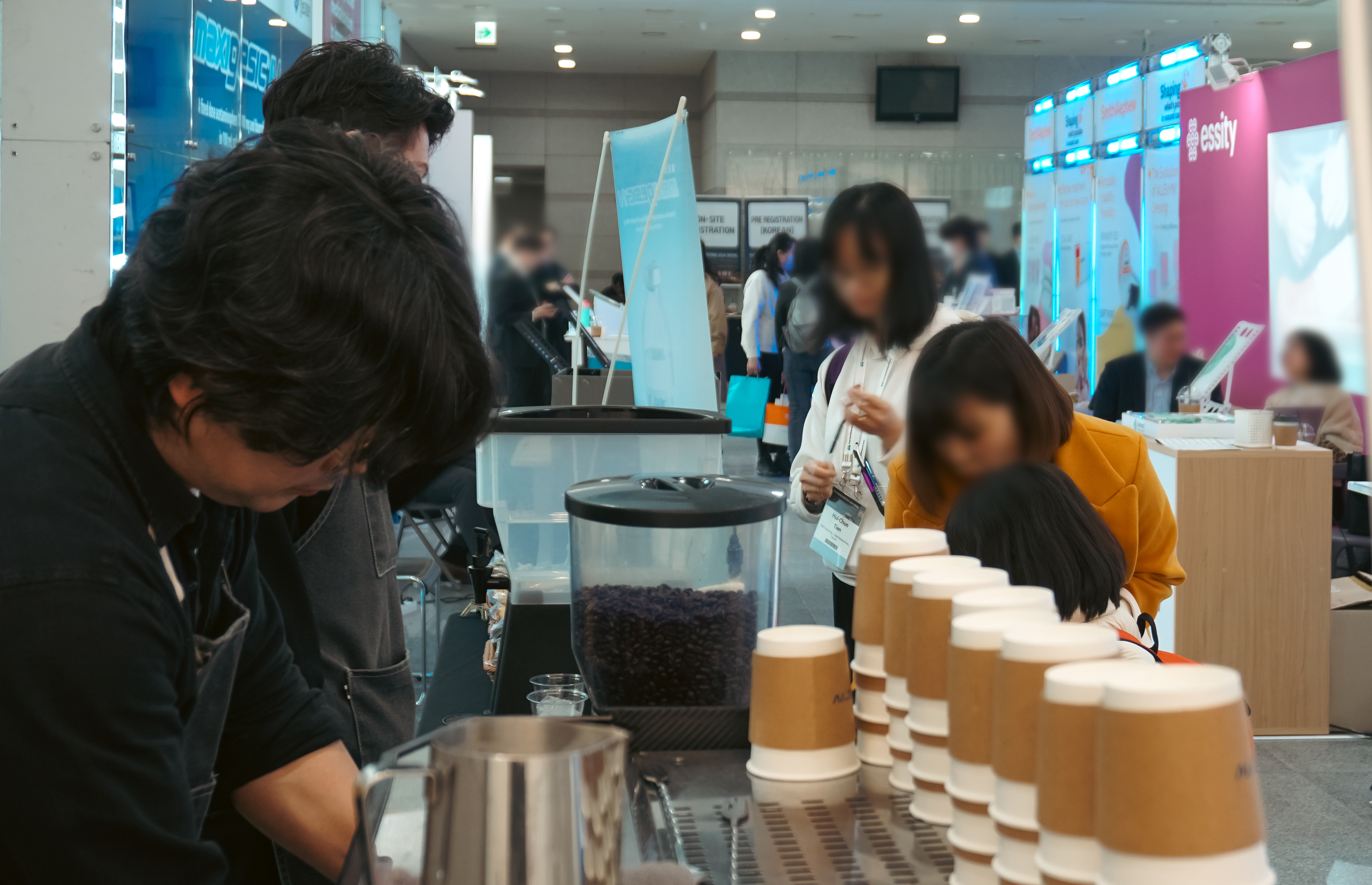 먼저 살펴볼 장소는 서초구 카톨릭대학교에서 열린 대한창상학회 주최의 행사입니다. 이 날 행사에는 남녀노소 다양한 인원들이 방문하는 행사였는데, 규모가 큰 세미나여서 그런지 많은 사람들이 커피버스를 찾는 모습을 볼 수 있었습니다.
