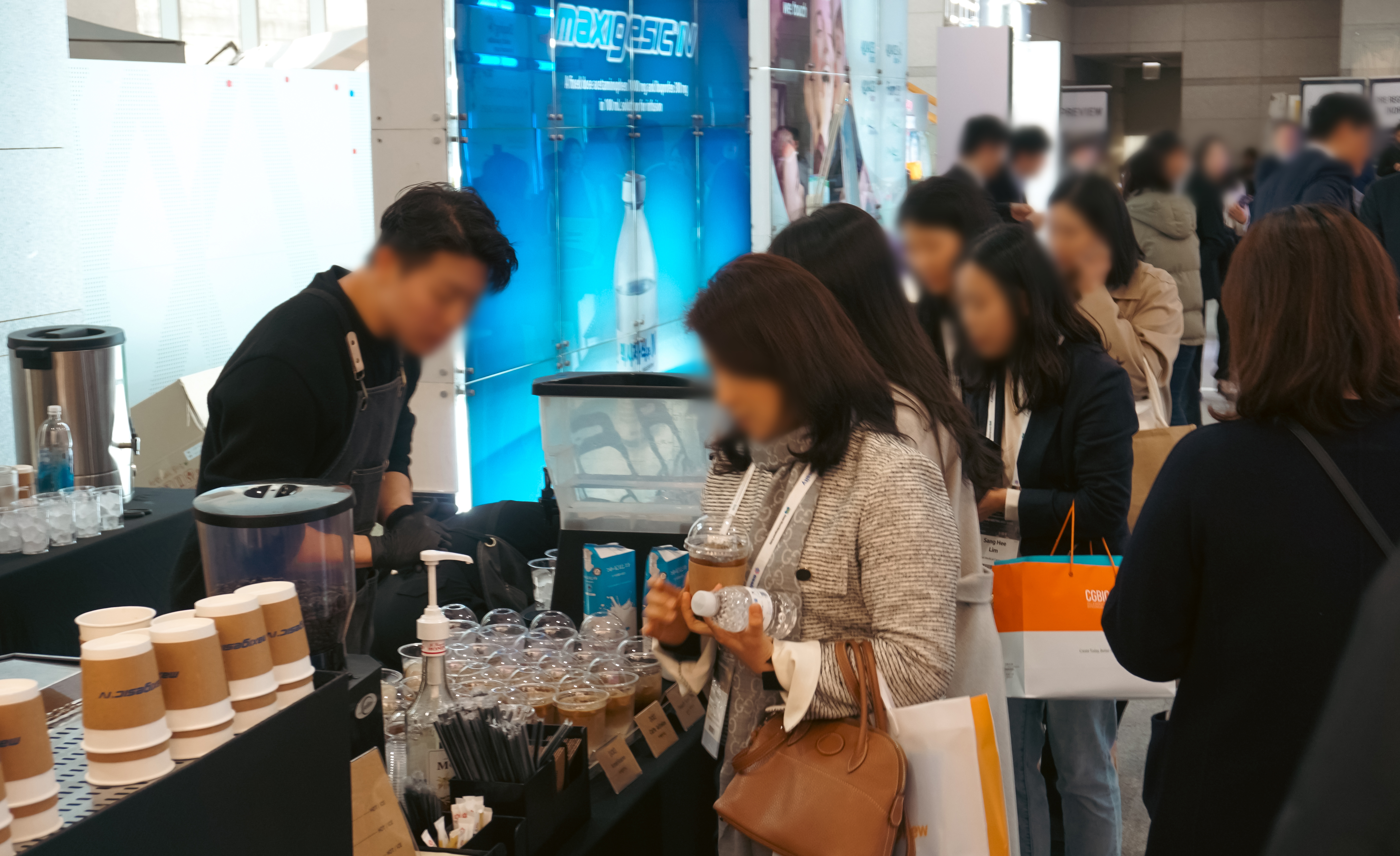 행사에서 업체를 홍보하는 방법 중에는 컵홀더를 통한 방법도 있는데, 이번 행사에는 경보제약의 맥시제식이라는 제품의 홍보를 위해 컵홀더를 제작했더라고요. 아무래도 컵홀더는 차가운 음료나 더운 음료 모두 범용적으로 활용이 가능해서 효과적인 홍보방법이죠.