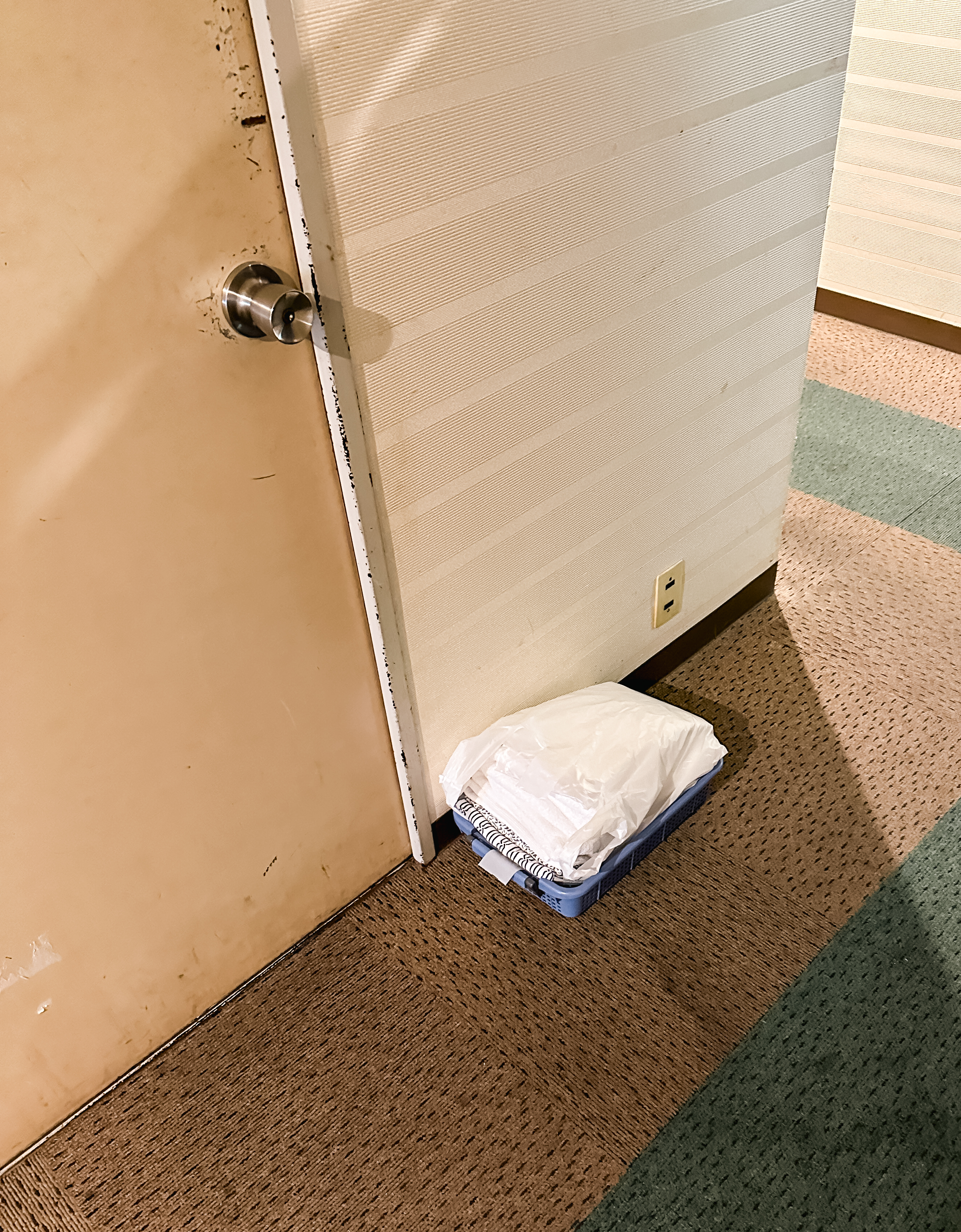 연박으로 투숙할 경우 객실 정비를 맡기면 침구류와 수건 등을 직접 교체해 주시지만, 사람이 있을 경우 새 가운과 타월을 문 앞에 가져다주십니다. 객실에 짐을 두고 다녀도 도난을 당하지 않으니, 기왕이면 객실정비를 받는 것을 추천드리고요. 피치 못하게 컨디션이 좋지 않아서 객실에서 쉬어야 할 경우에는 위 사진과 같이 여분의 타월과 가운을 객실 문 앞에 가져다주십니다.