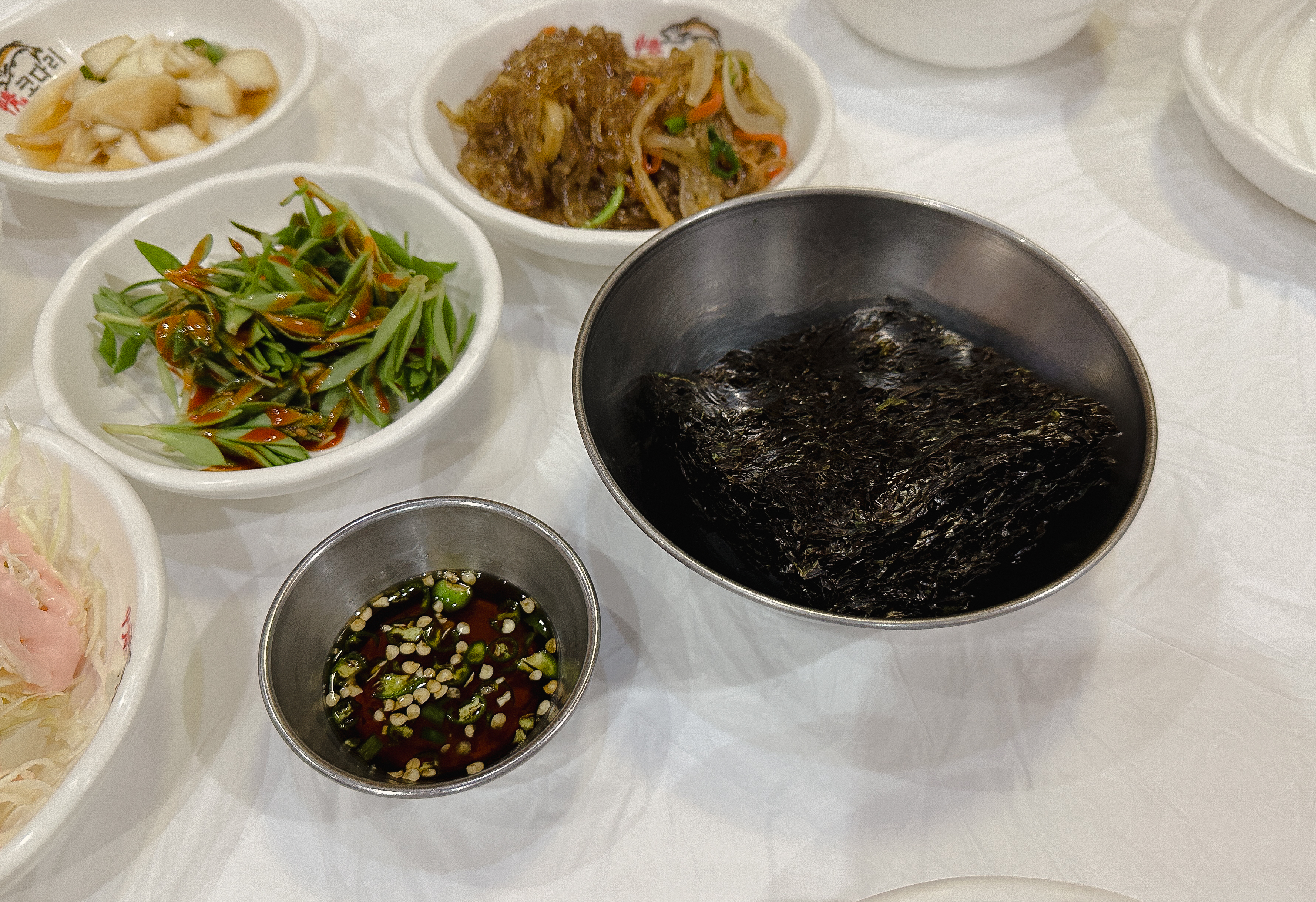 영천 정코다리 영천은해사점의 해물칼국수와 코다리조림을 먹었습니다. 해물칼국수는 약간 얼큰한 맛의 국물에 다양한 해산물이 들어간 칼국수로 해산물의 감칠맛이 잘 느껴지는 메뉴였고, 코다리조림은 쫄깃 탱글 한 코다리에 매콤한 양념이 맛있었던 메뉴였습니다. 같이 나오는 갯벌생김도 별미더라고요. 관심 있으신 분은 한 번 드셔보시라고 추천드리고 싶습니다.
