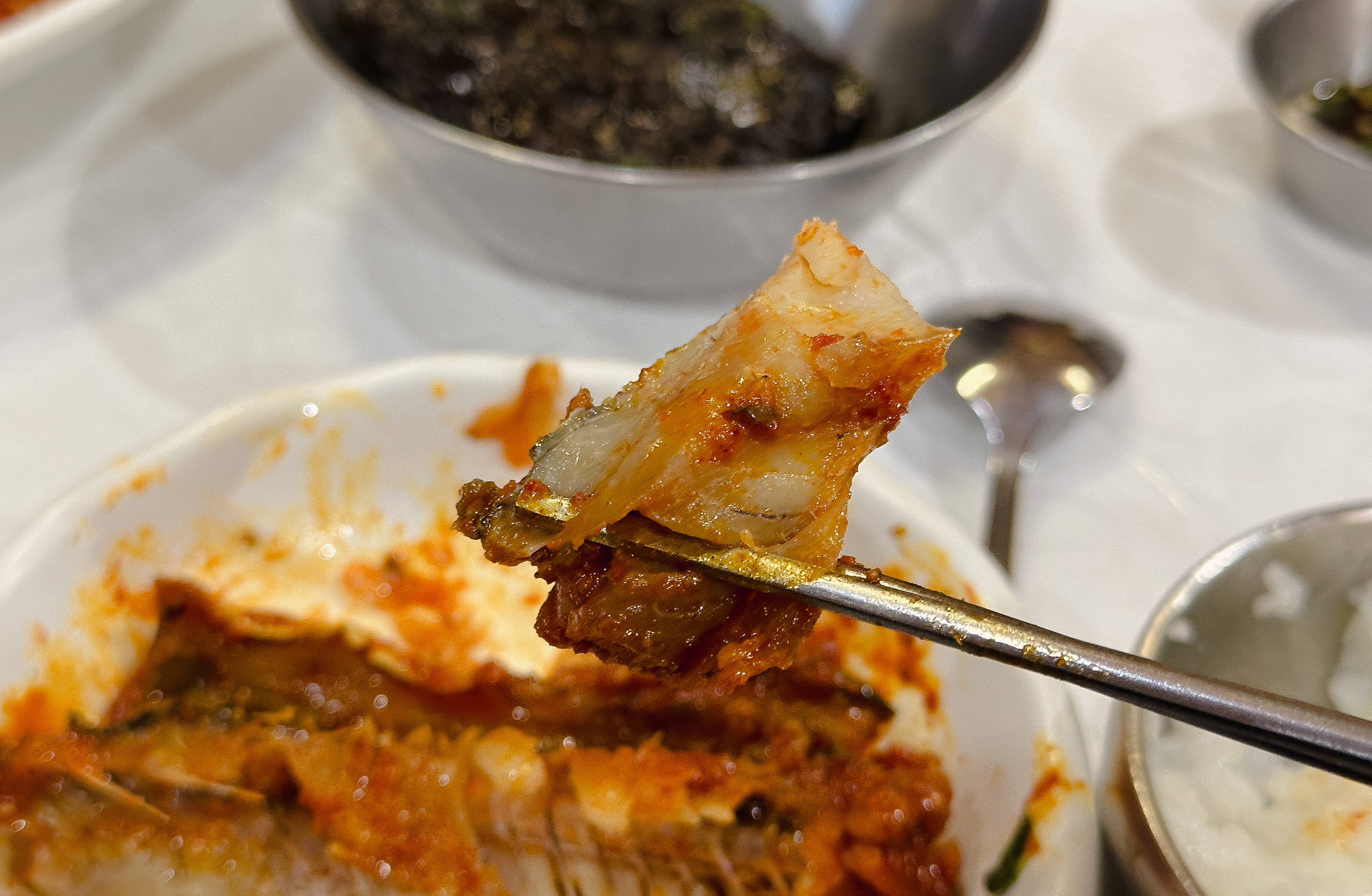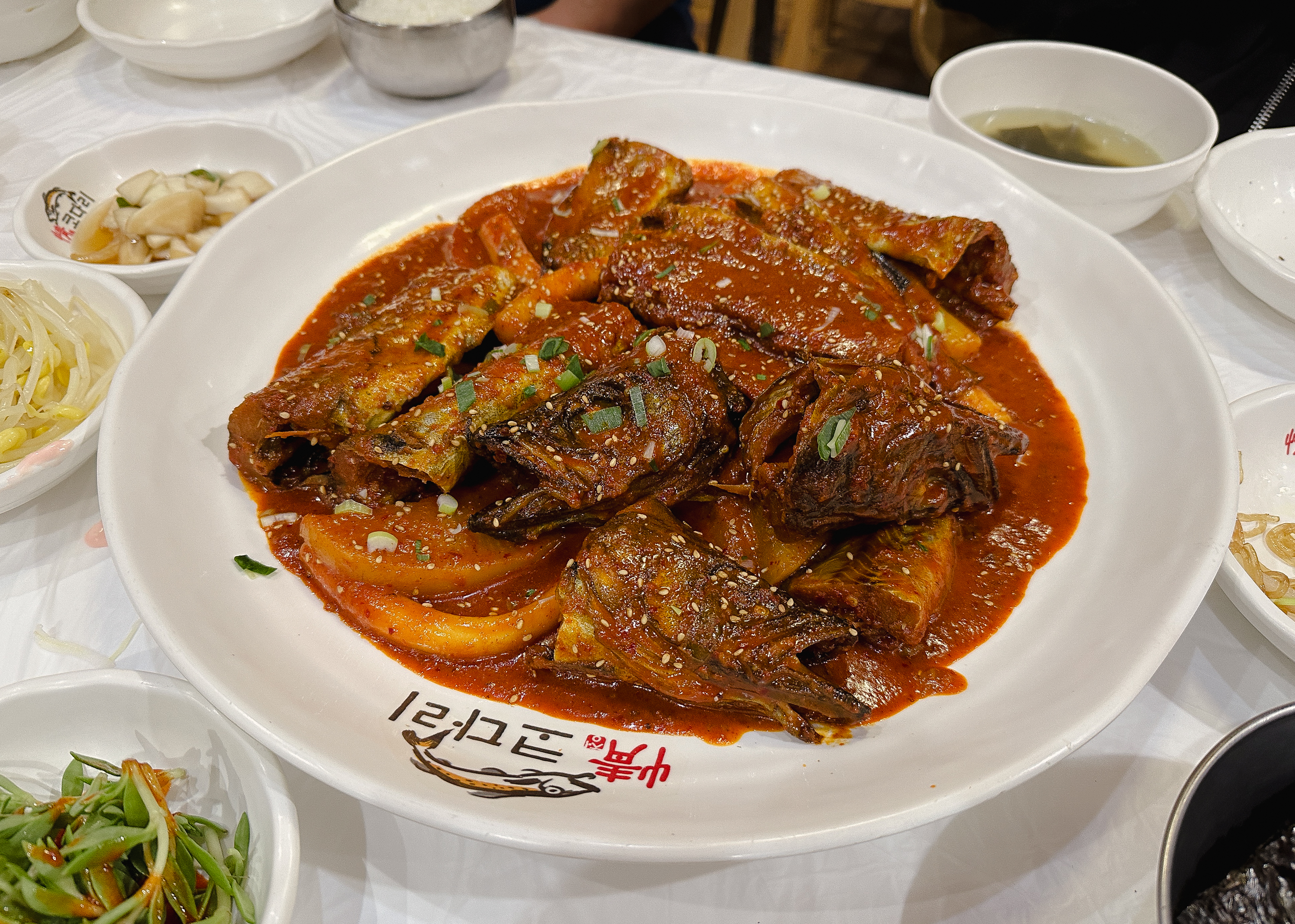 코다리조림은 위와 같이 각종 반찬과 갯벌생김(?)과 함께 나왔습니다. 저희가 주문한 메뉴는 코다리 조림 중 자였는데, 코다리 3마리가 들어있는 메뉴였습니다. 코다리조림은 담백하면서도 깔끔한 매운맛이 좋았고, 바삭바삭한 생김과도 잘 어울렸습니다.
