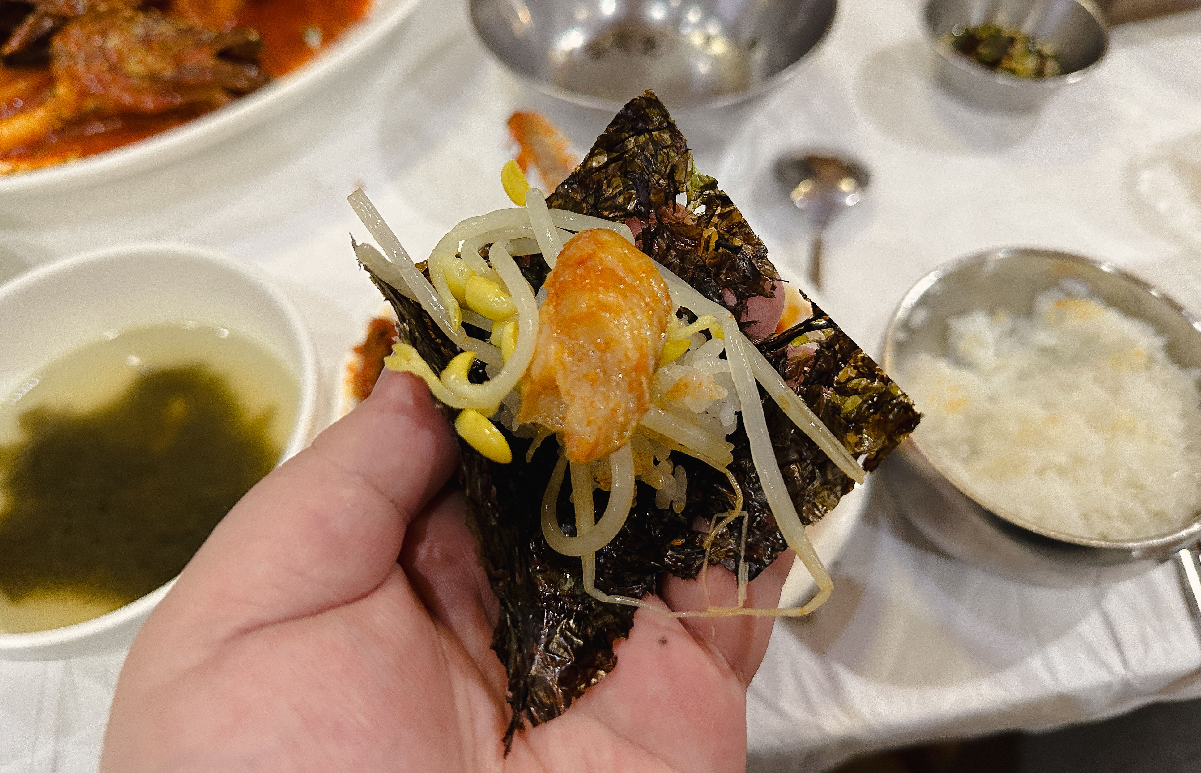 정코다리의 코다리조림은 그냥 먹어도 맛있었고, 콩나물과 함께 쌈을 싸 먹어도 맛이 괜찮았습니다. 일단 코다리의 명태살이 쫄깃쫄깃한 식감이 먹기 좋았고, 바삭바삭한 생김은 같이 제공되는 간장에 찍어먹어도 좋았고, 메콤한 코다리조림 양념장이랑 곁들여도 맛있더라고요.