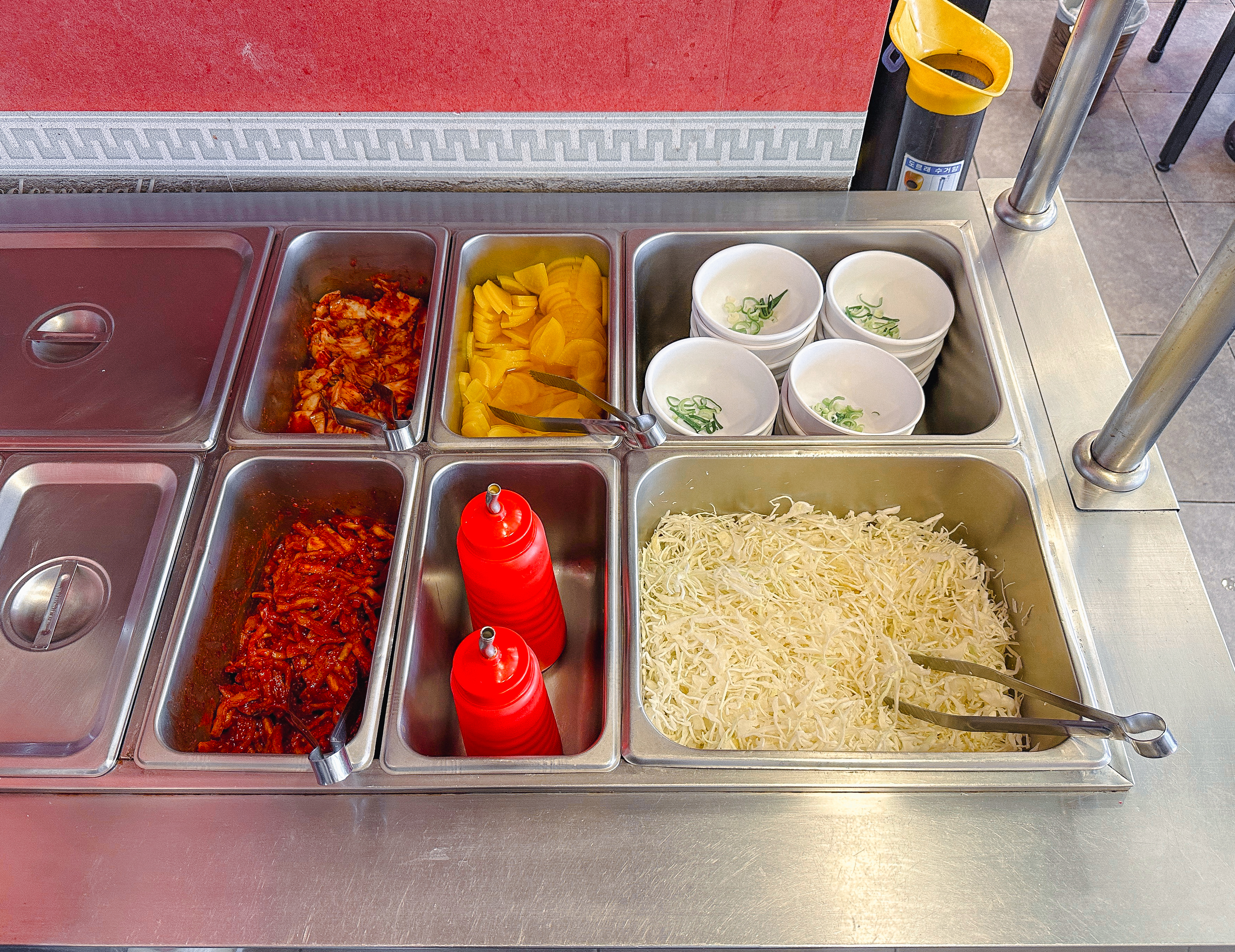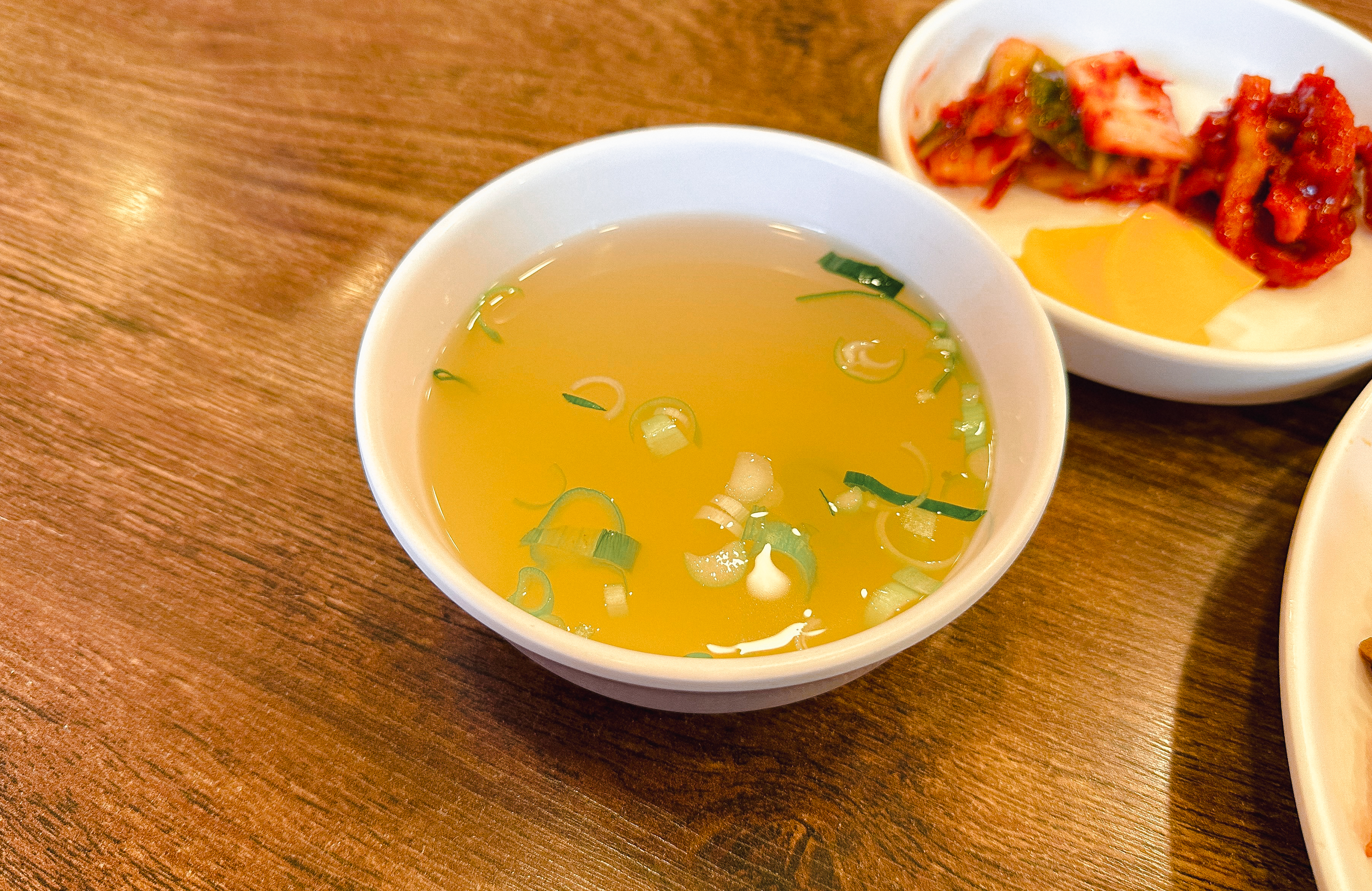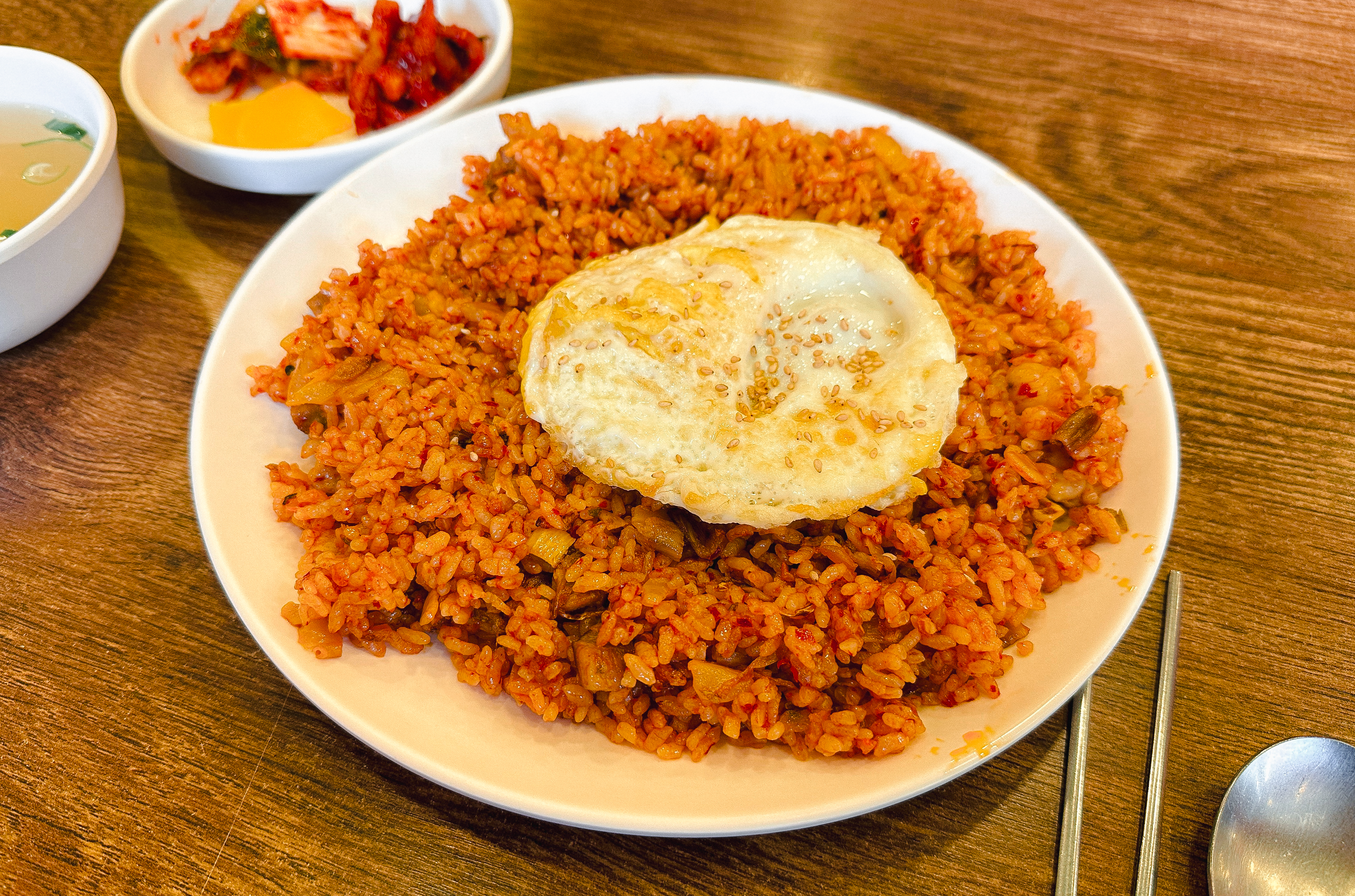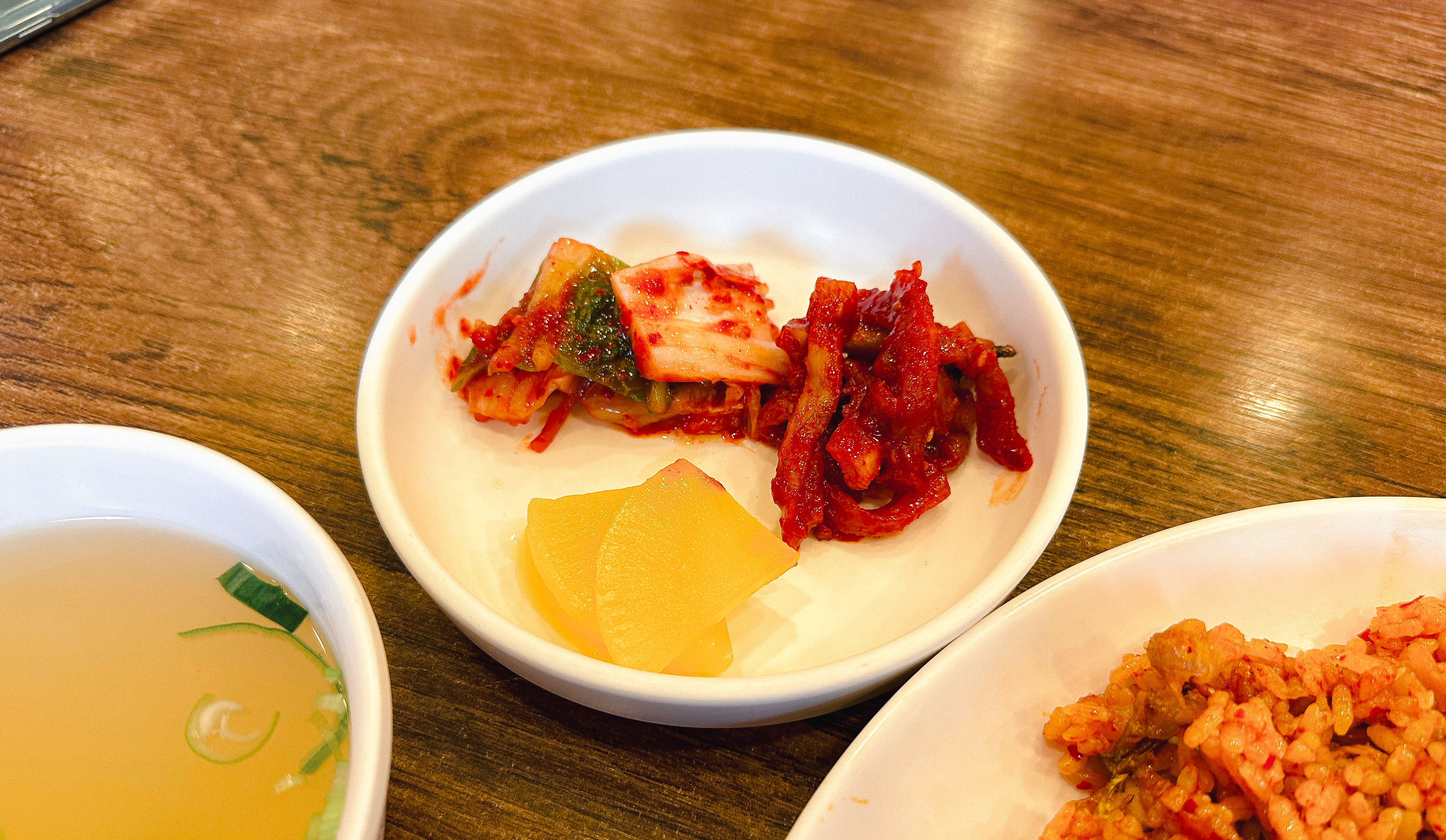 또래끼리 김치볶음밥은 메인 메뉴가 김치볶음밥인 만큼 메뉴가 주문과 동시에 빠르게 조리되어 나왔고, 반찬과 장국은 셀프로 가져다 먹을 수 있었습니다. 장국은 생각보다 자극적이었는데, 딱히 끌리는 맛은 아니었습니다. 그럼 김치볶음밥을 마저 살펴보실까요?