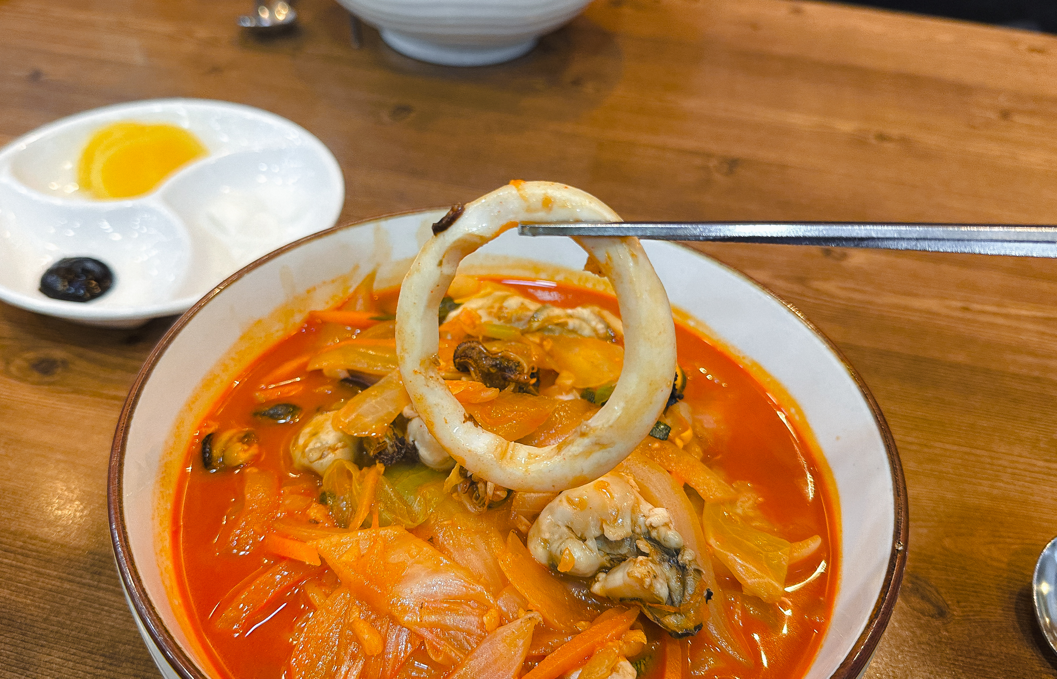 뿅의전설의 해물짬뽕은 위와 같이 오징어와 낙지, 굴, 홍합 등이 들어간 짬뽕이었는데, 면이 탱글한 식감이 있었고 해산물이 꽤 다양하게 들어있었습니다. 그런데 저는 개인적으로 면과 국물의 조화가 잘 안 이루어진다고 할까요? 저는 개인적으로 11,000원이라는 가격에 먹은 짬뽕 중에는 가장 아쉬움이 컸던 메뉴였습니다.