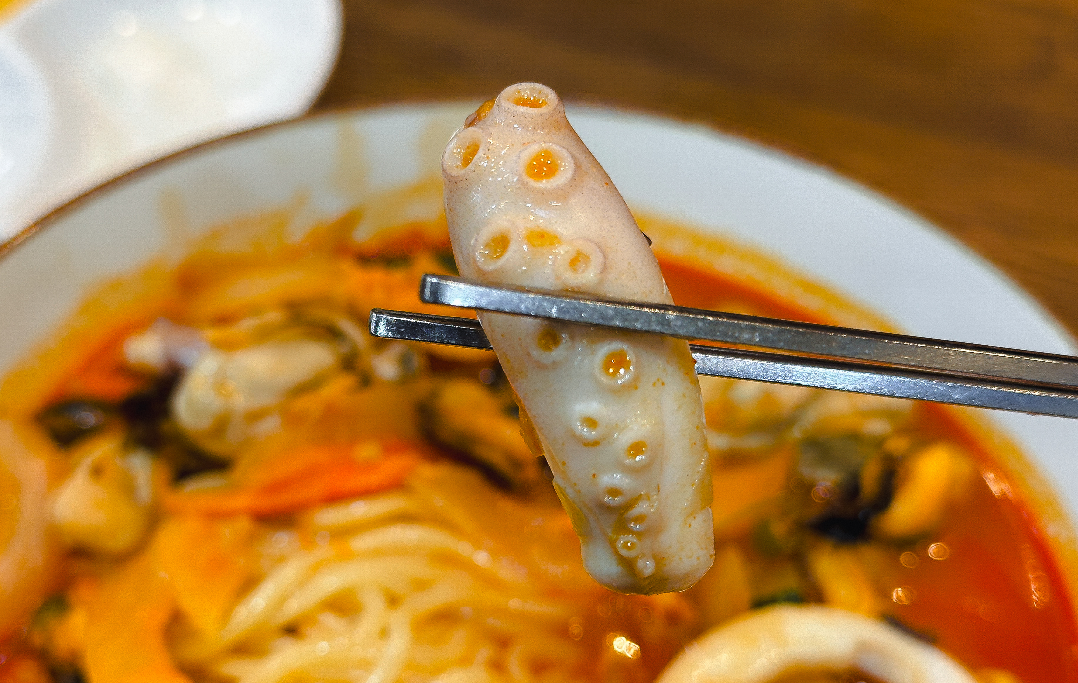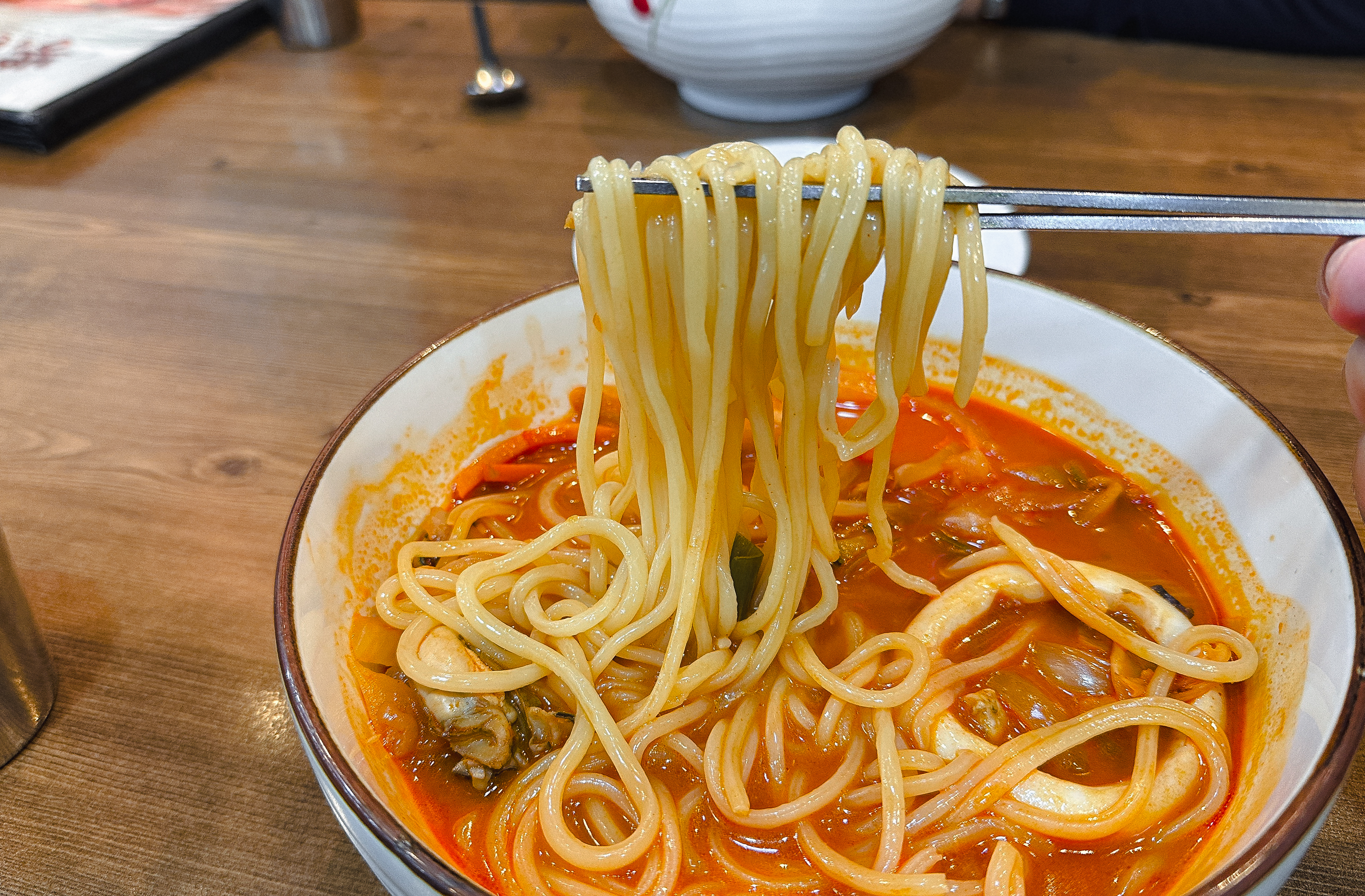 뿅의전설의 해물짬뽕은 위와 같이 오징어와 낙지, 굴, 홍합 등이 들어간 짬뽕이었는데, 면이 탱글한 식감이 있었고 해산물이 꽤 다양하게 들어있었습니다. 그런데 저는 개인적으로 면과 국물의 조화가 잘 안 이루어진다고 할까요? 저는 개인적으로 11,000원이라는 가격에 먹은 짬뽕 중에는 가장 아쉬움이 컸던 메뉴였습니다.
