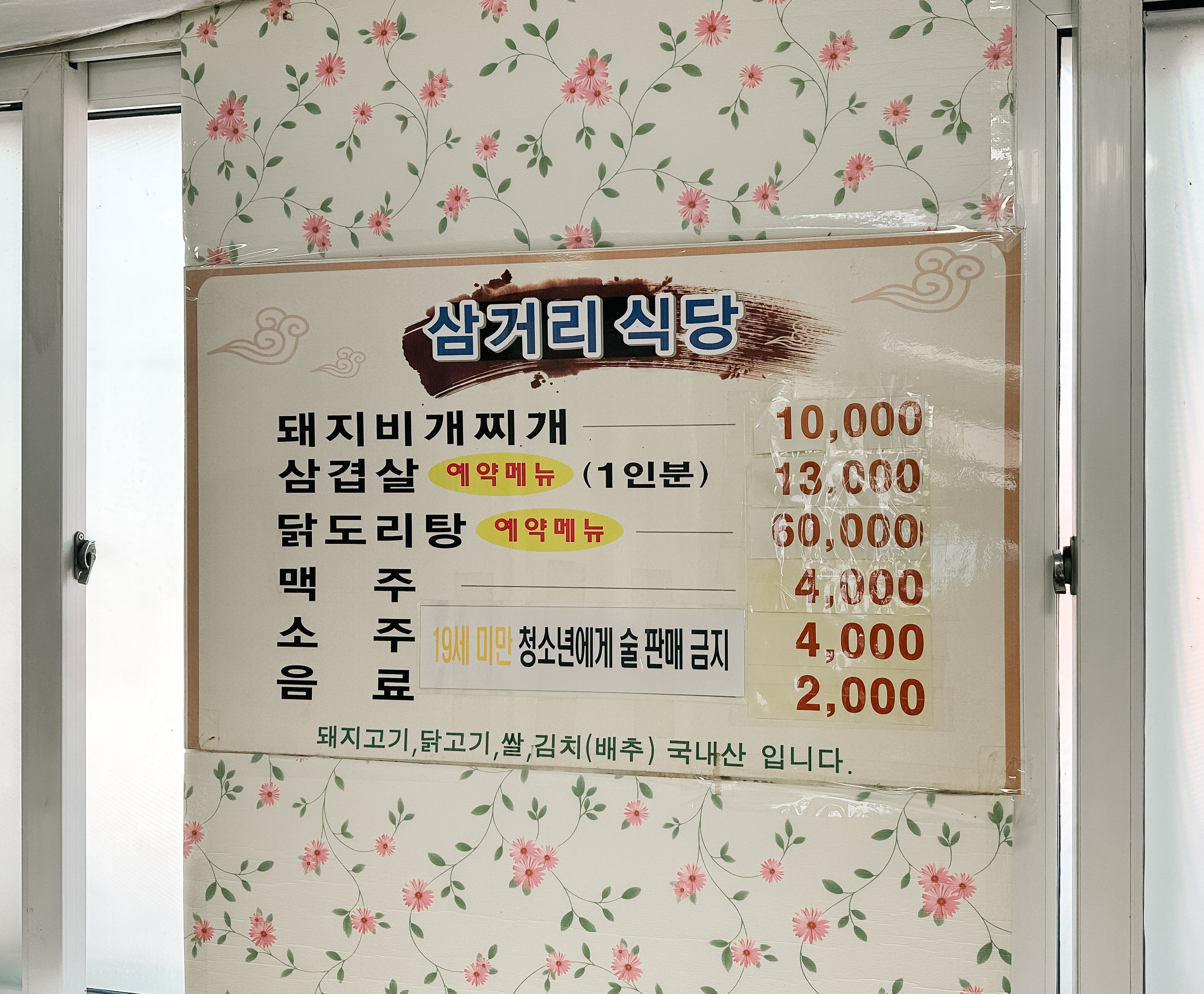 예산 삼거리식당의 메뉴는 돼지비개찌개(돼지비계찌개), 삼겹살, 닭도리탕이 있었습니다. 돼지비계찌개를 제외한 다른 메뉴들은 예약메뉴이기 때문에 대부분의 손님은 돼지비계찌개를 먹고 있었습니다. 돼지비개찌개라고 적혀있어서 재미있었는데, 사장님이 메뉴의 이름을 저렇게 지으신 데는 별다른 이유는 없는 듯하더라고요. 아무튼 돼지비계찌개의 가격은 1인분 10,000원에 판매 중이었습니다.