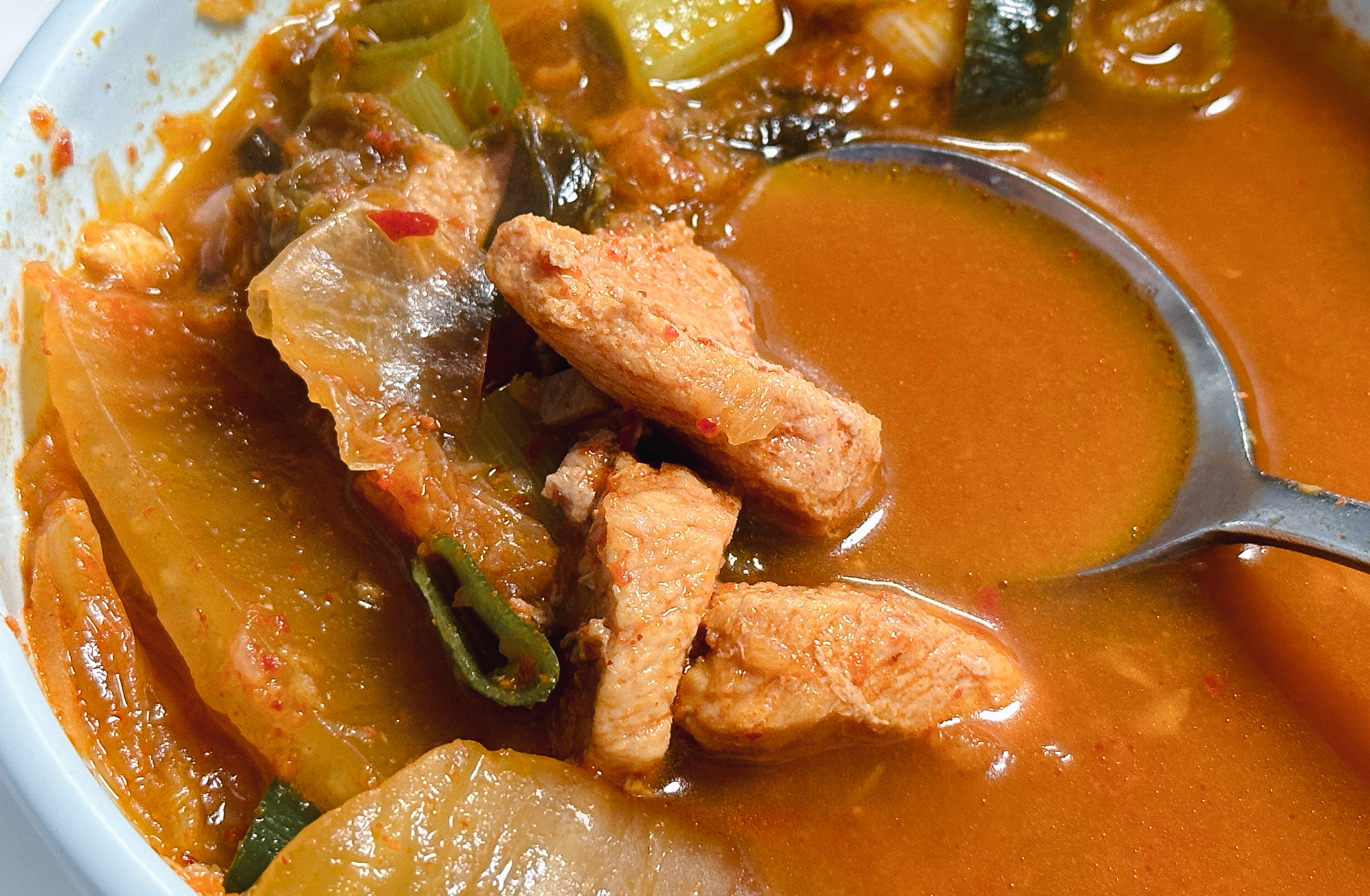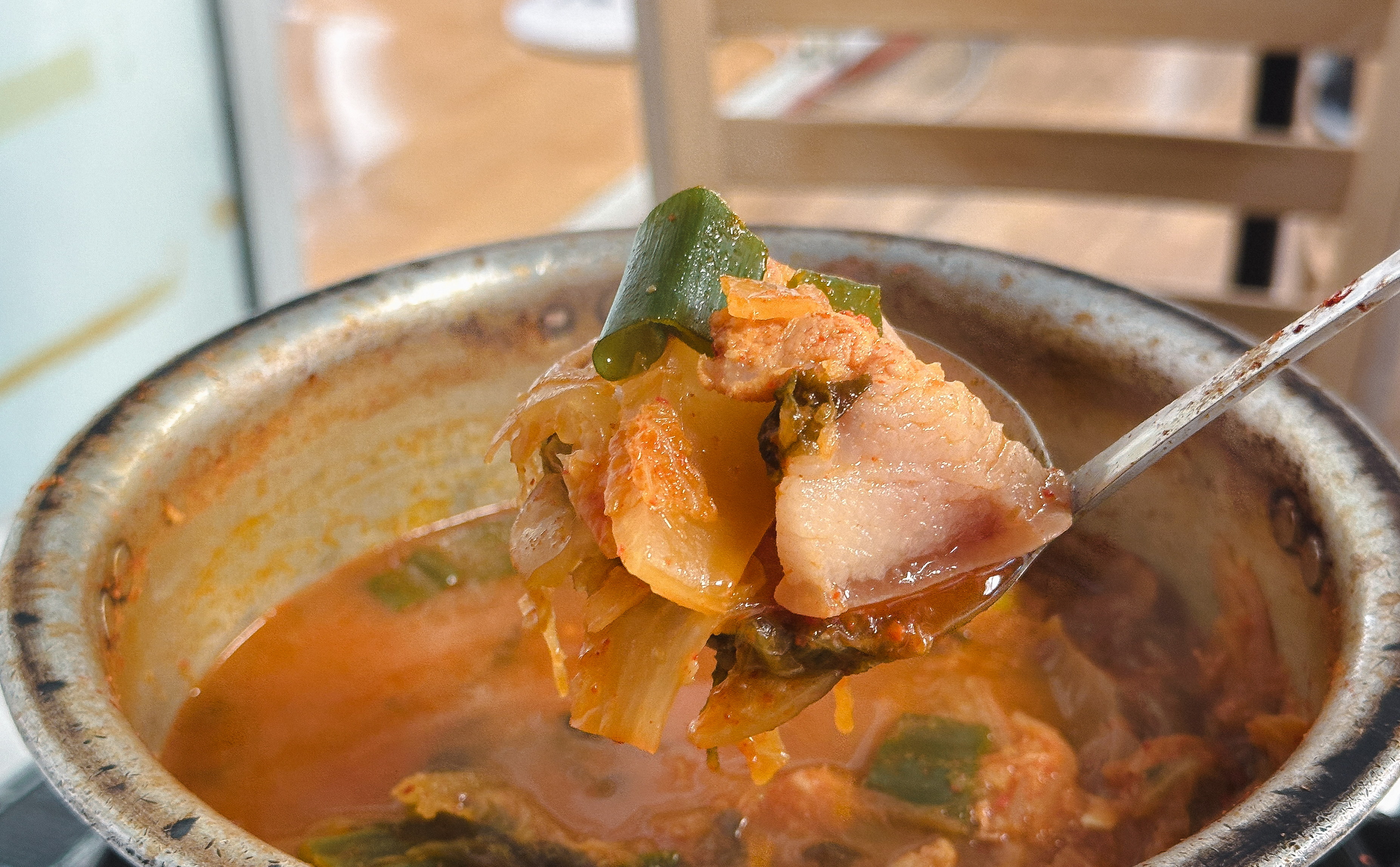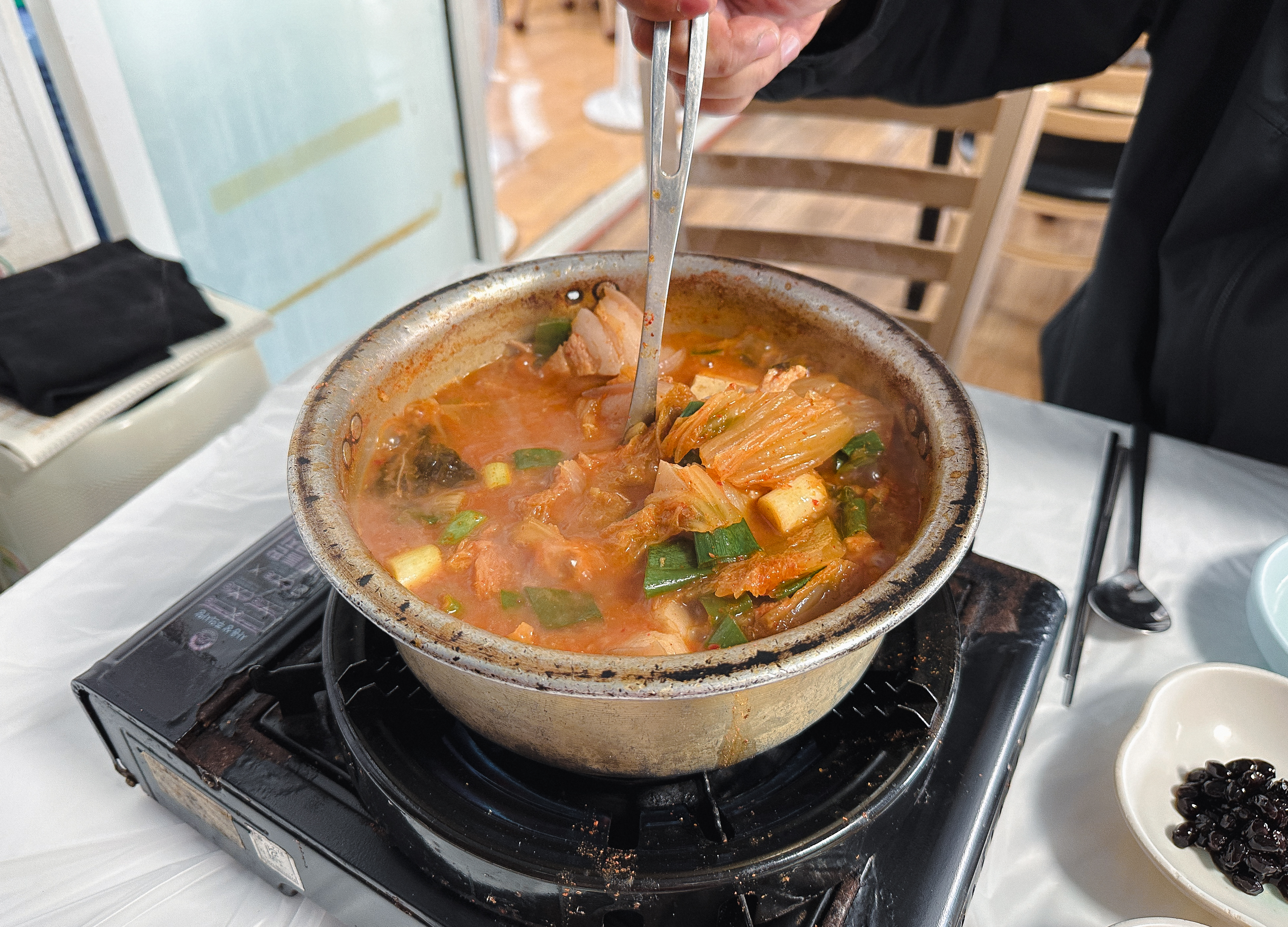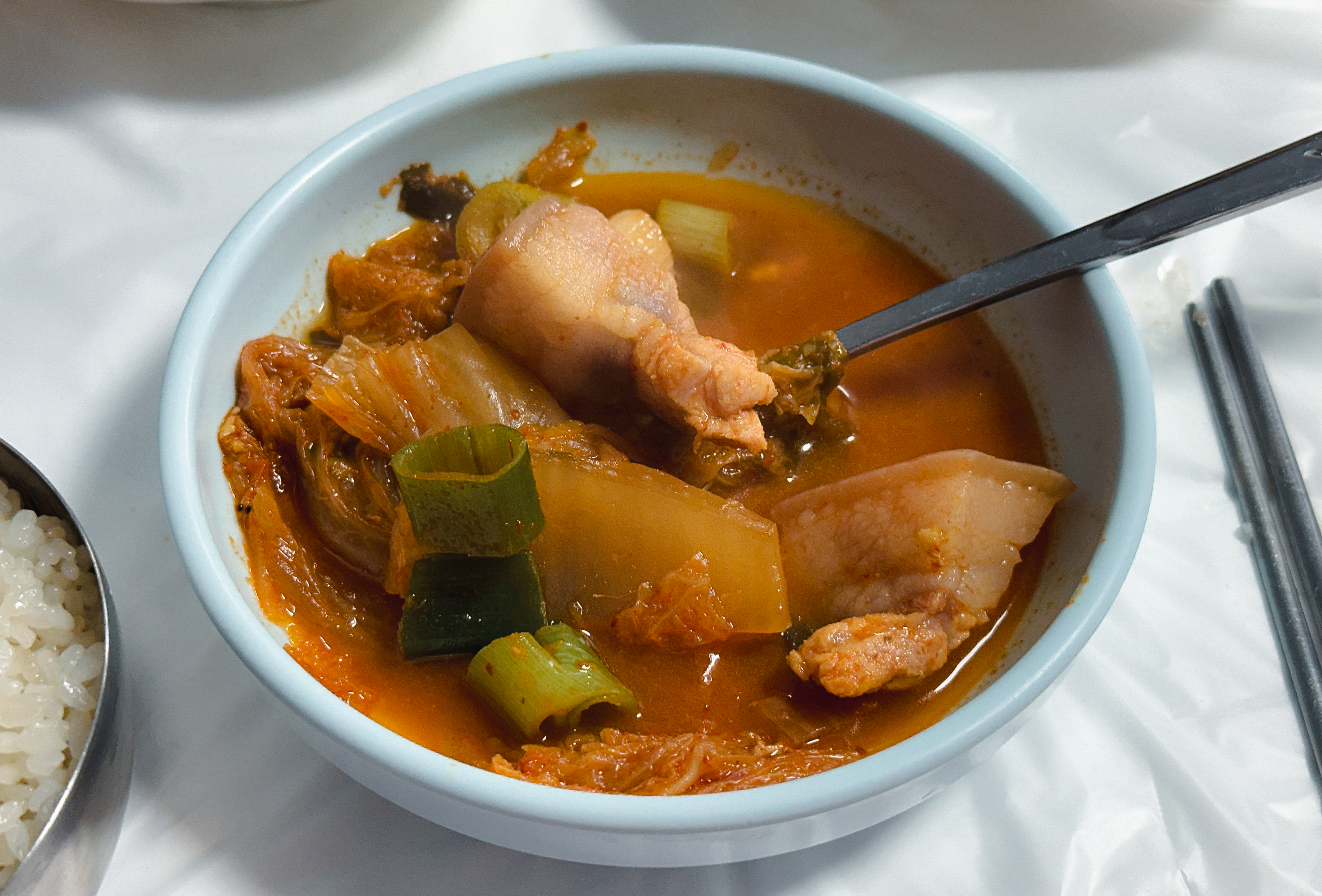 김치도 잘 익었고 고기와 너무 잘 어울렸습니다. 솔직히 요즘 돼지비계로 논란이 있어서 제가 소개하고 있는 이 가게가 피해를 입지 않을까 걱정이 되기는 하는데, 저는 분명히 말씀드리지만 살코기도 들어있고, 돼지의 껍데기 부위가 포함되어 쫄깃한 식감도 있었고 맛도 좋았습니다. 식사 중에도 손님들이 꾸준히 방문하고 있었는데, 가게의 허름해 보이는 분위기에도 불구하고 제가 식사한 이후에도 손님들이 4~5 팀 이상 더 들어오셨습니다.
