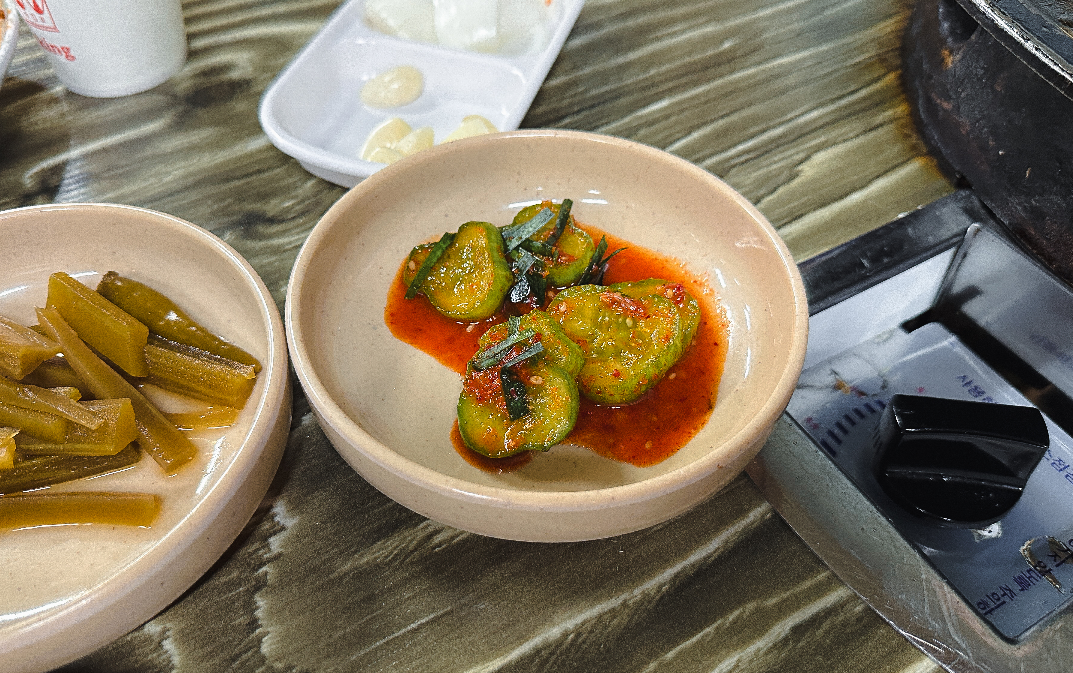 특히 같이 나온 반찬들도 하나같이 맛있었는데, 부추무침은 그때그때 양념을 하여 무쳐주셨고, 아삭한 식감의 궁채나물도 고기와 곁들이니 별미였습니다. 그밖에 오이소박이와 섞박지도 고기와 잘 어울려서 맛있게 먹을 수 있었습니다.